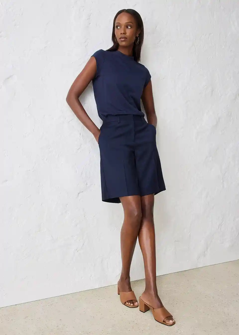 Material:zgornji material: 53% volna, 25% poliester, 20% viskoza, 2% elastan, podloga: 55% poliester (recikliran), 45% viskoza