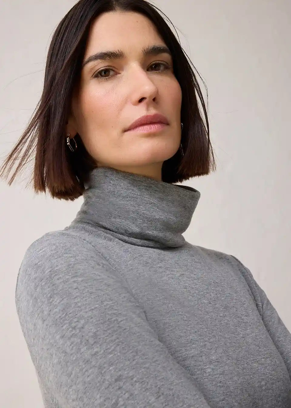 Majica s pokončnim ovratnikom iz volnene, za kožo zelo prijetne, mešanice