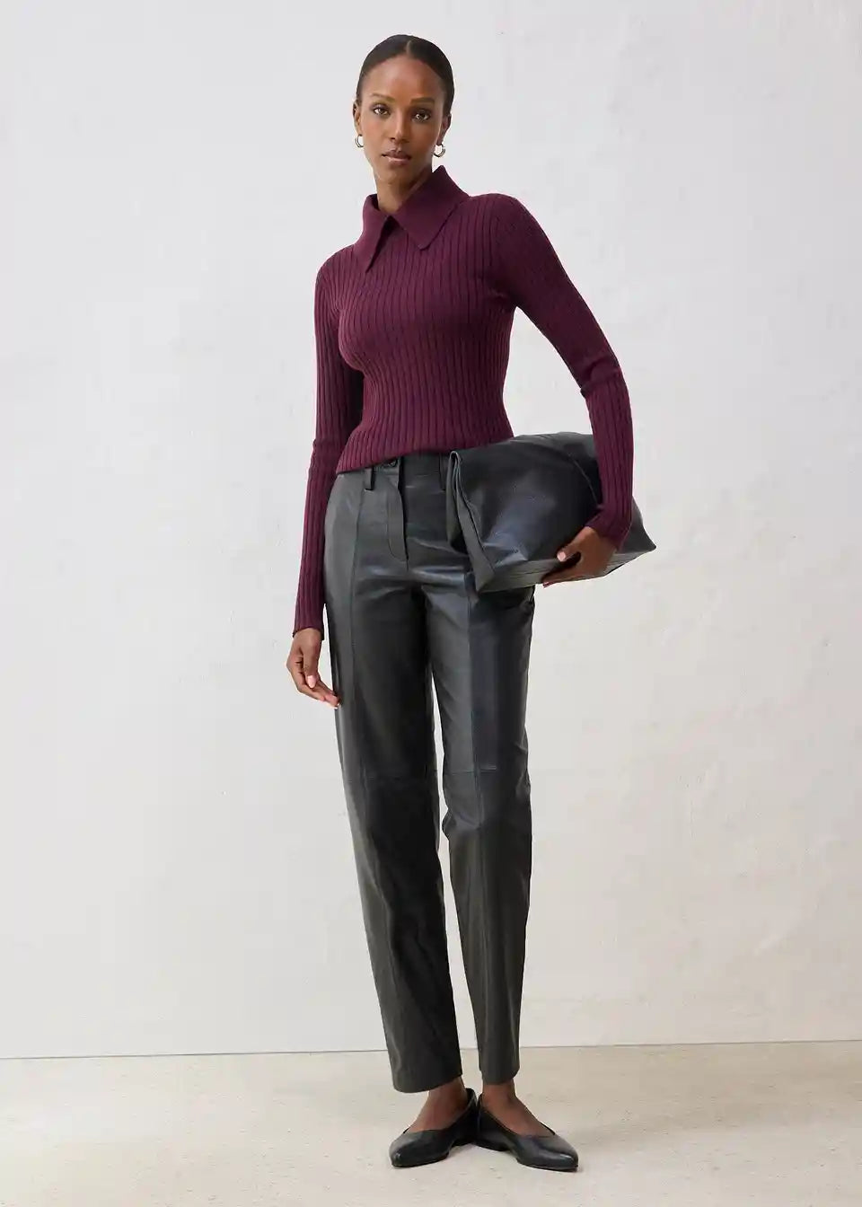 Modne udobne usnjene hlače na korenček iz ovčjega napa usnja