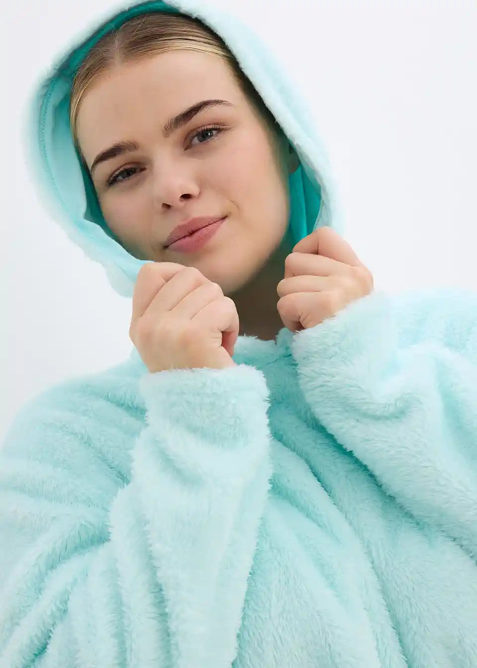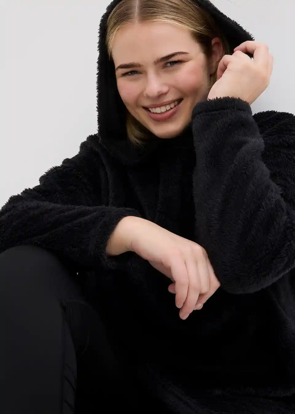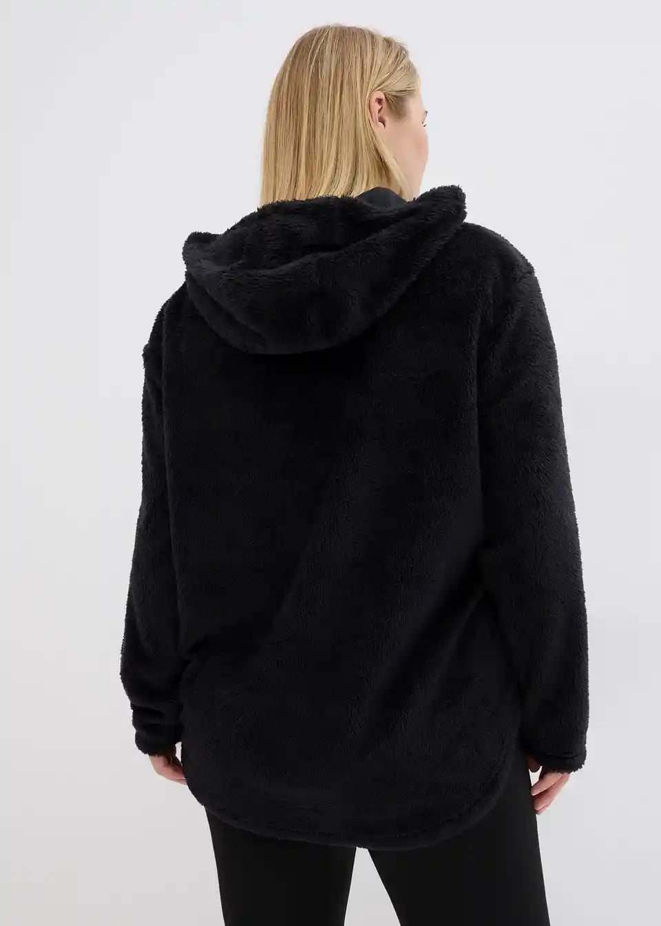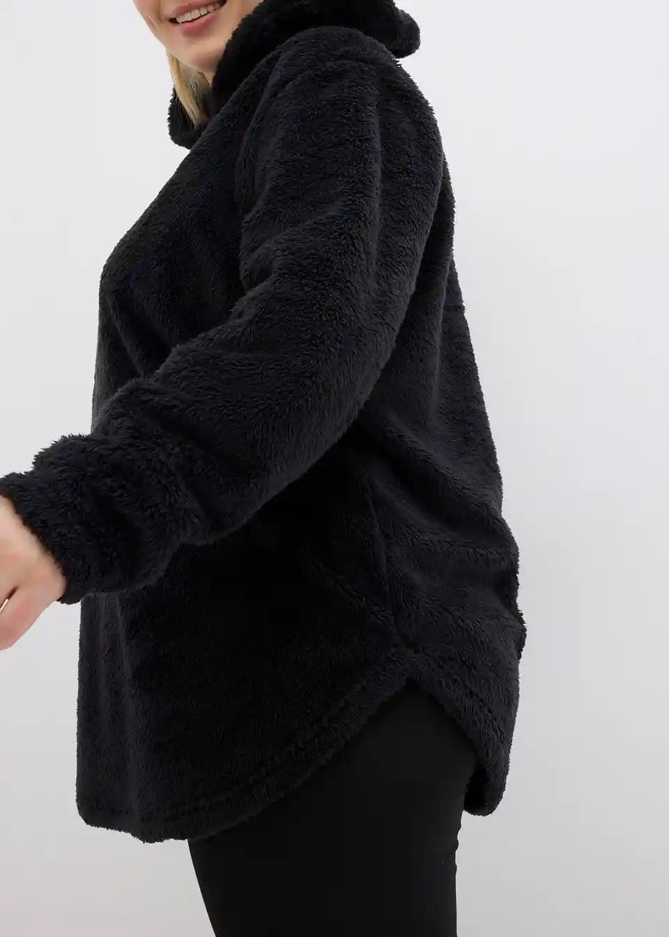 Oversized Longpulover iz teddy-fleeca, zadaj daljši