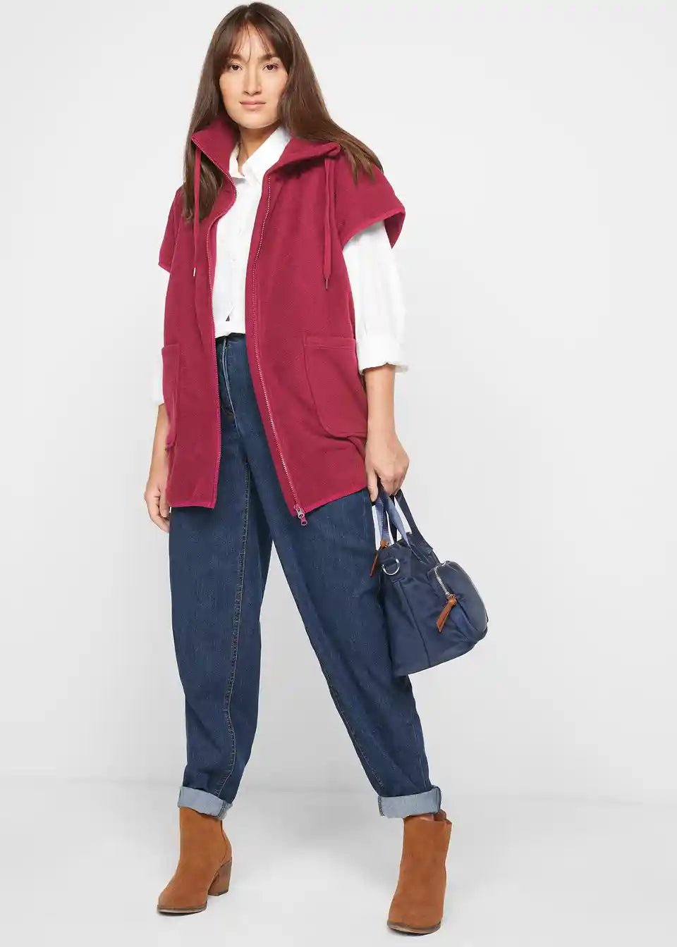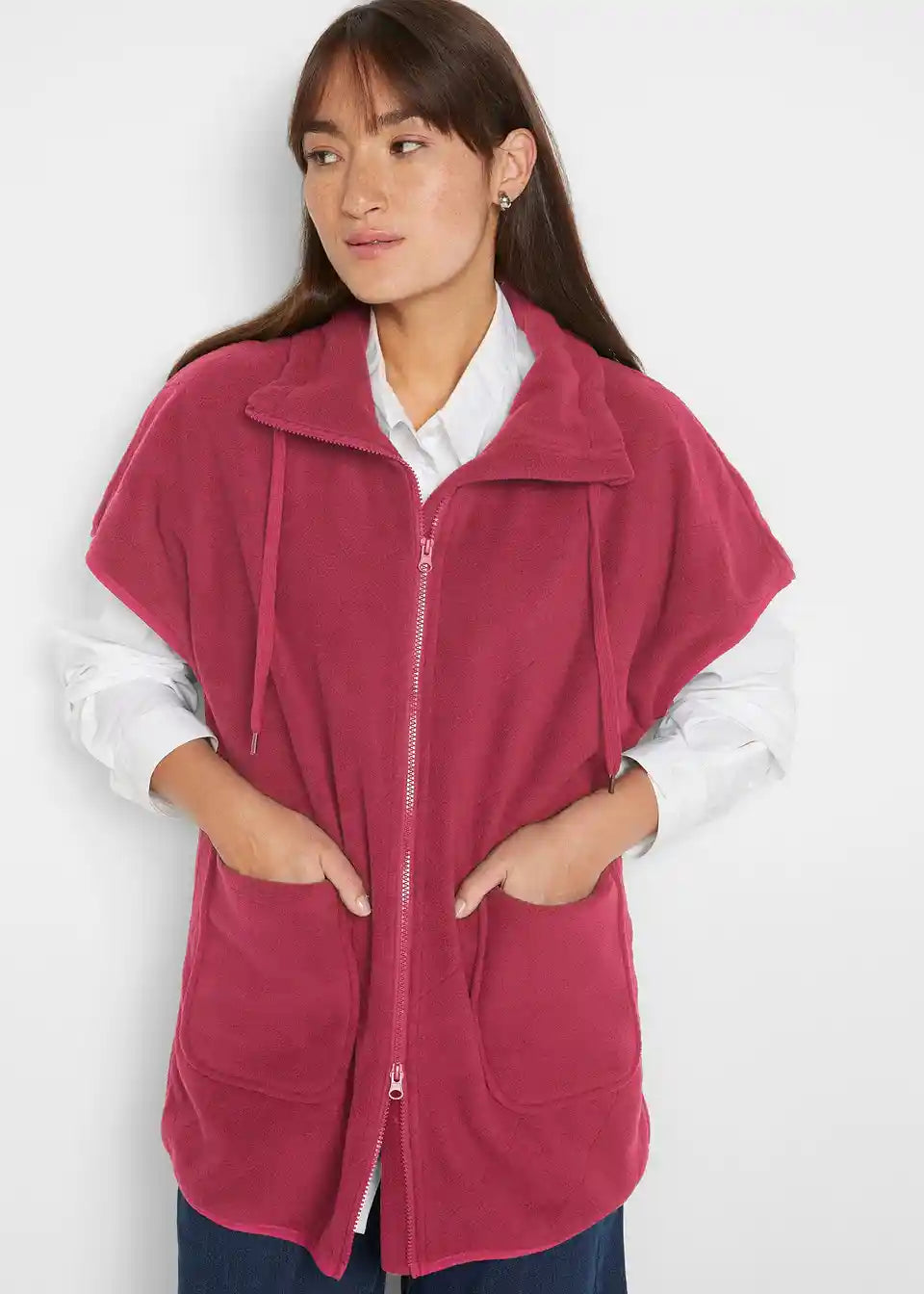 Flis telovnik s spuščenimi rameni in prišitimi žepi