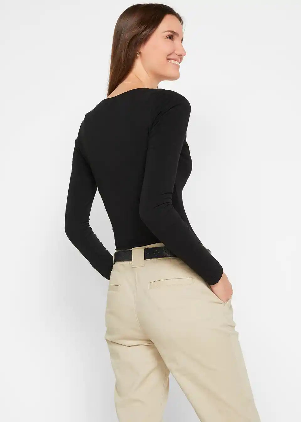 Razstegljiv body z dolgimi rokavi in okroglim izrezom