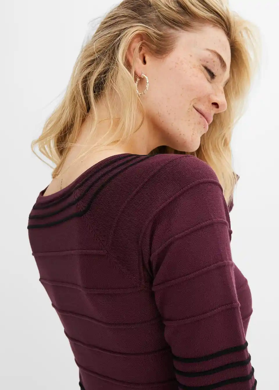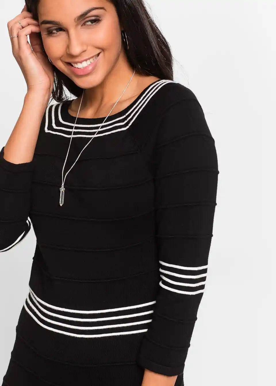 Ta pletena obleka znamke BODYFLIRT poudarja ženstveno karizmo. Kratka obleka s 3/4 rokavi iz prijetno mehke pletenine poudarja žensko silhueto. Črte na Carmen izrezu ter v pasu, na rokavih in na robu dodajo čudovite poudarke. Zaokrožite to pleteno obleko s petami ter elegantnim nakitom za zapestje in vrat.