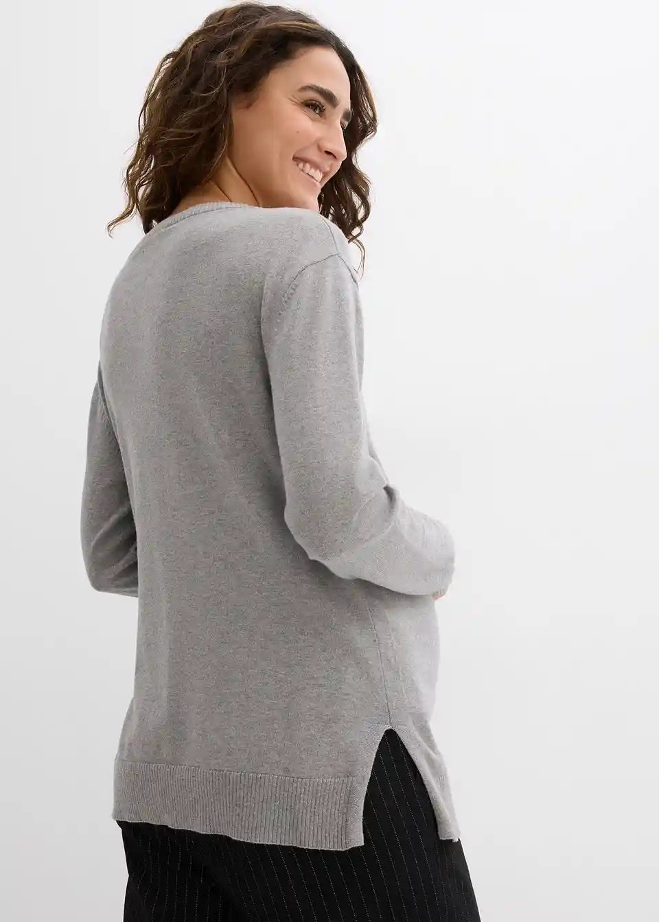 Pulover z dolgimi rokavi in okroglim izrezom iz čistega bombaža z integriranim topom za dojenje iz mehke bombažne mešanice. Top ima praktične odprtine za dojenje, ki olajšajo dojenje in hkrati preprečujejo izgubo toplote.