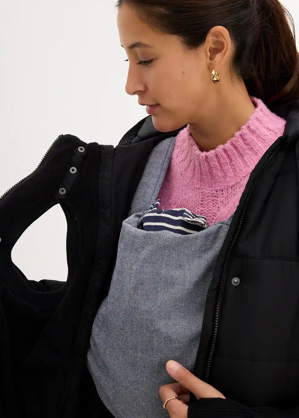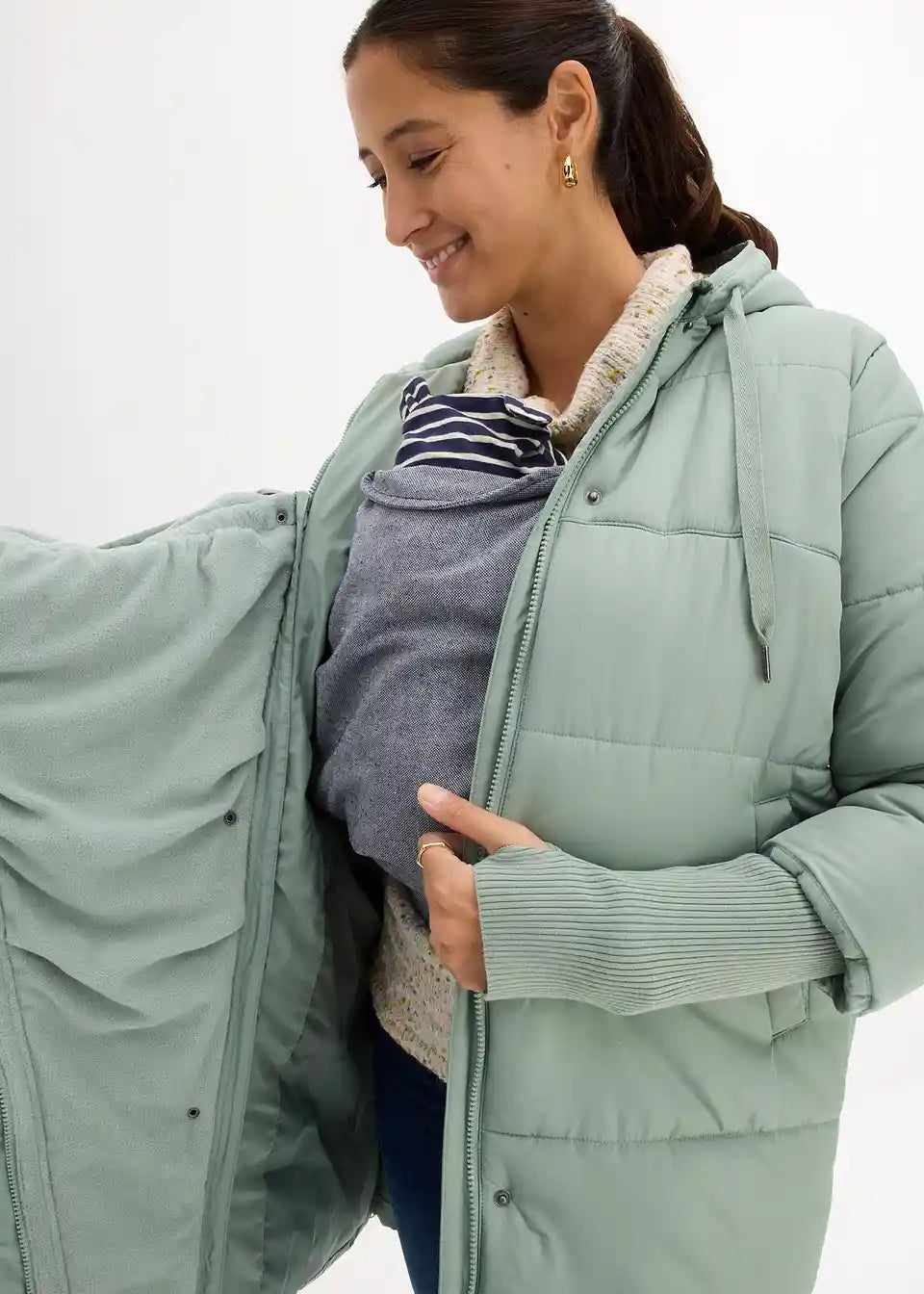 3-v-1 topel nosečniški plašč z dodatkom za nošenje dojenčka