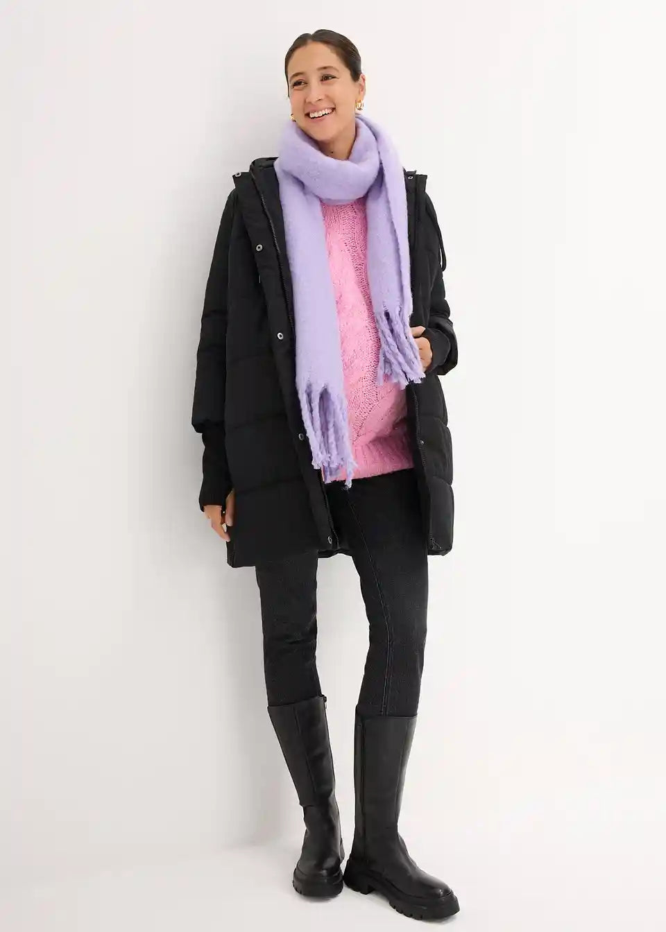 Toplo podložen prešit plašč za nosečnost in po njej