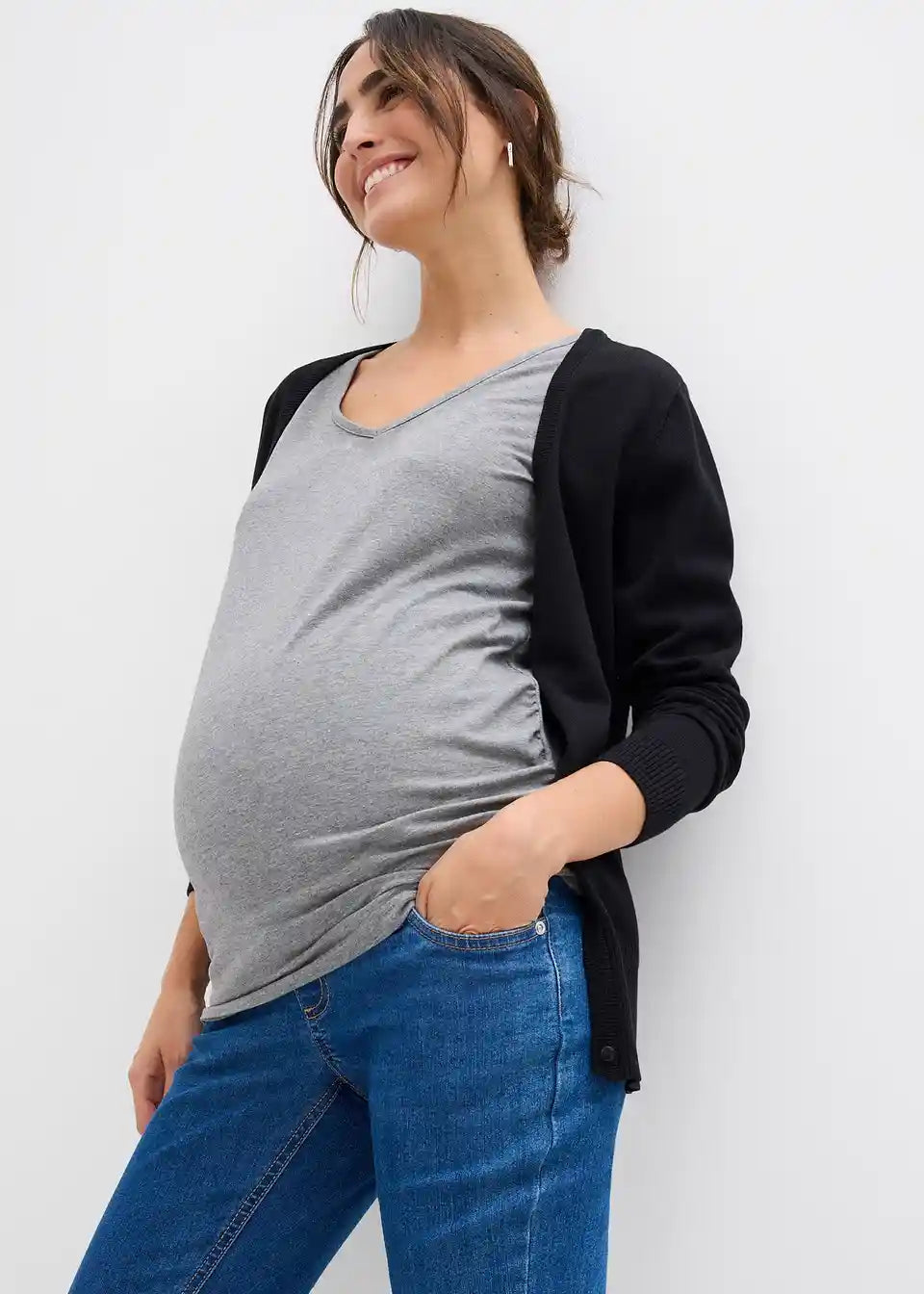 5-žepne kavbojke iz bombažnega denima z raztegljivimi vlakni za visoko udobje pri nošenju. Udoben kroj z ozkimi hlačnicami. Širok, všit jersey pas skrbi za optimalno prileganje na trebuhu. Nastavljiv elastičen trak v pasu omogoča prilagajanje širine, tako da lahko hlače nosite skozi celotno nosečnost.