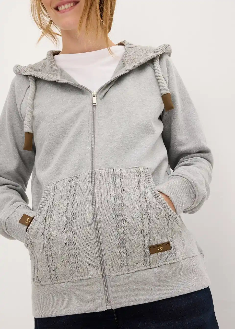 Jopica iz trenirke s čudovitimi pletenimi in imitacijskimi usnjenimi detalji
