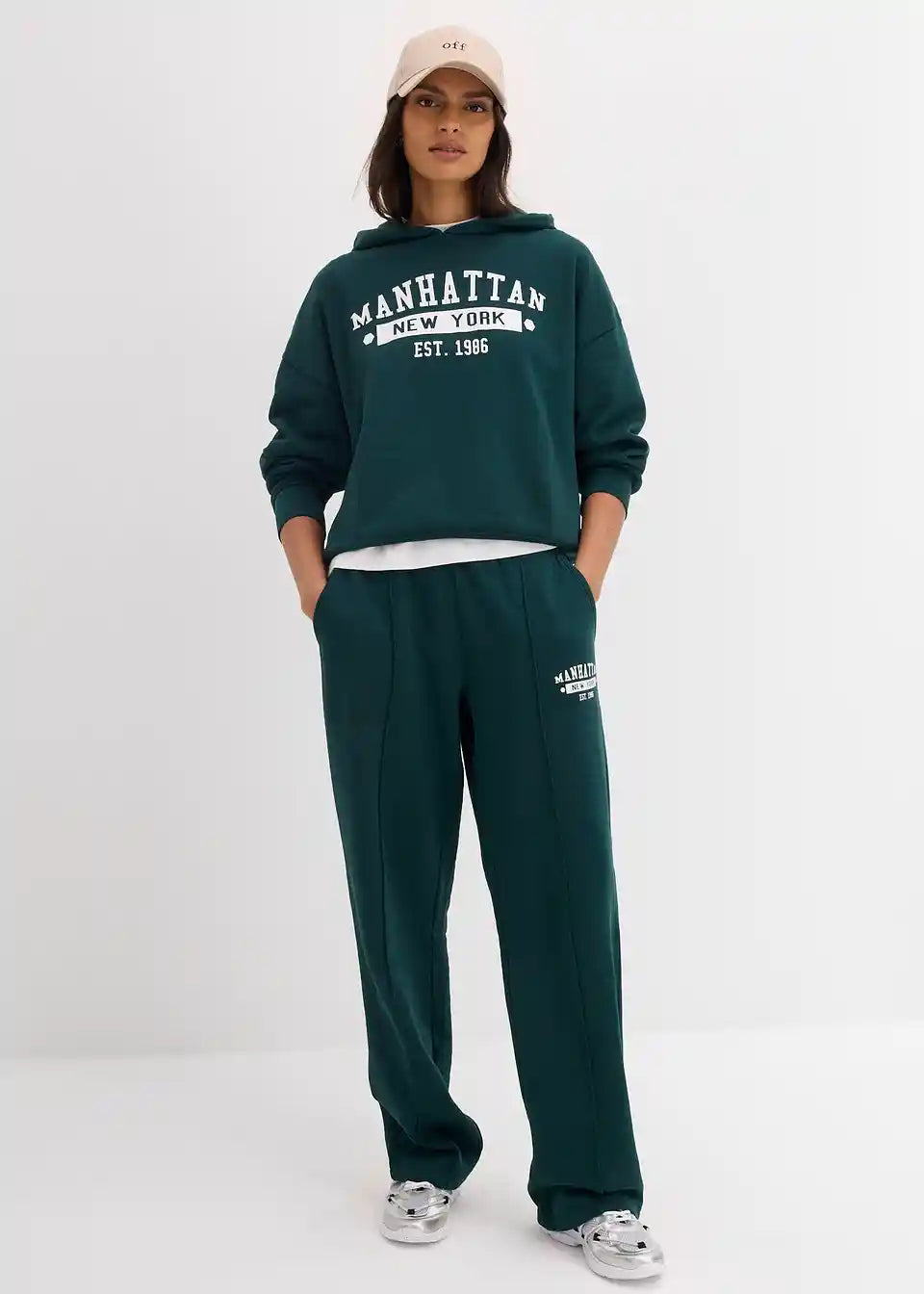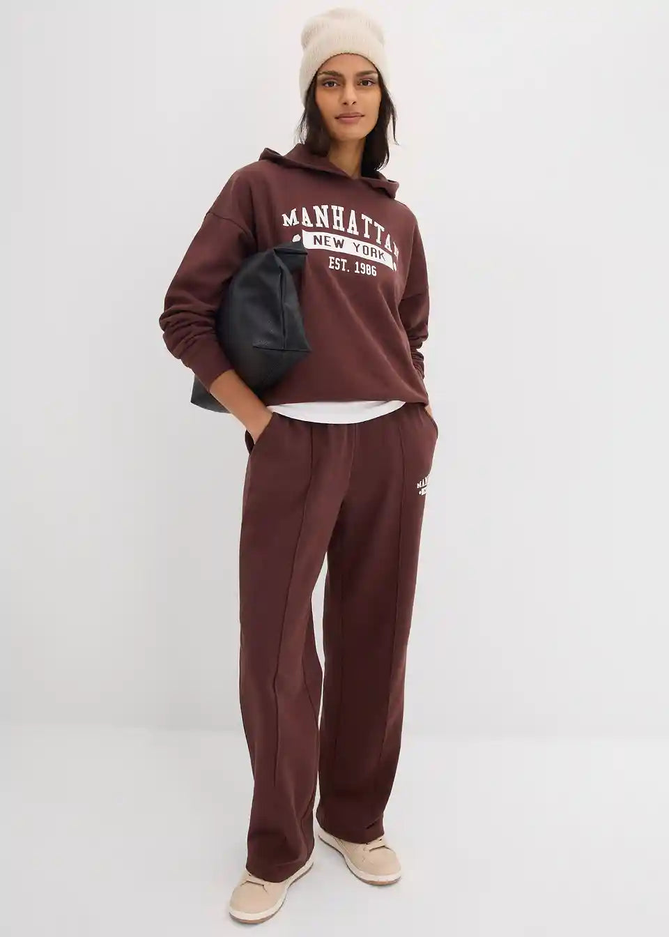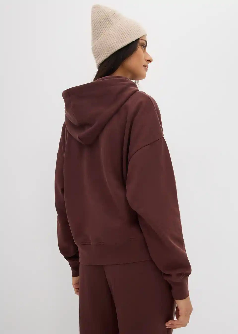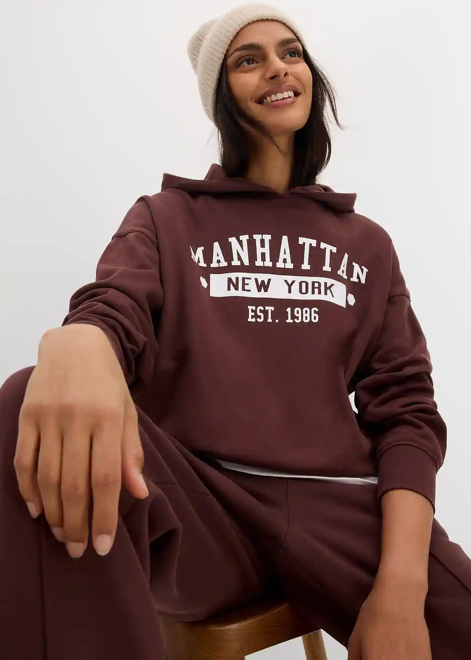 Udobna ohlapna jopa s kapuco iz čistega bombaža s potiskom