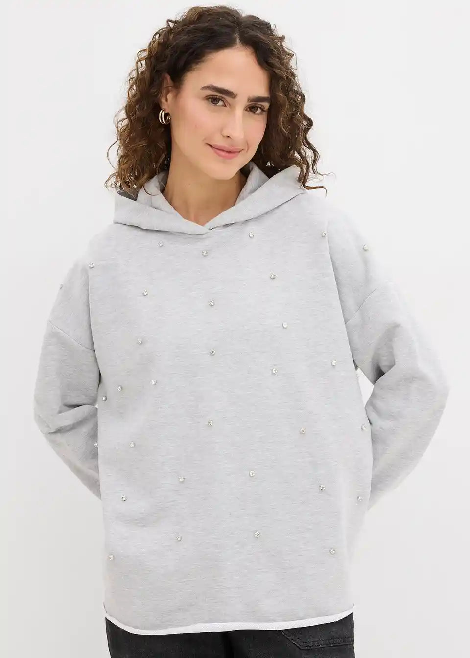 Udobna ohlapna jopa s kapuco in z okrasnimi kamenčki