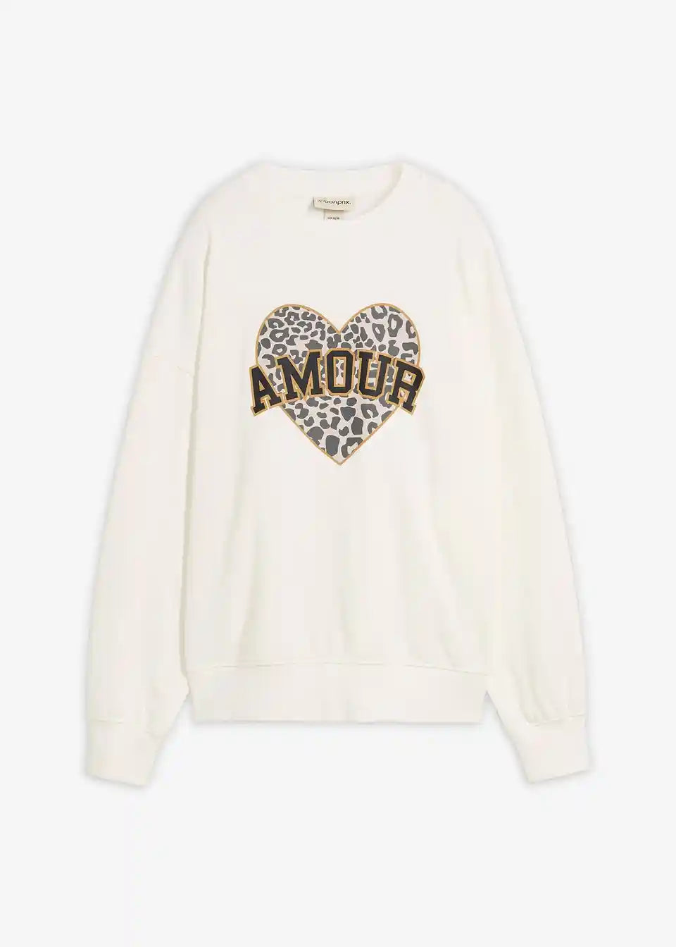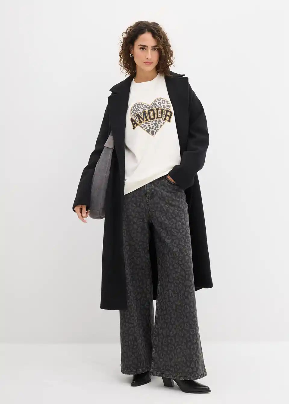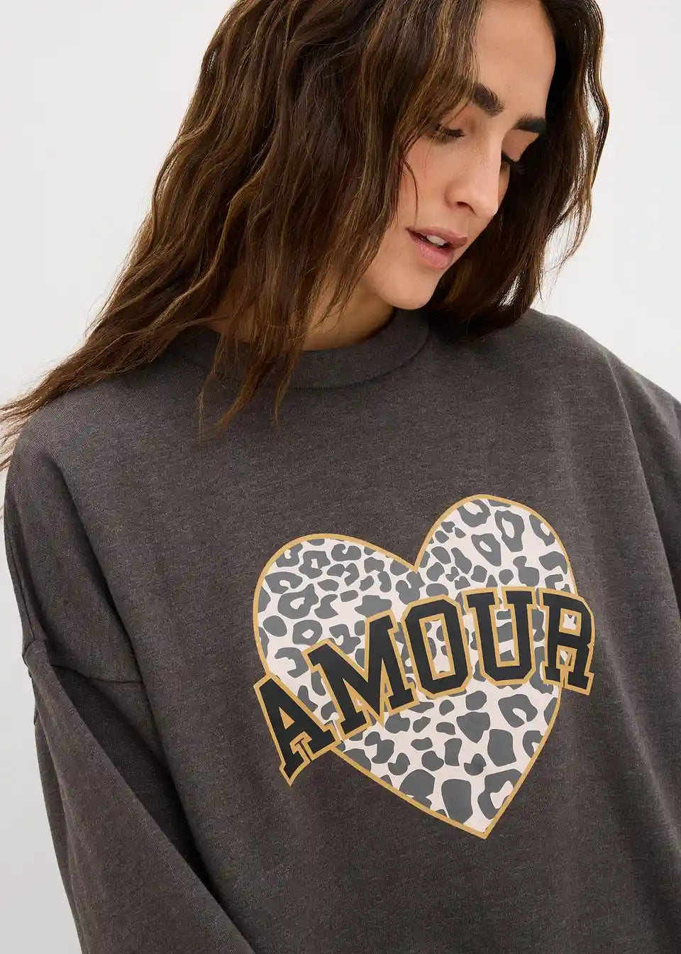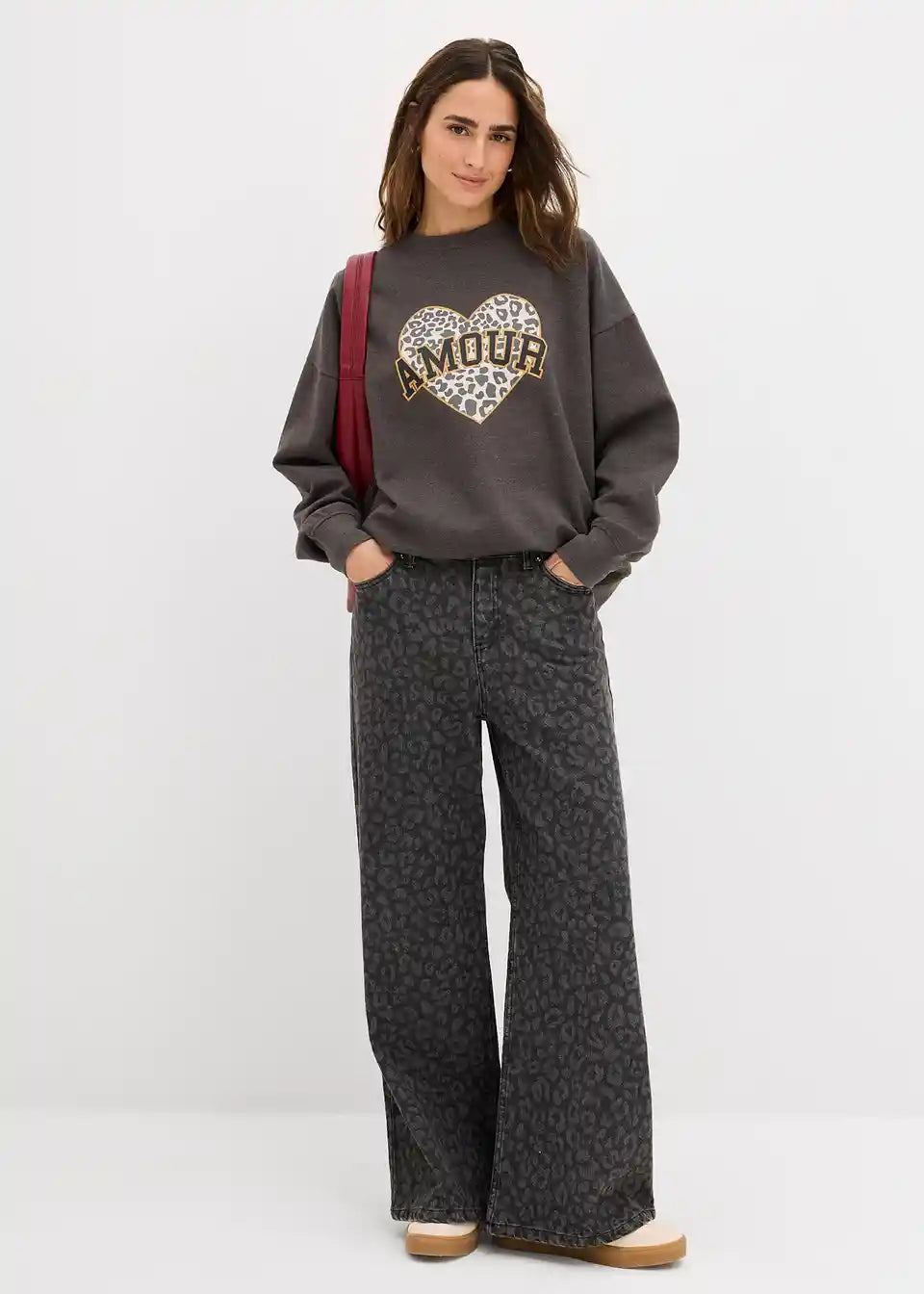 Udobna ohlapna majica iz trikoja iz bombažne mešanice s potiskom