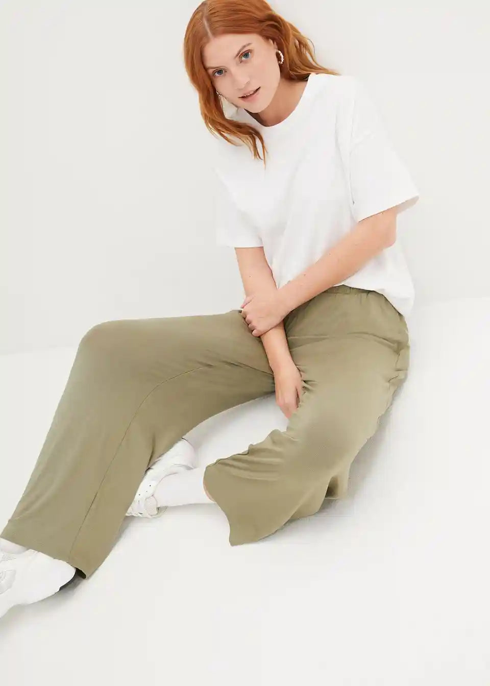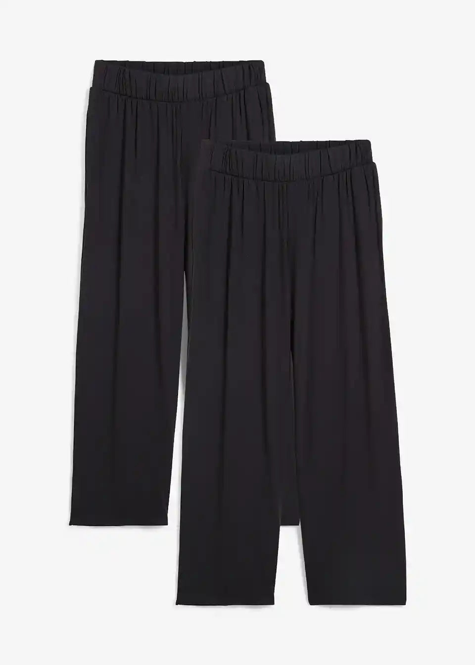 Široke 7/8-hlače iz trikoja z visoko krojenim udobnim pasom (2 kosa)