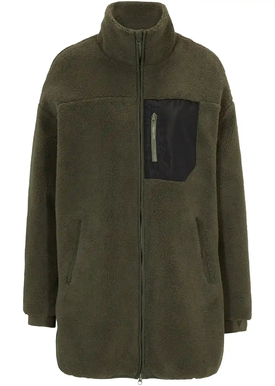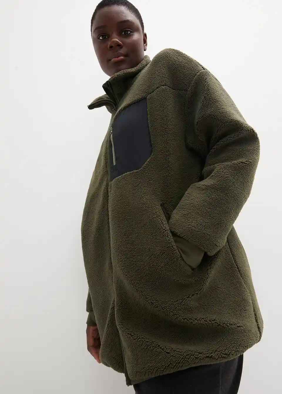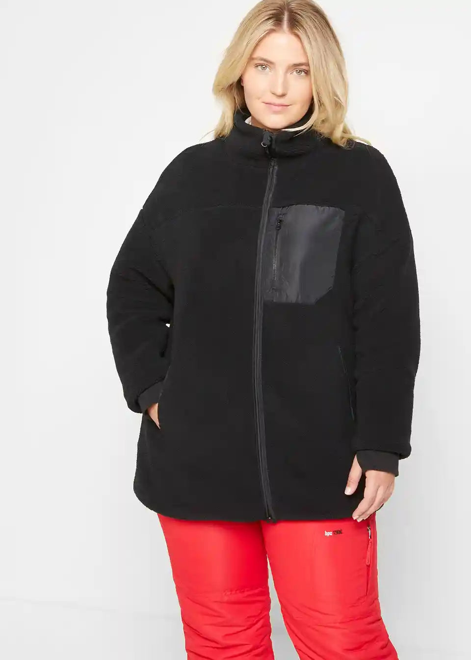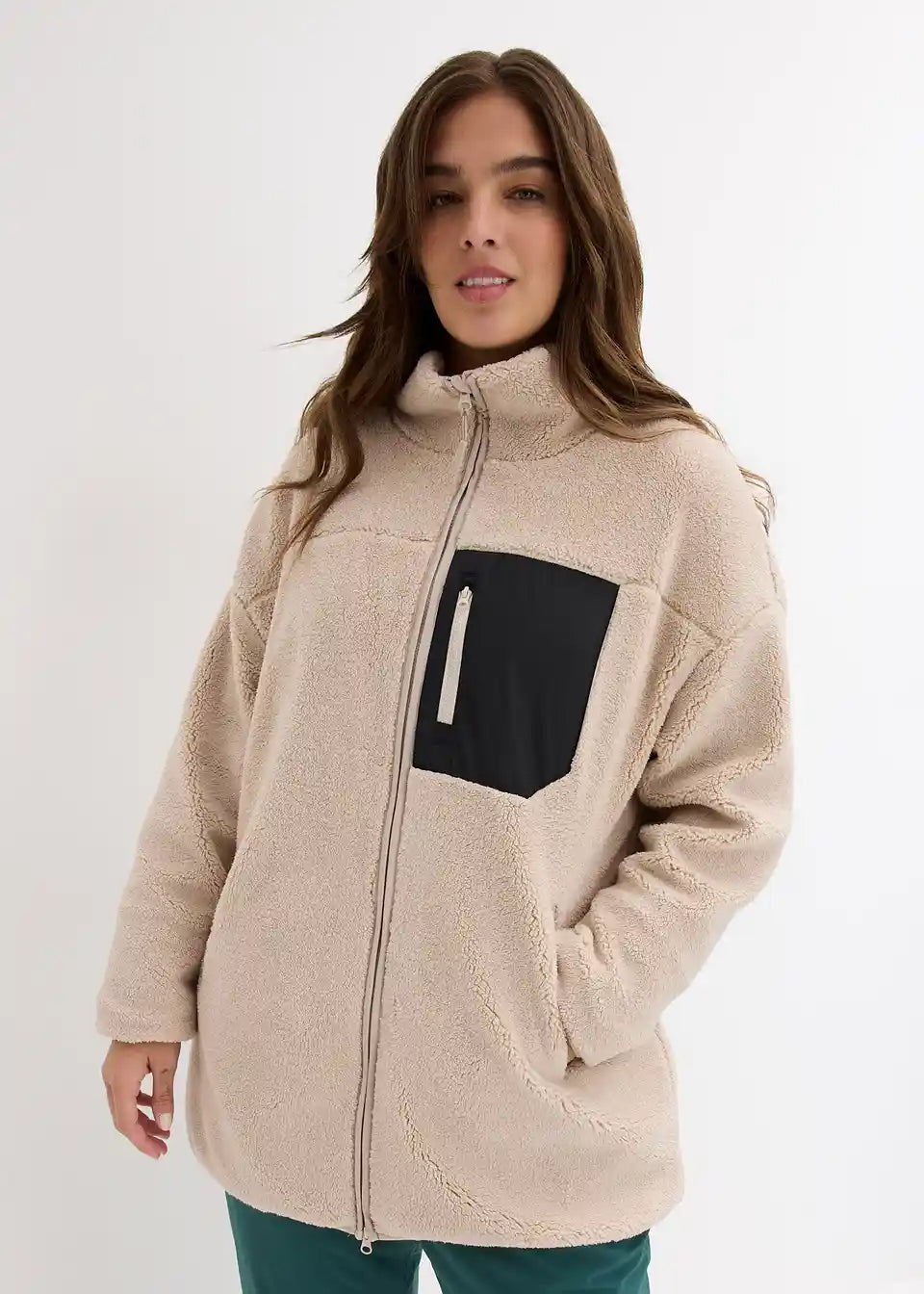Mehka Teddy-Fleece Jakna z žepom na zadrgo na sprednji strani