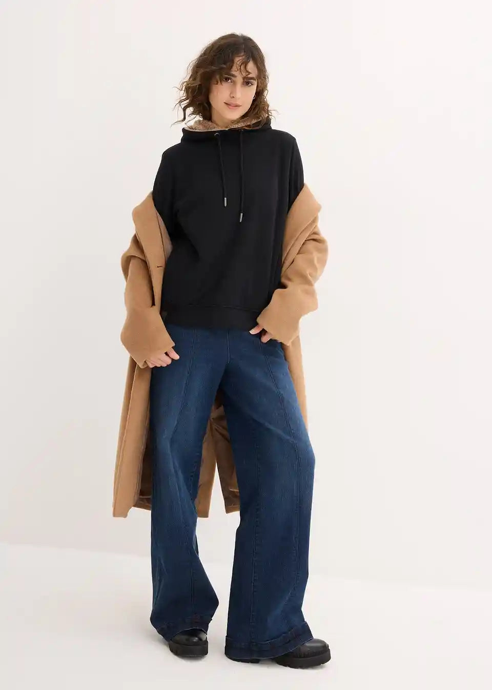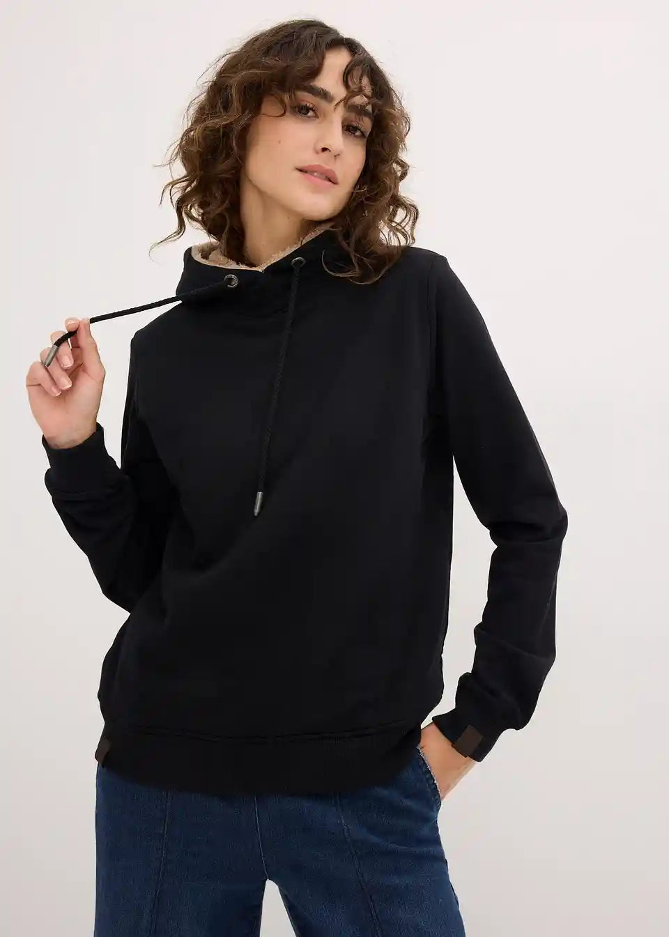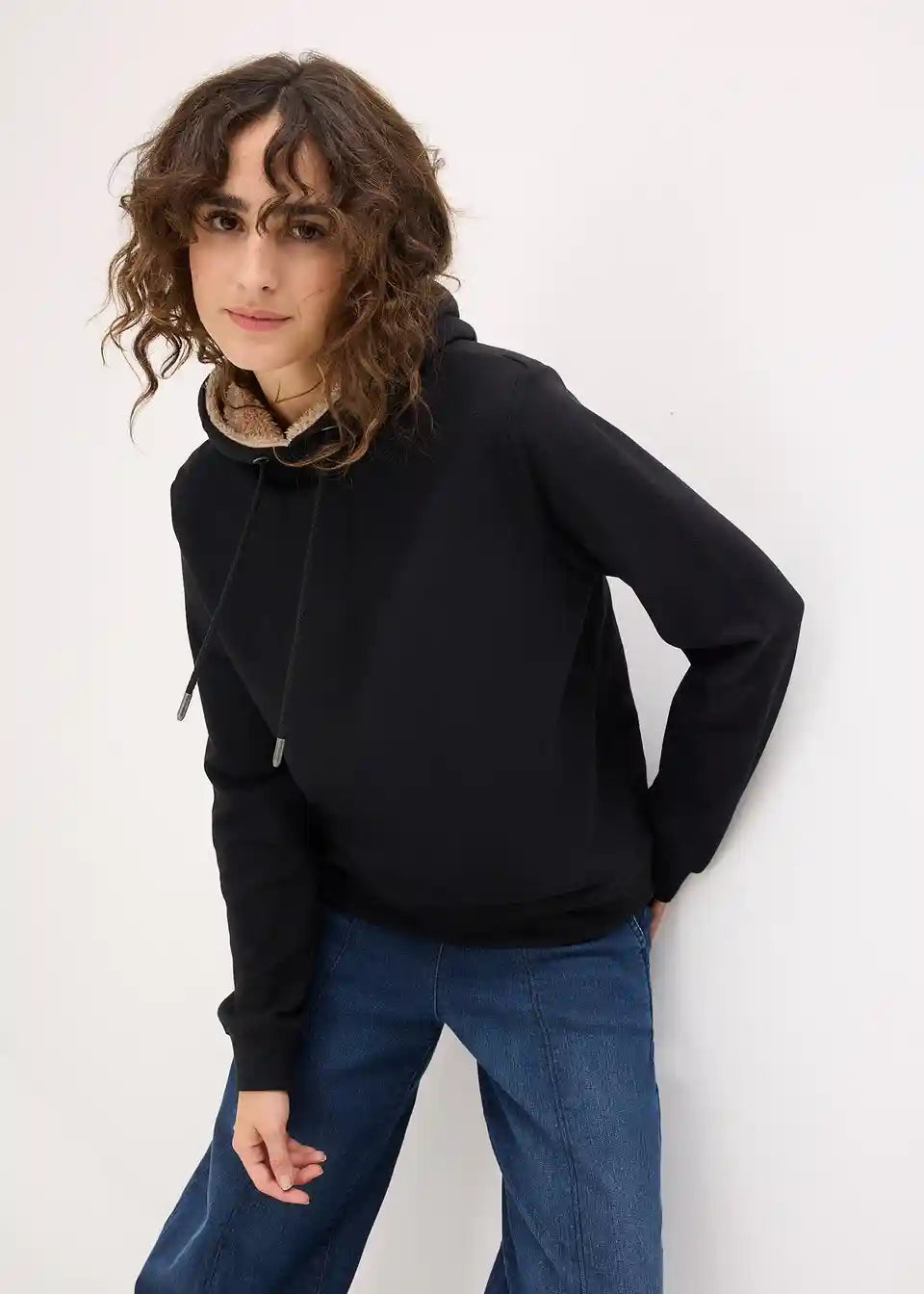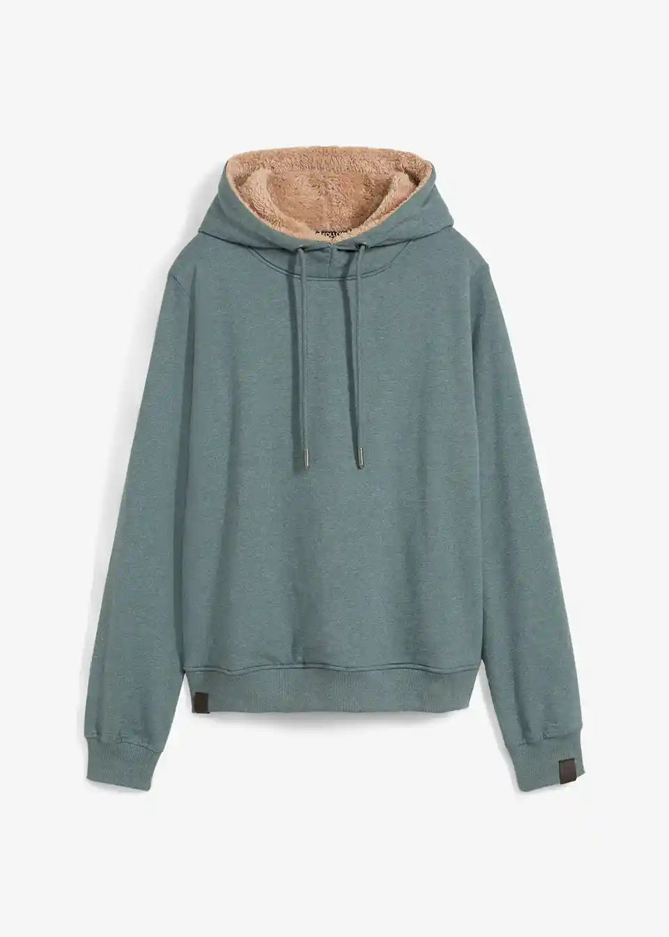 Zimska majica iz trikoja s kapuco, podlogo iz umetnega ovčjega krzna