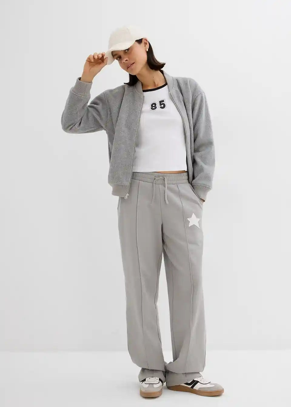 Moderne trenirke z širokimi hlačnicami, šivom ter stranskimi žepi