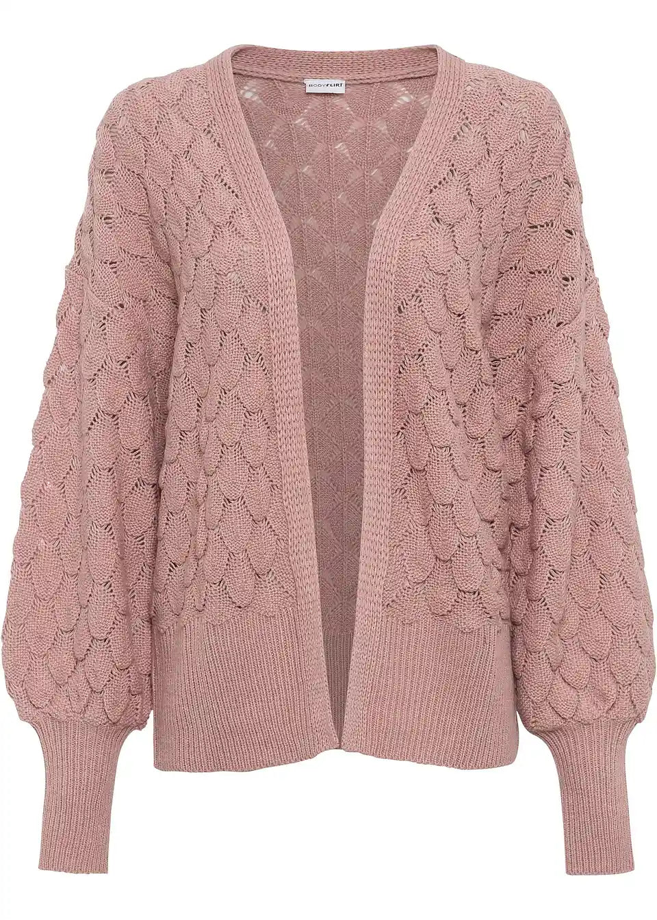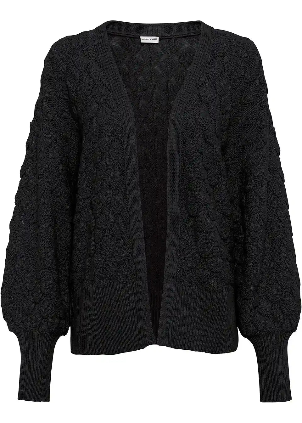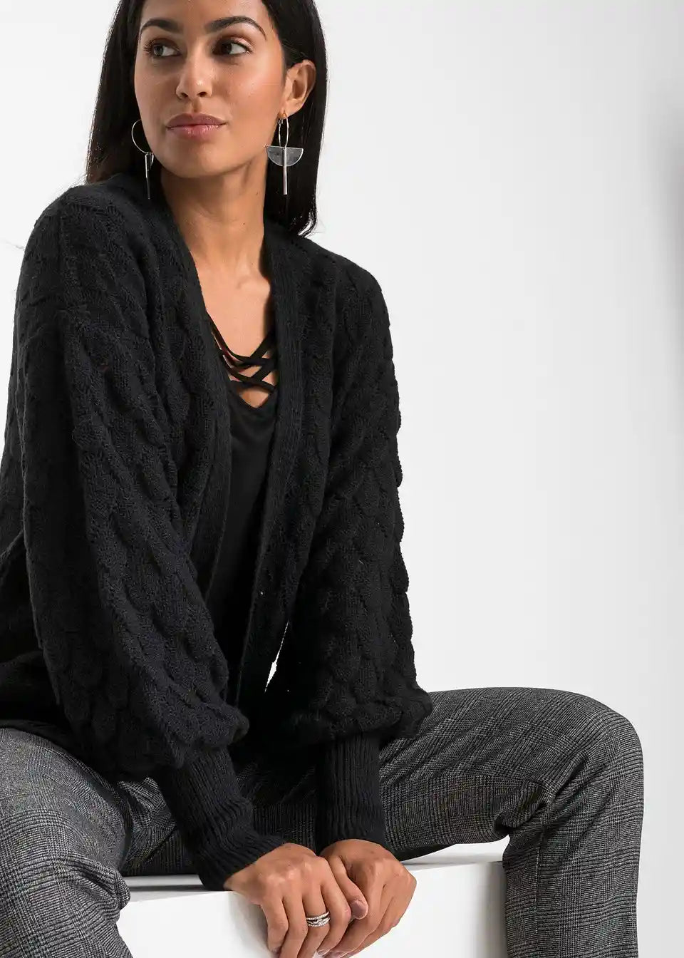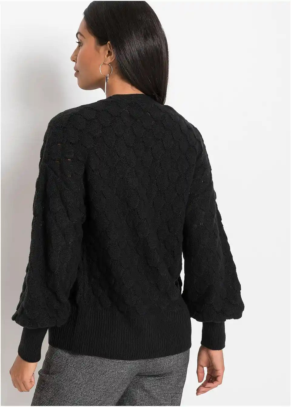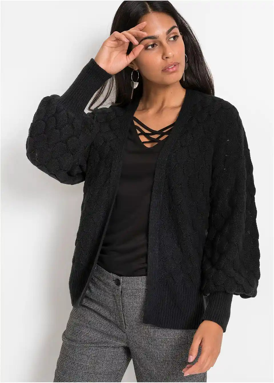 Stilska Ajour-pletena jopica z rahlo balonastimi rokavi.