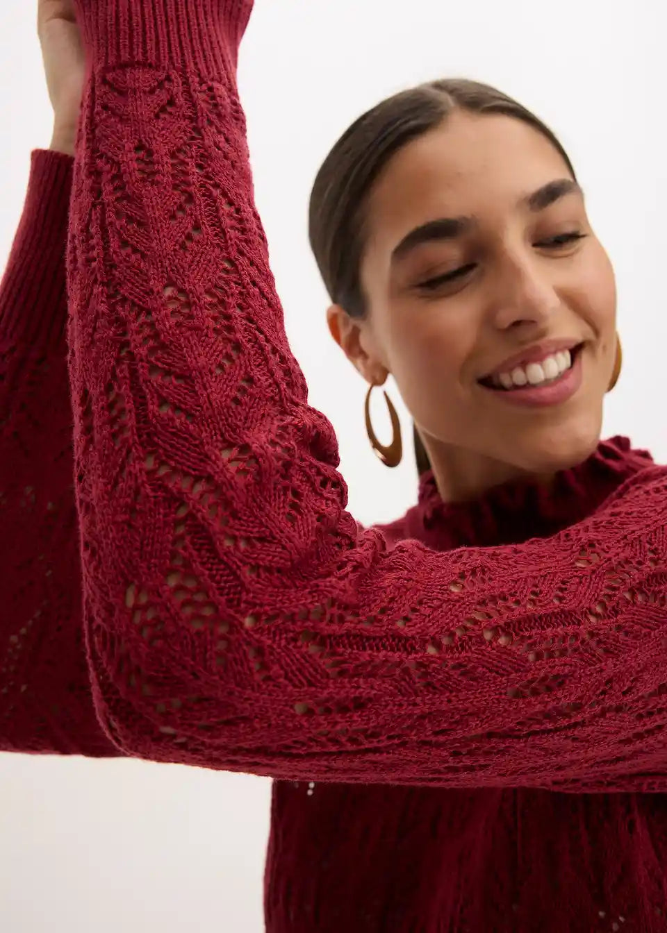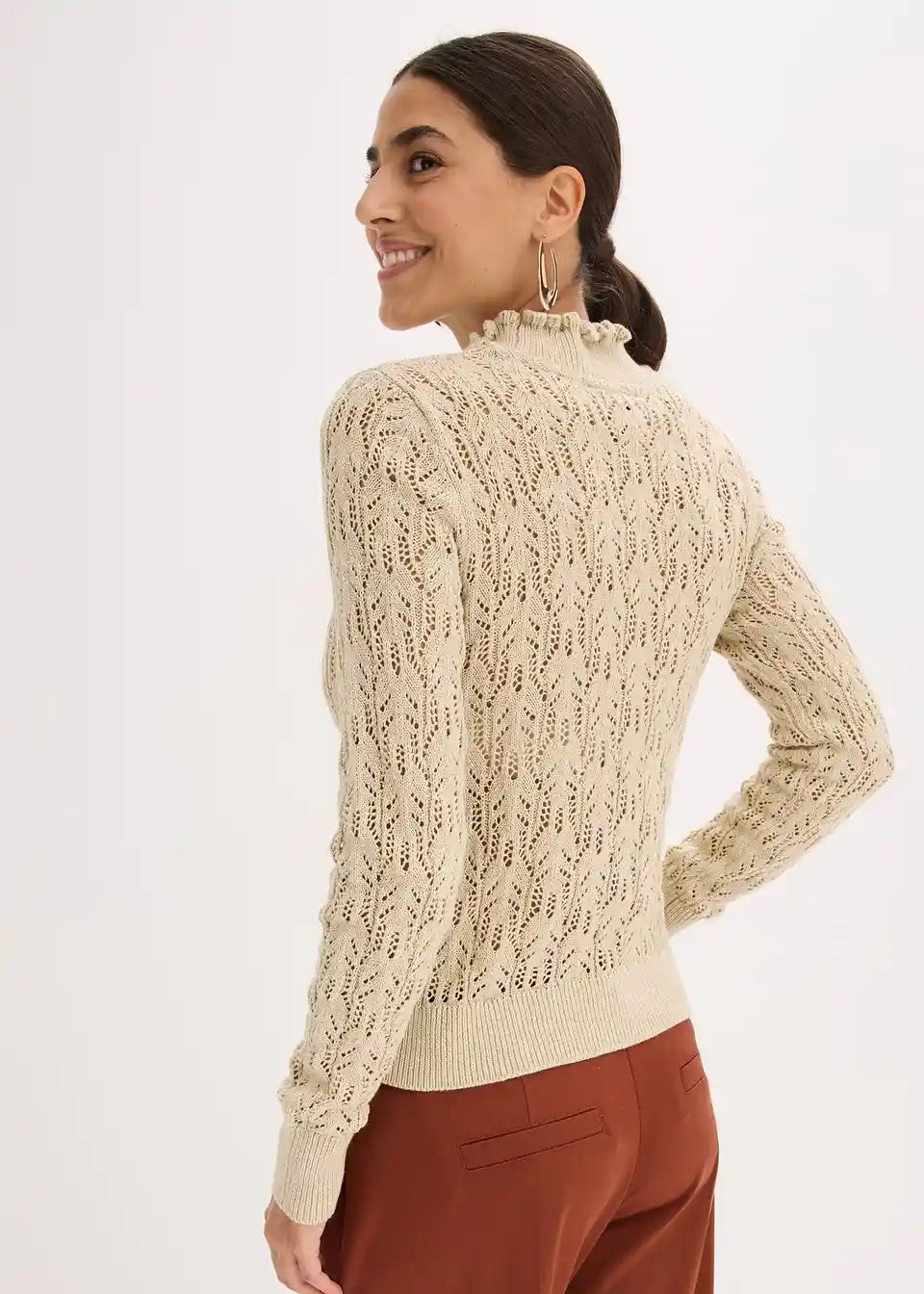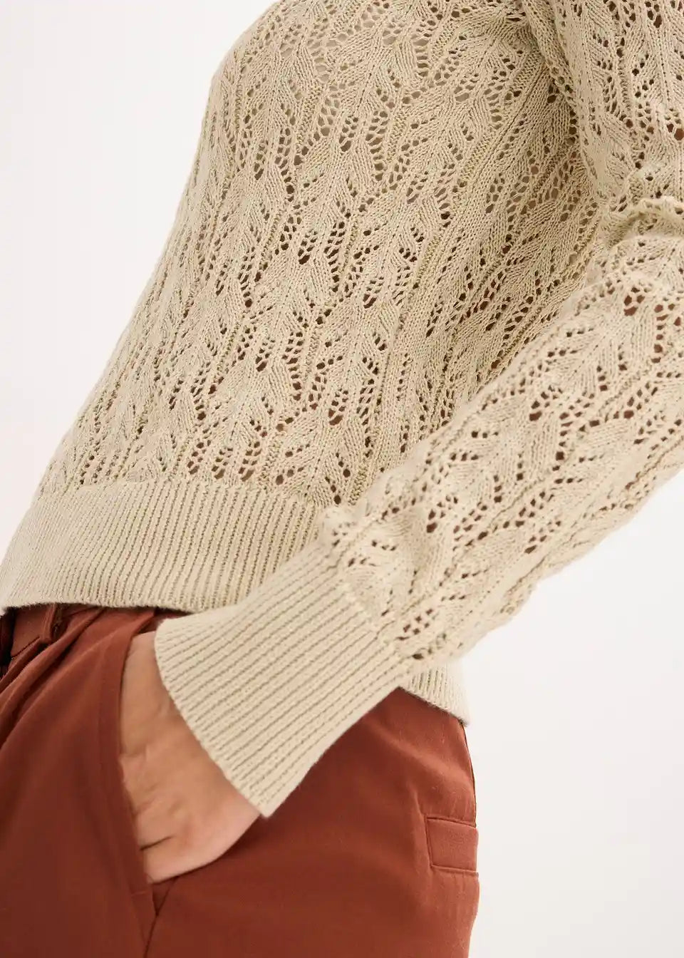 Moderen pulover s kakovostnim ažurnim vzorcem