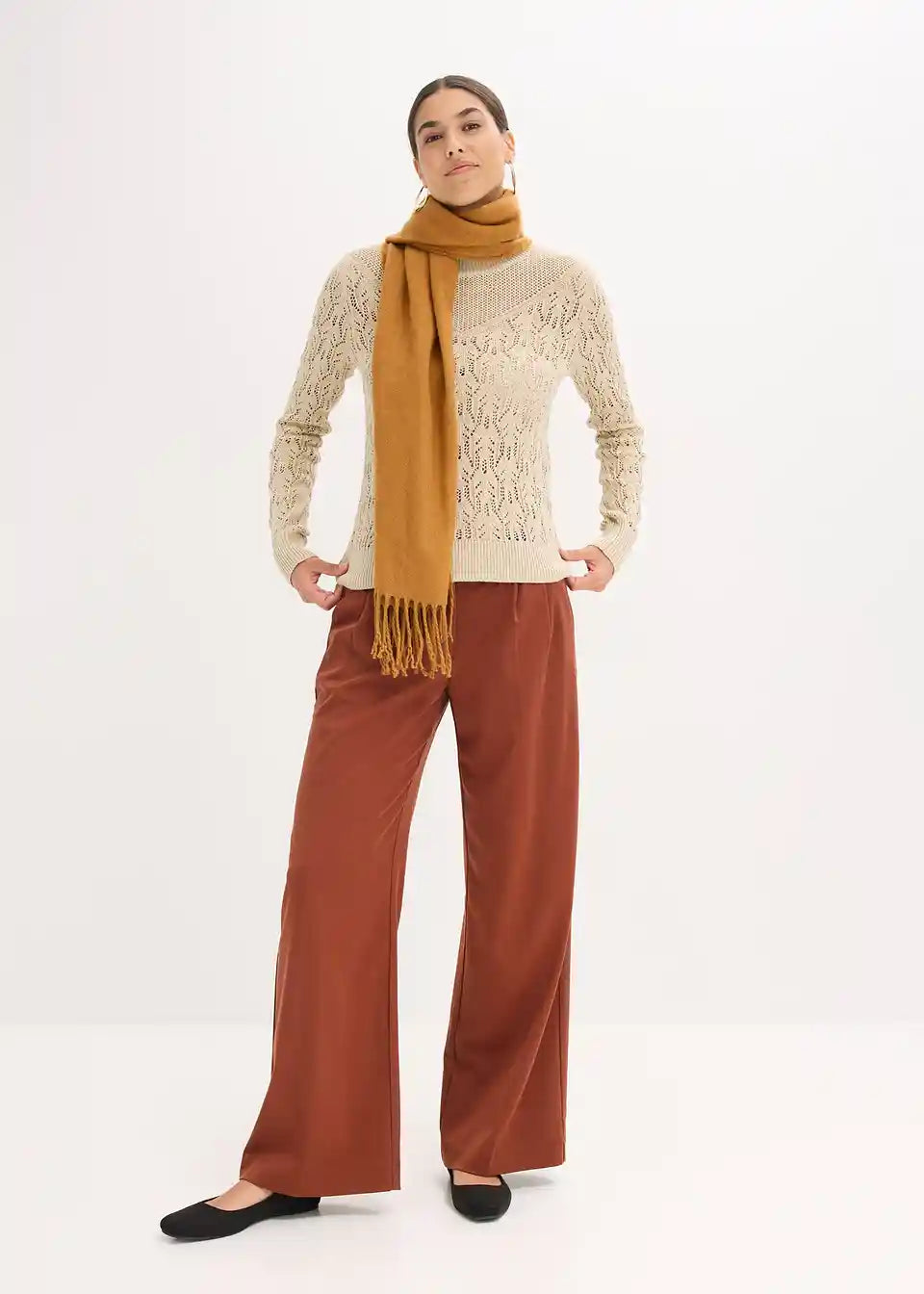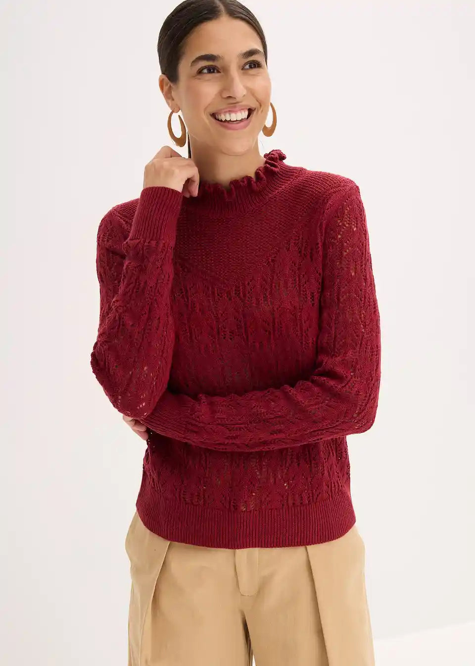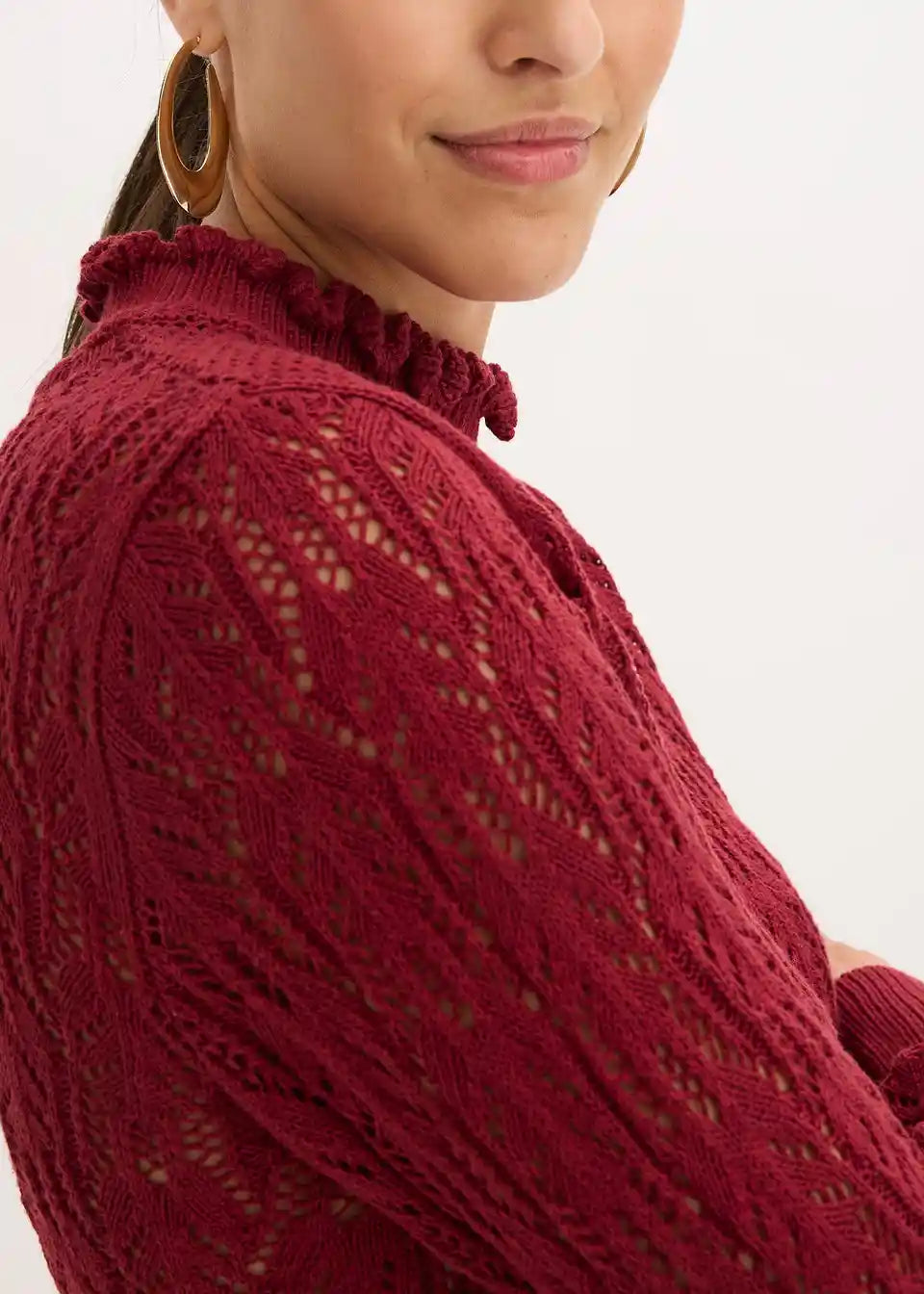 Moderen pulover s kakovostnim ažurnim vzorcem