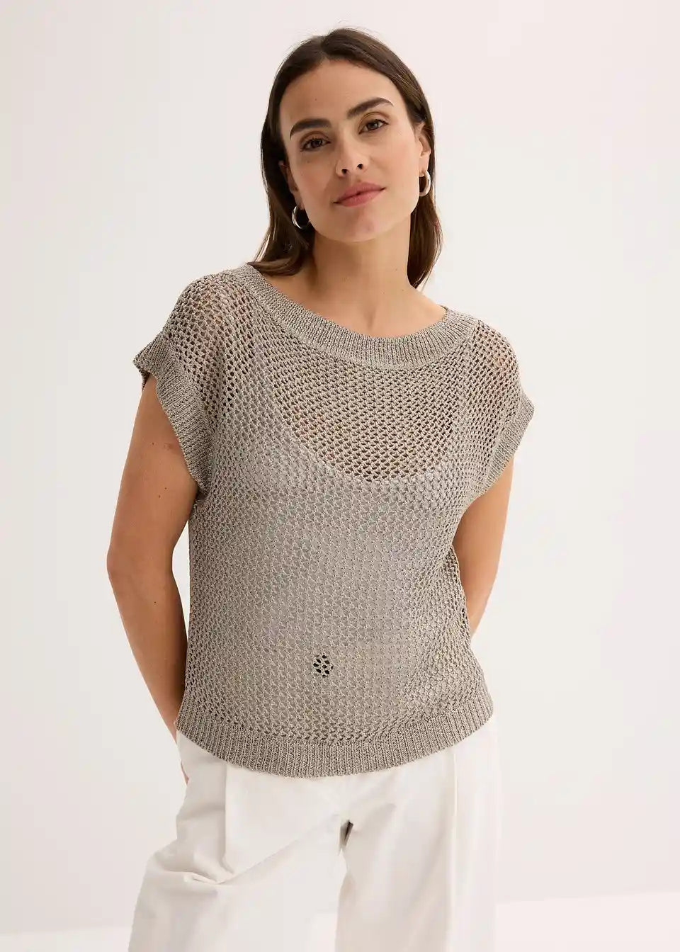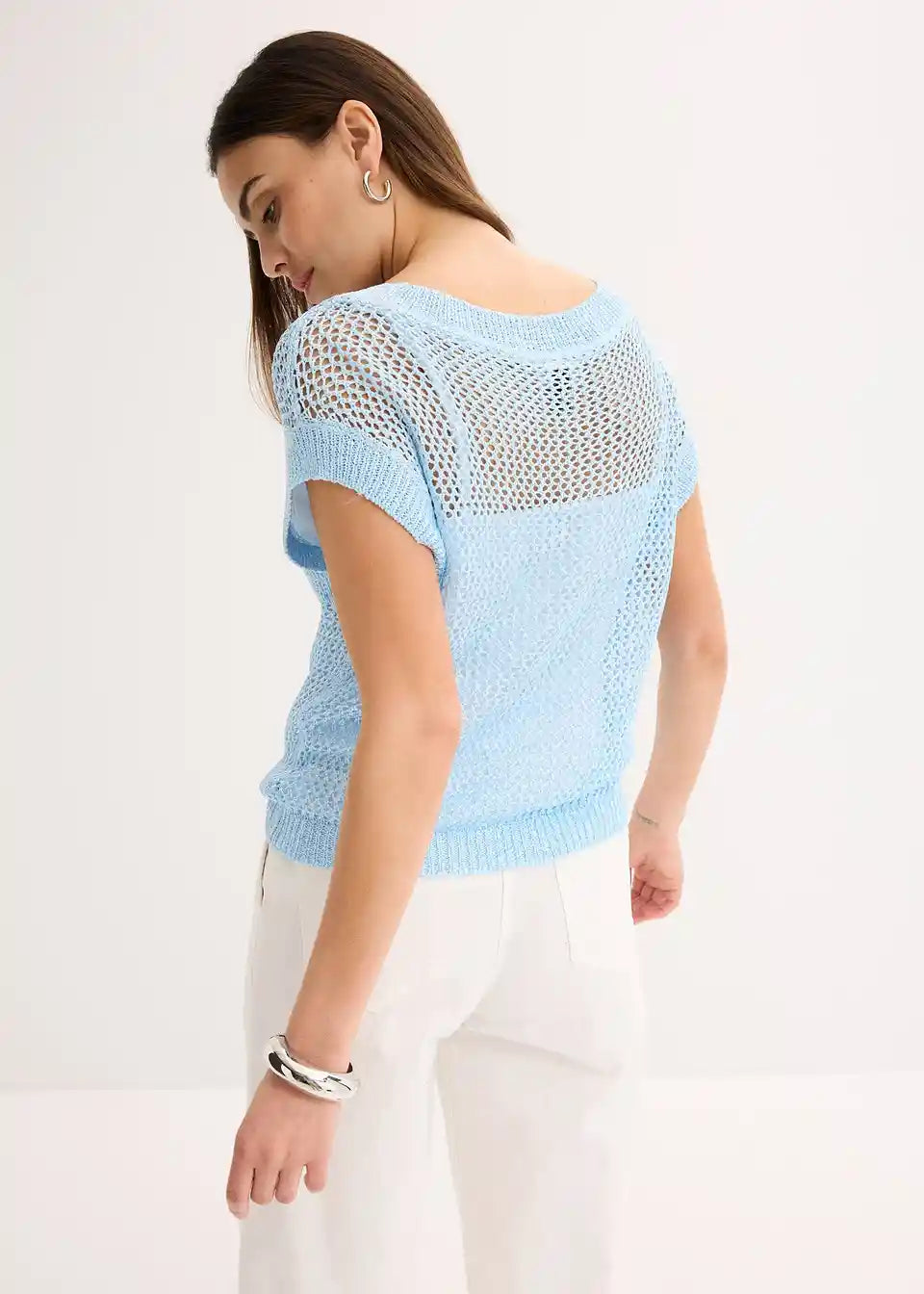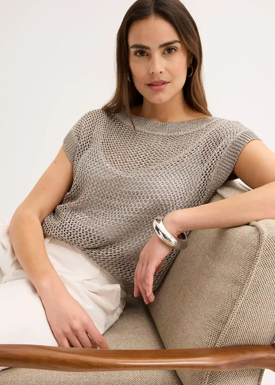 Pulover iz ažura iz sijočih trakastih vlaken