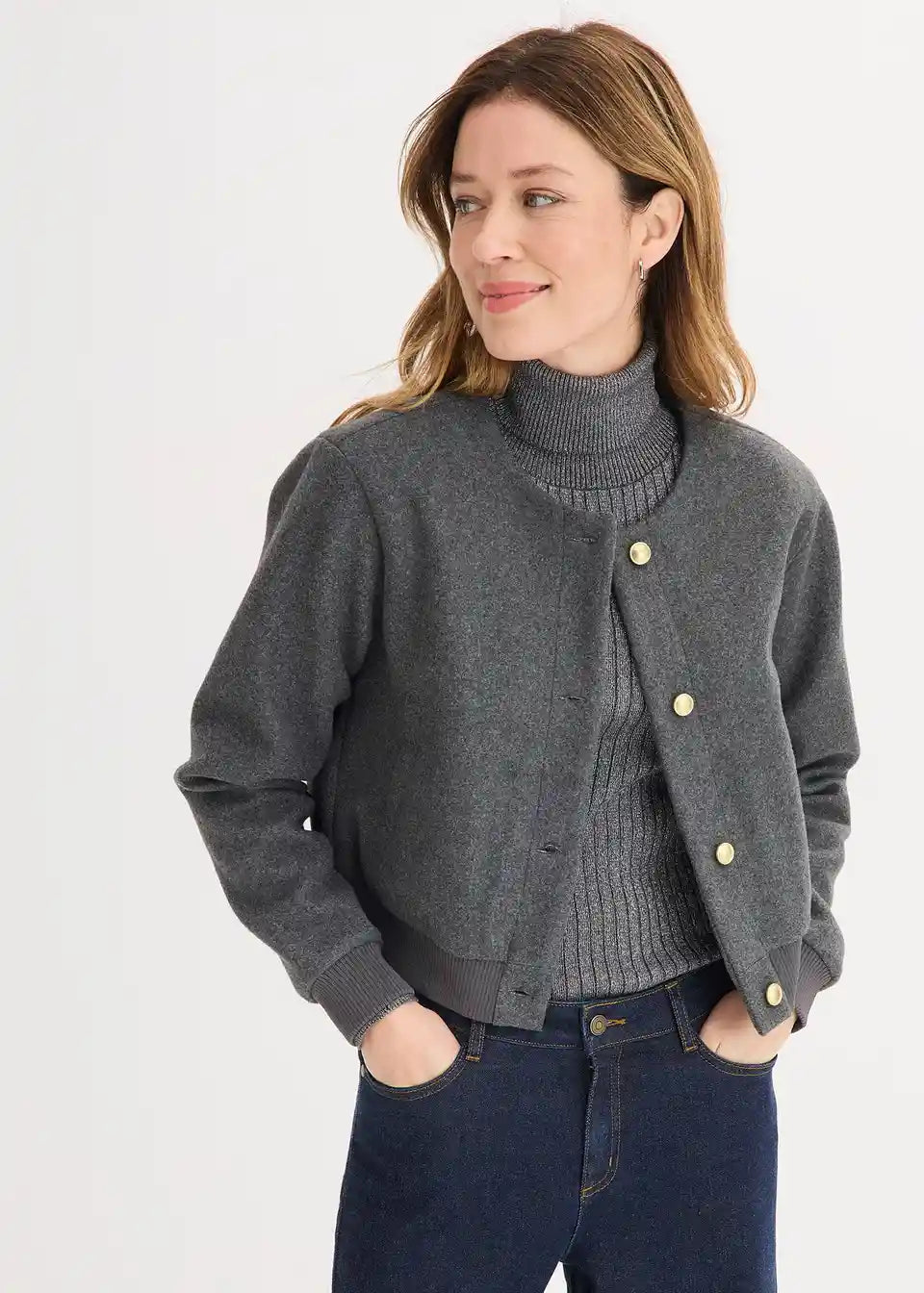 Bluzon z okroglim izrezom ter okrasnimi gumbi