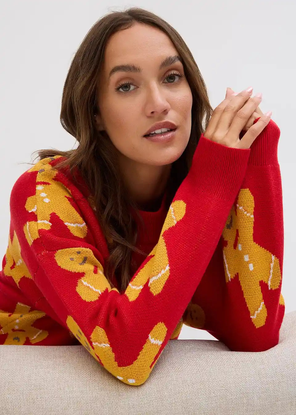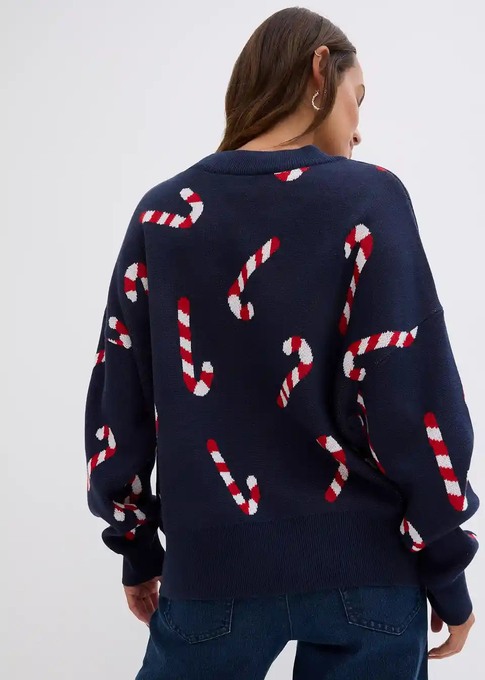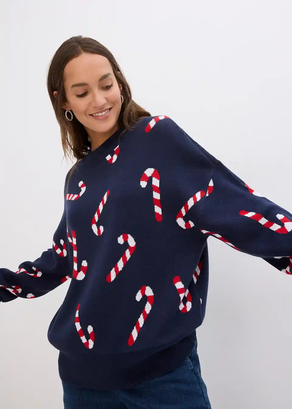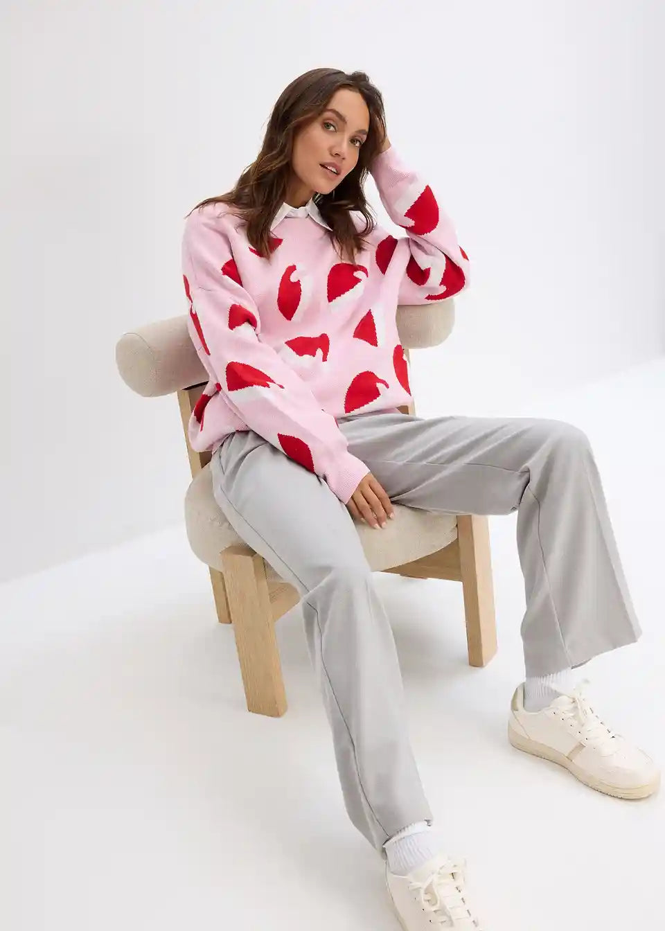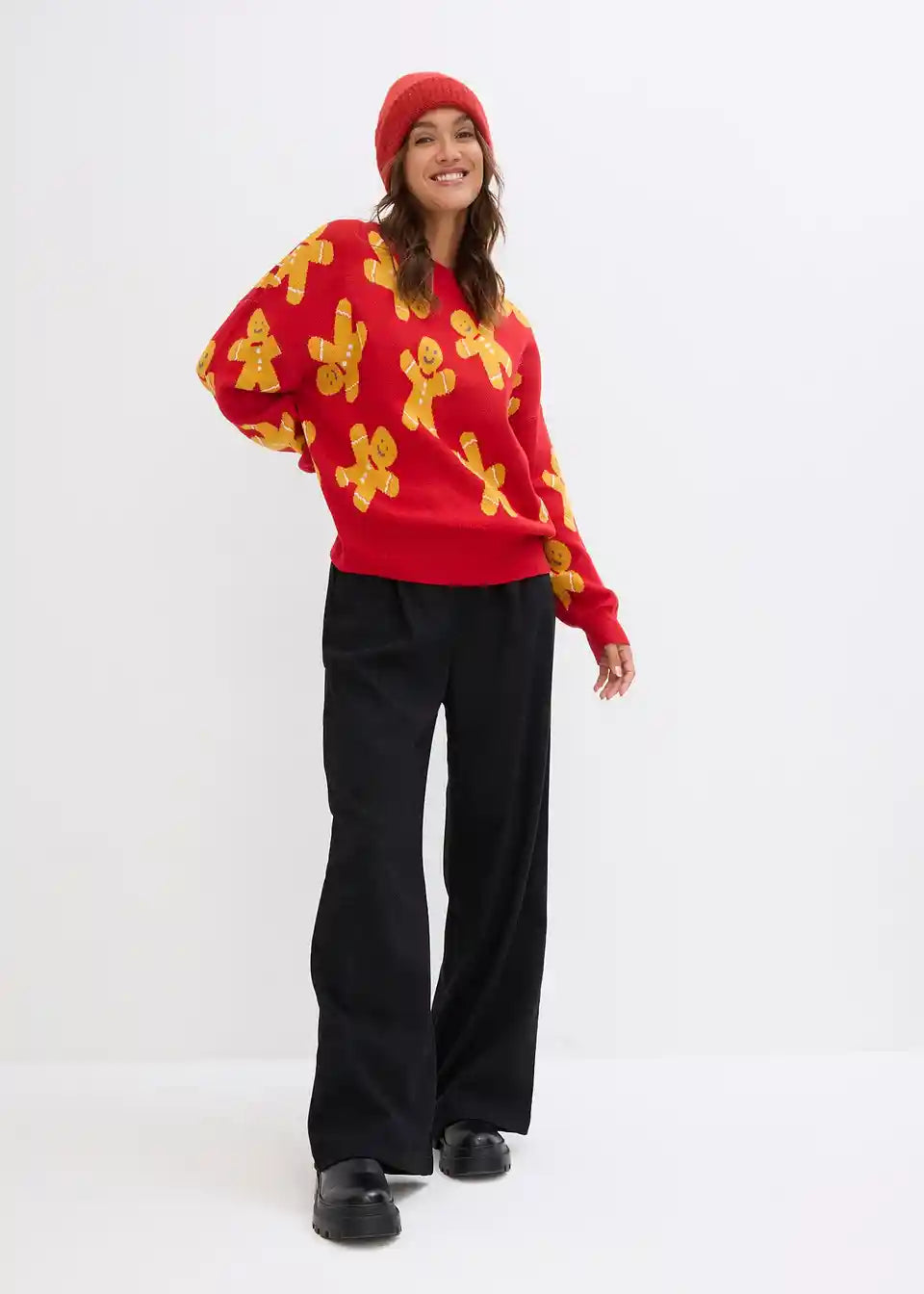 Božični pulover z okroglim izrezom v ohlapnem kroju