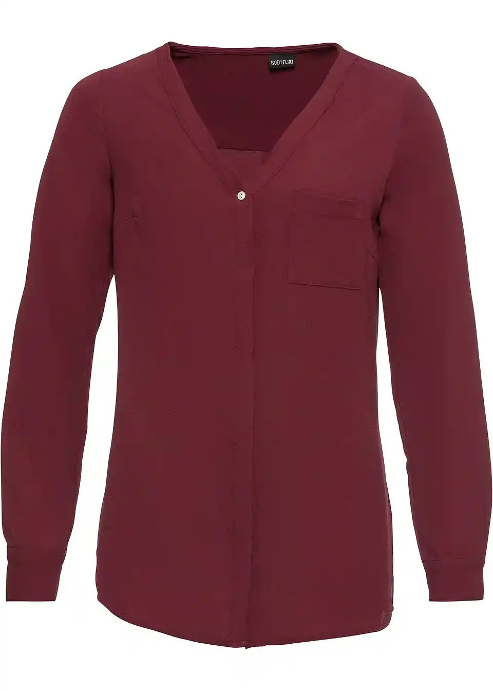 Ženska dolga bluza z zakritim zapenjanjem na gumbe.