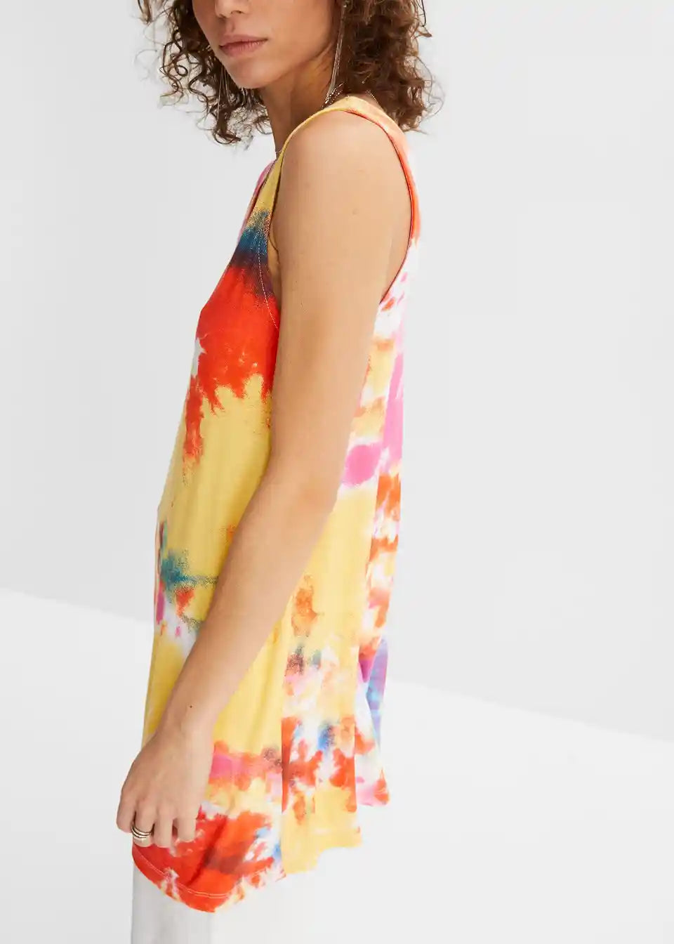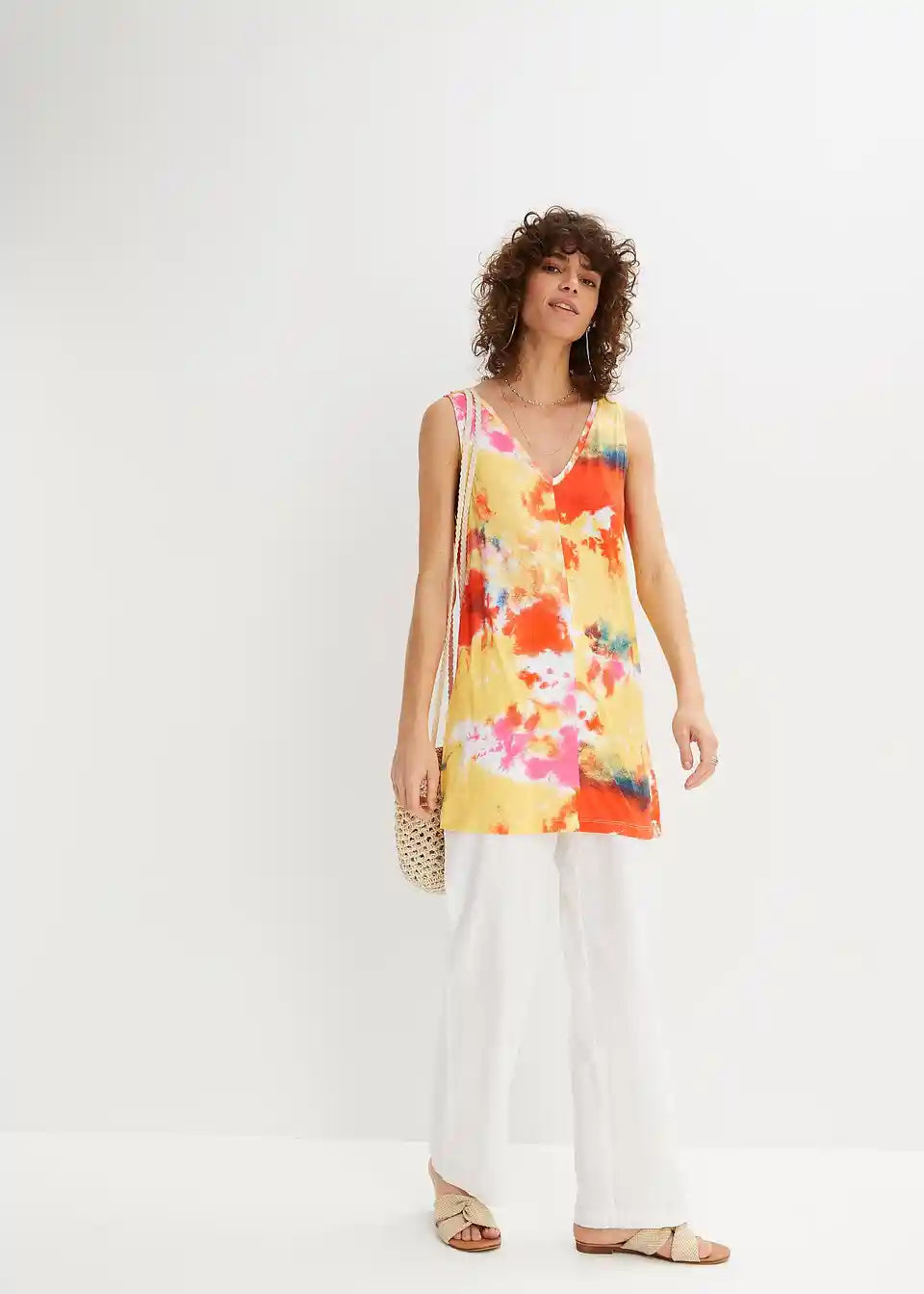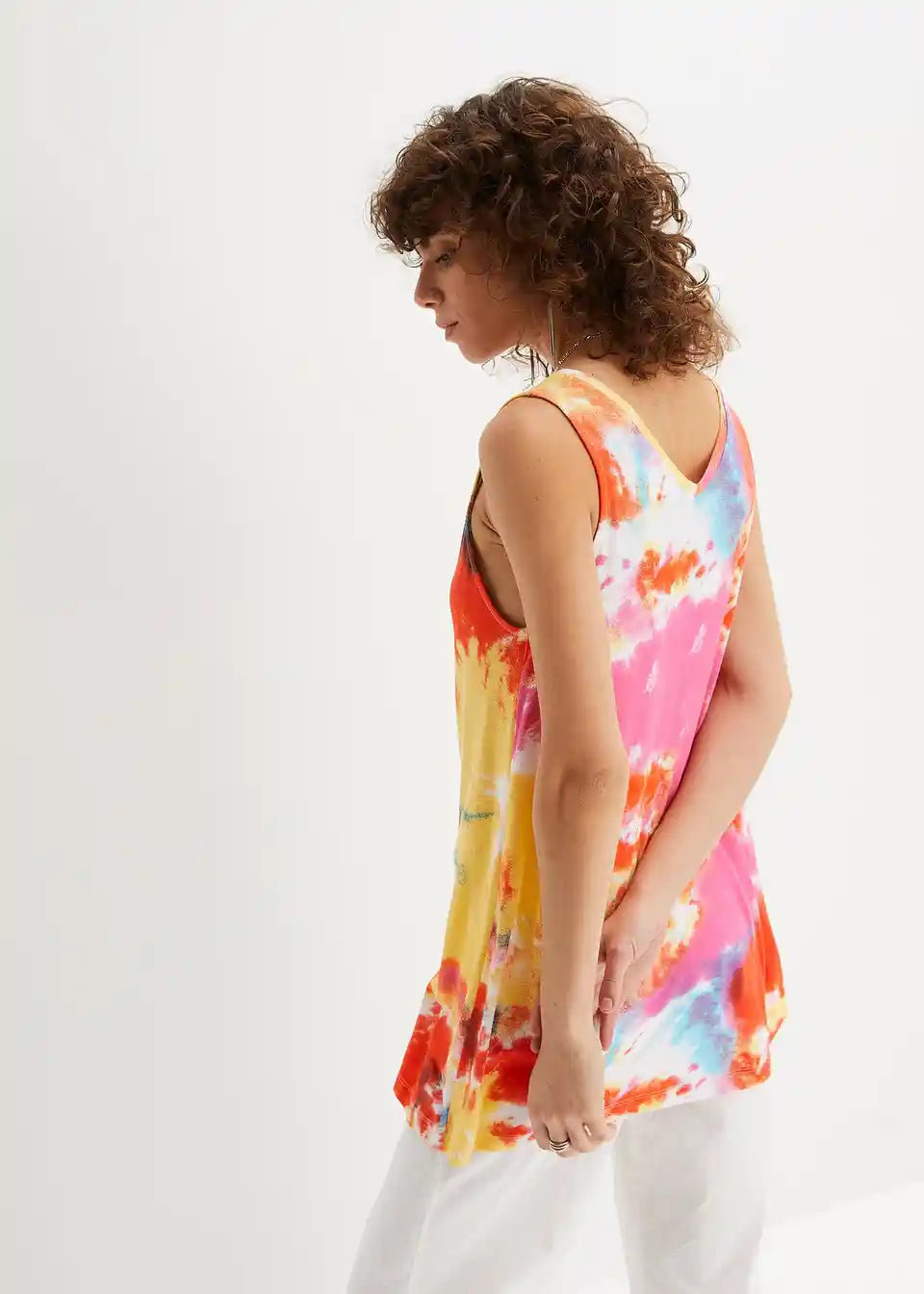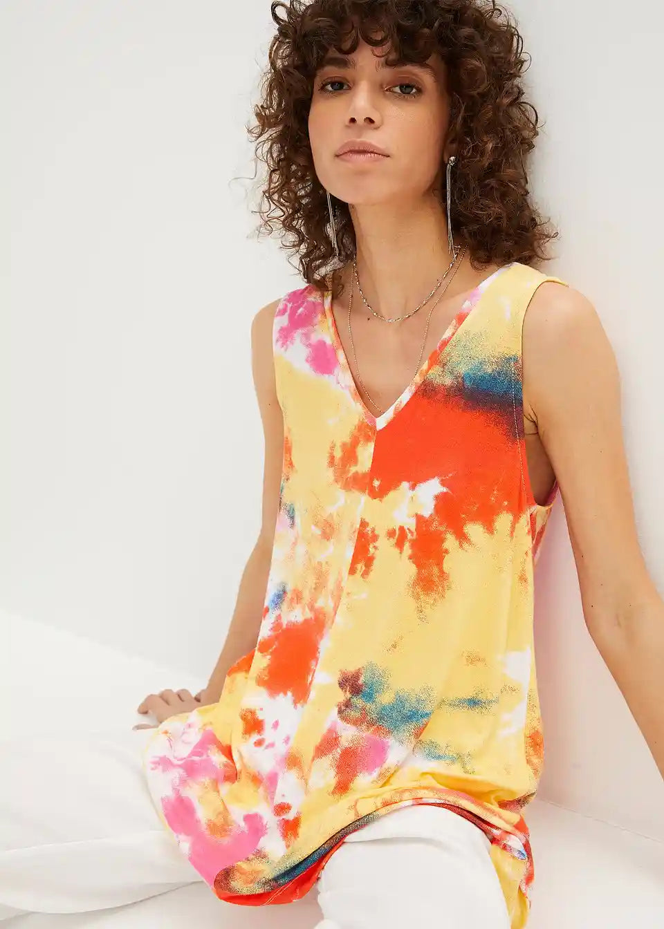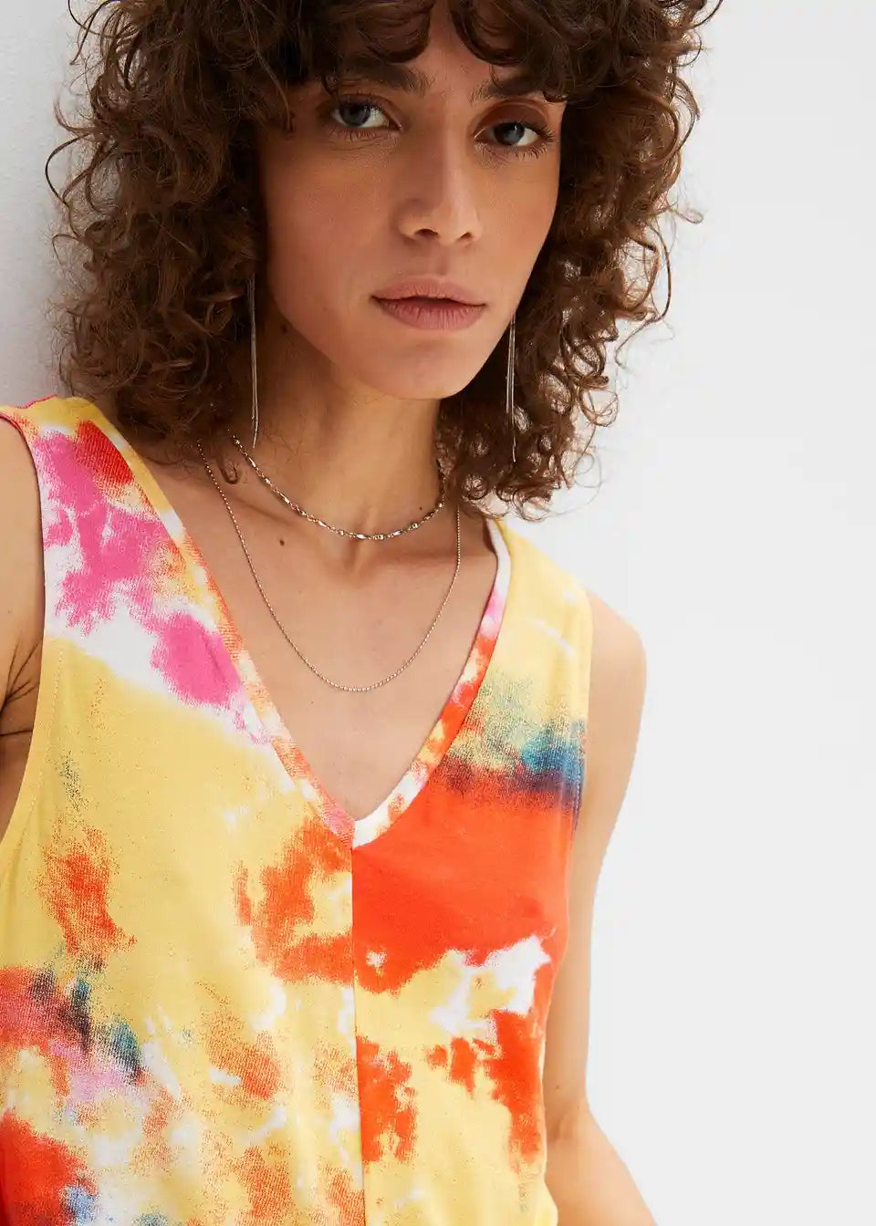 Lahek, ohlapno padajoč top v A-liniji z V-izrezom. Vsak kos je edinstven.