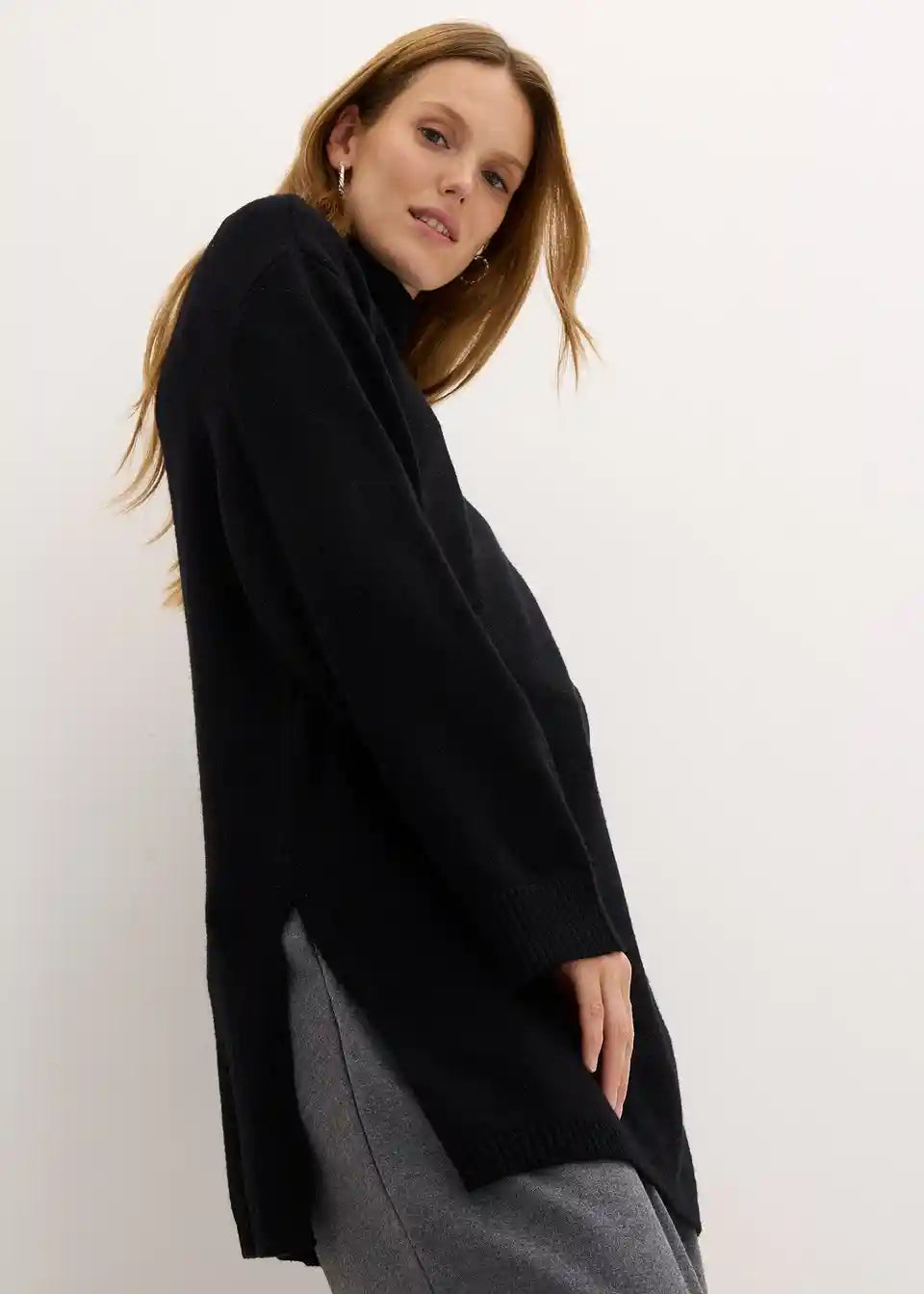 Daljši fini plet s trendovskimi stranskimi razporki