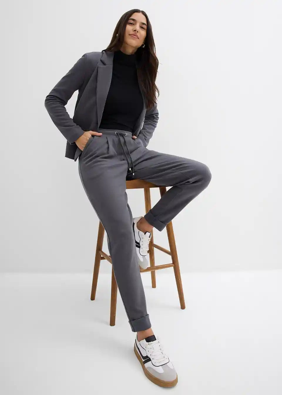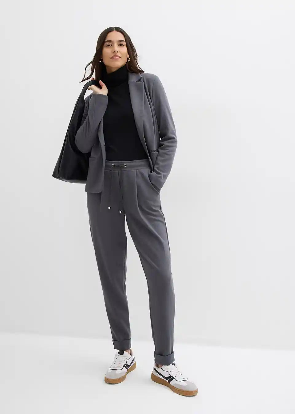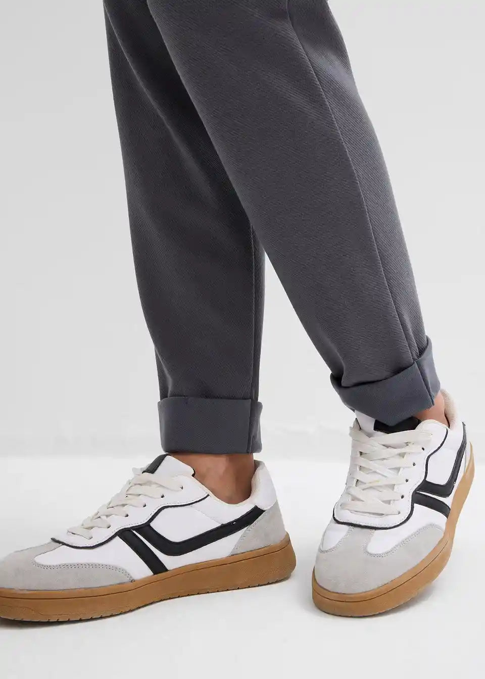 Do gležnjev dolge hlače brez zapenjanja s fiksiranim zavihkom in udobno širino na stegnih