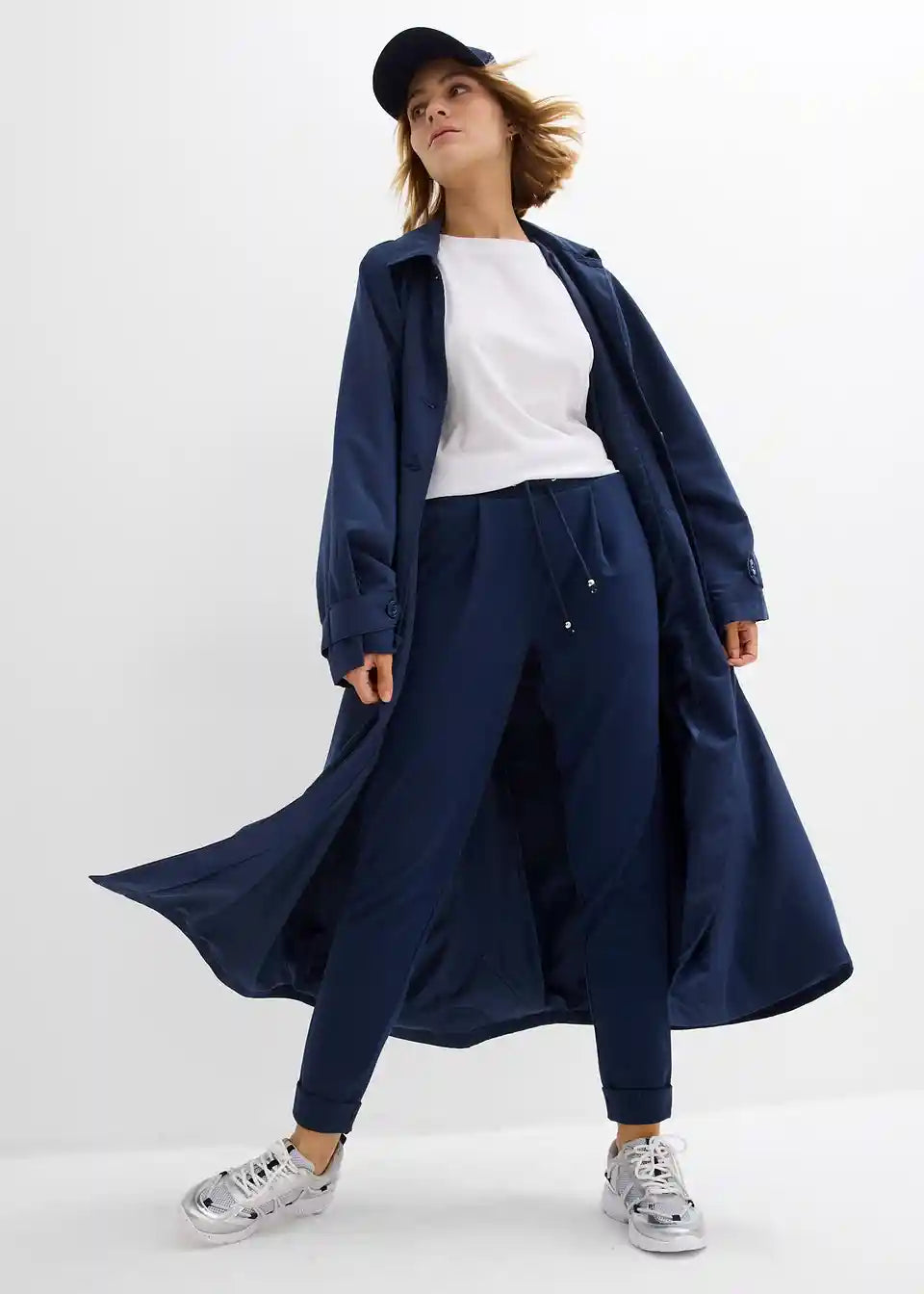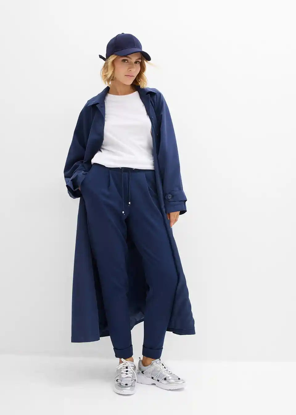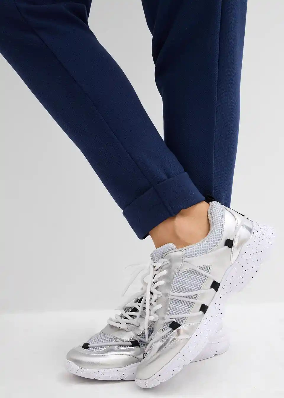 Do gležnjev dolge hlače brez zapenjanja s fiksiranim zavihkom in udobno širino na stegnih