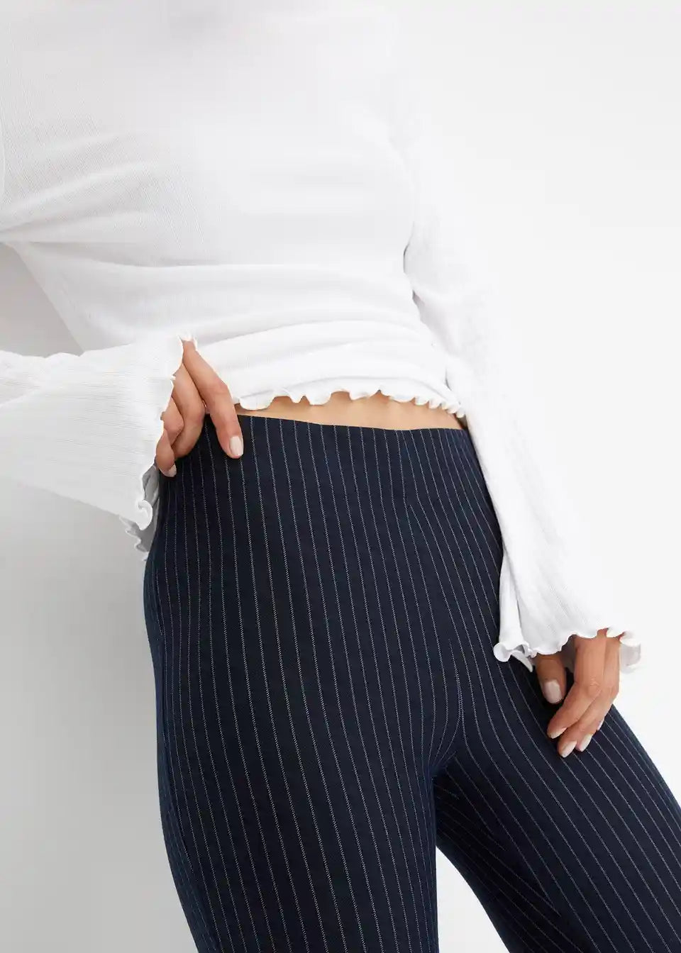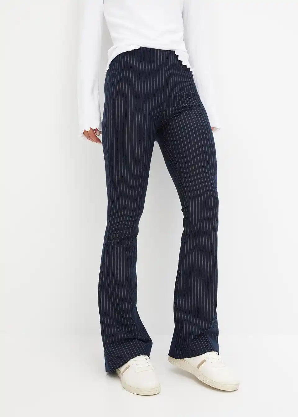 Trendy dolge hlače z visokim pasom in igličastimi črtami