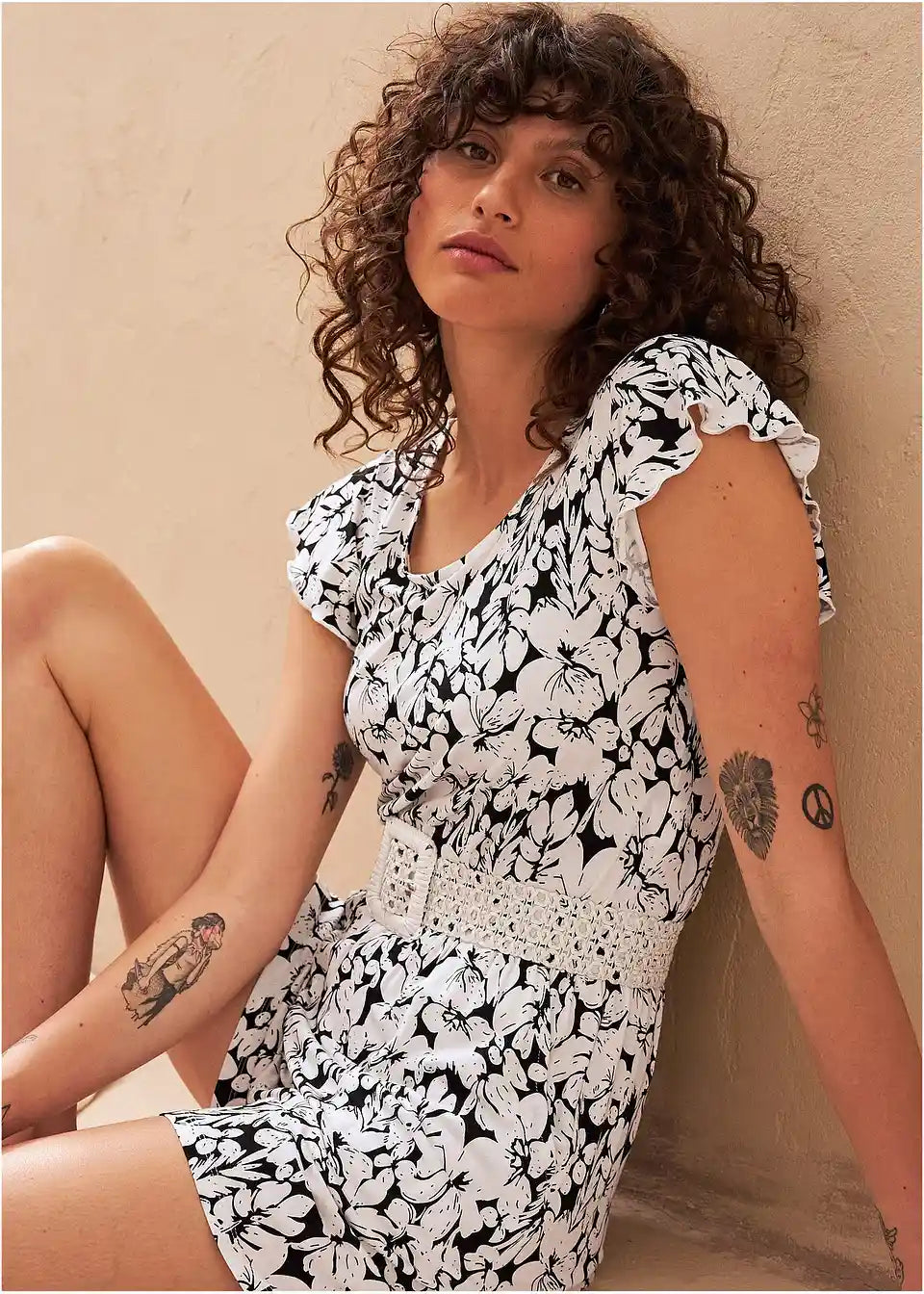 Kratek Jersey Jumpsuit s krilastimi rokavi iz certificirane viskoze