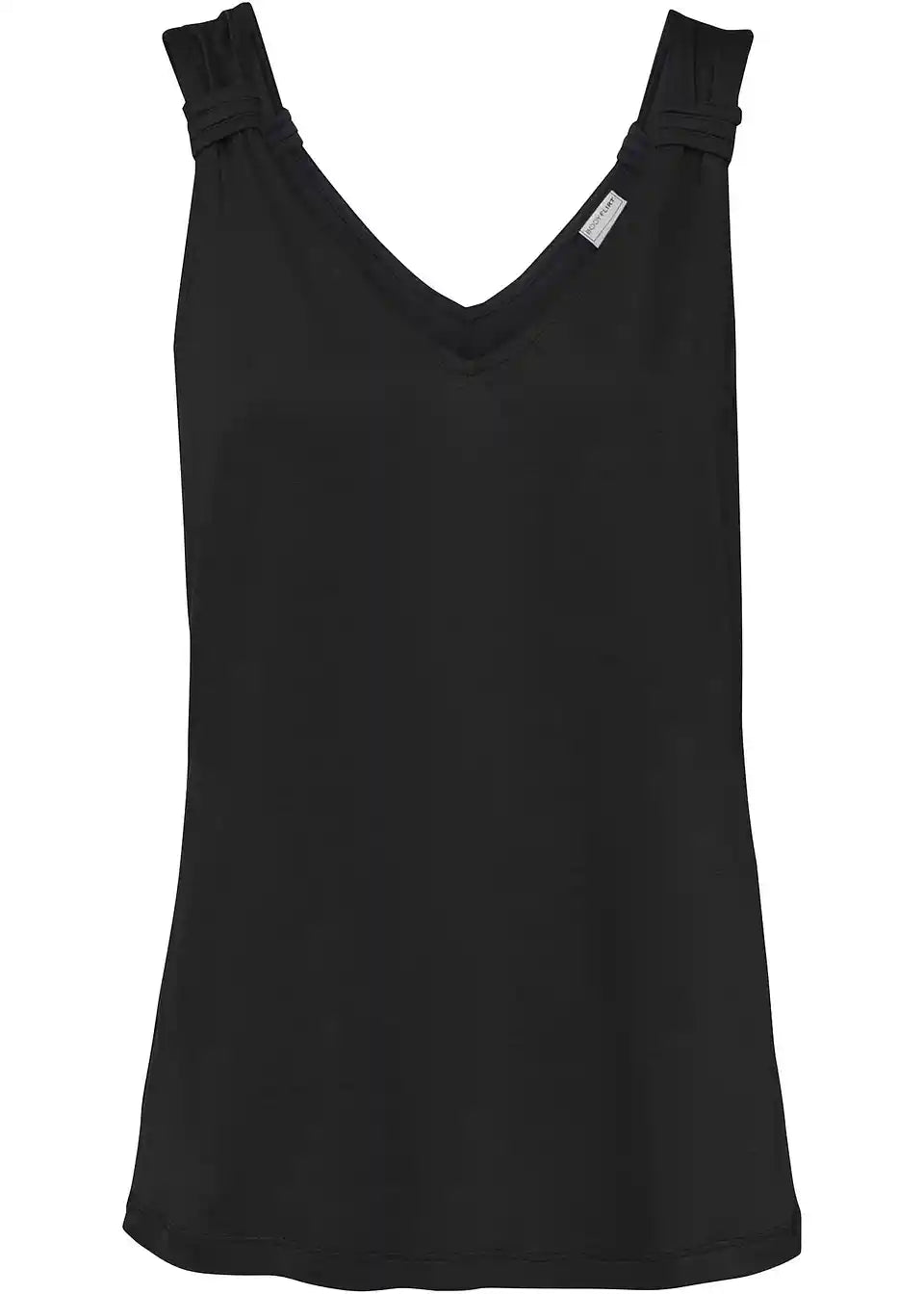 Poletni jersey-top s trendnimi detajli na naramnicah.