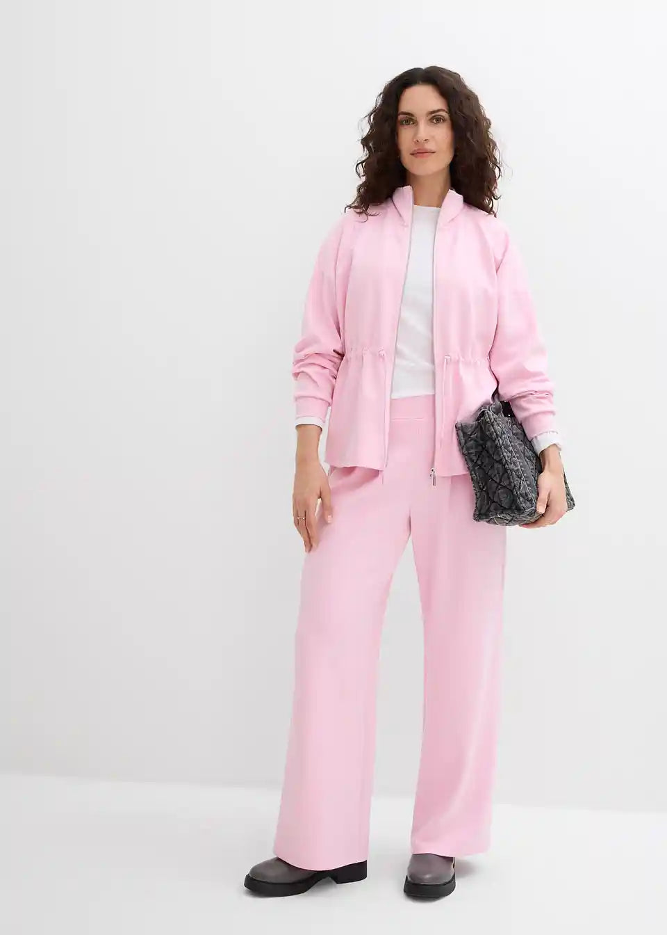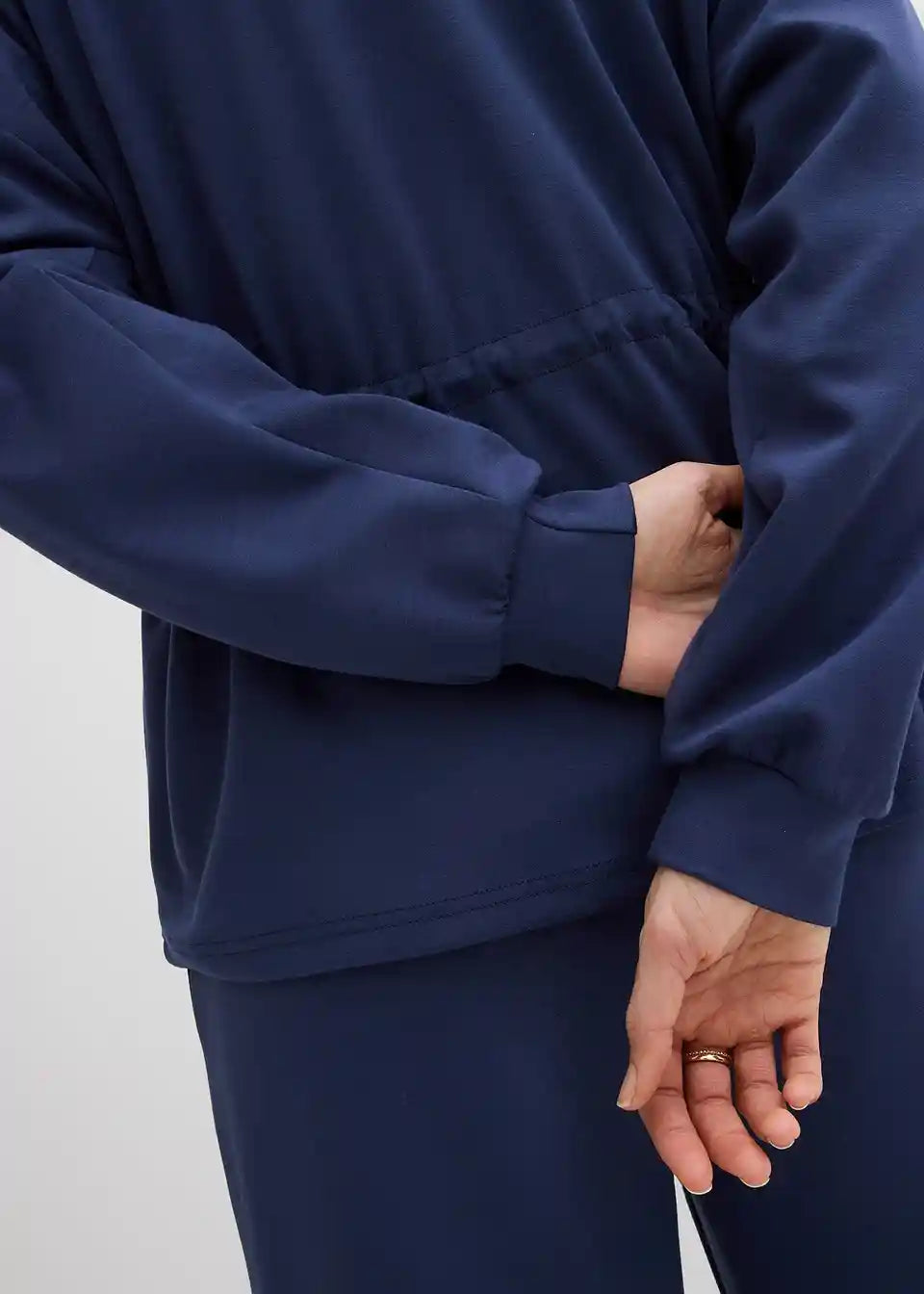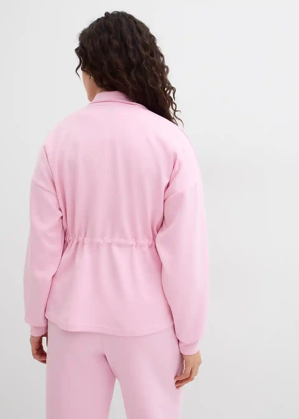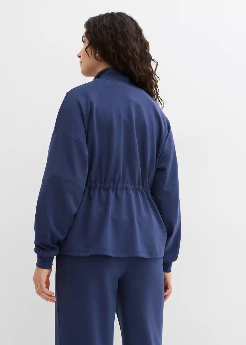 Široko krojena jakna z vpeljano vrvico v pasu za nastavitev širine. Iz posebno mehkega materiala z viskozo, ki je mehka na otip.