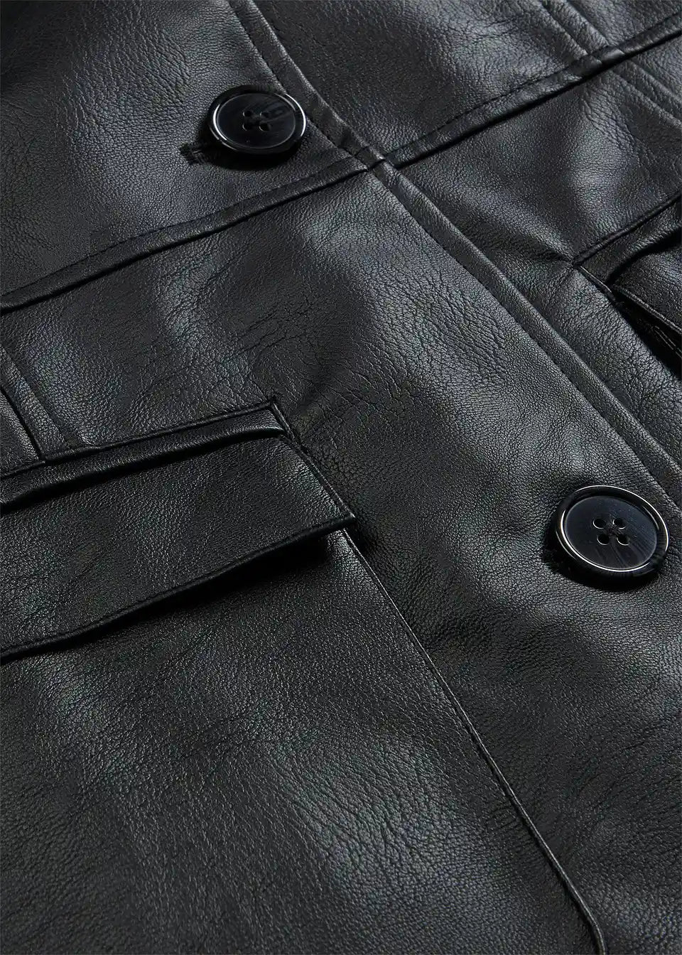Lahek plašč iz umetnega usnja s fazona ovratnikom v tajliranem kroju