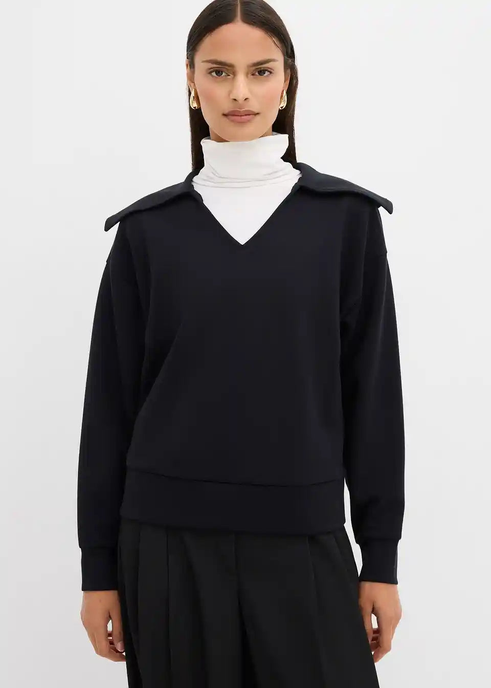 Majica iz trikoja s širokim polo ovratnikom in V-izrezom