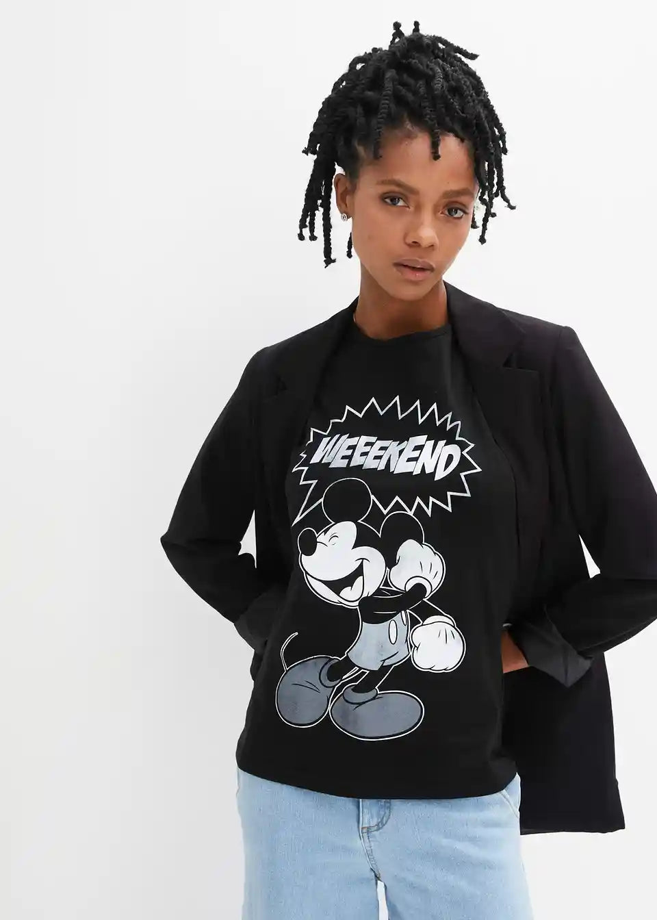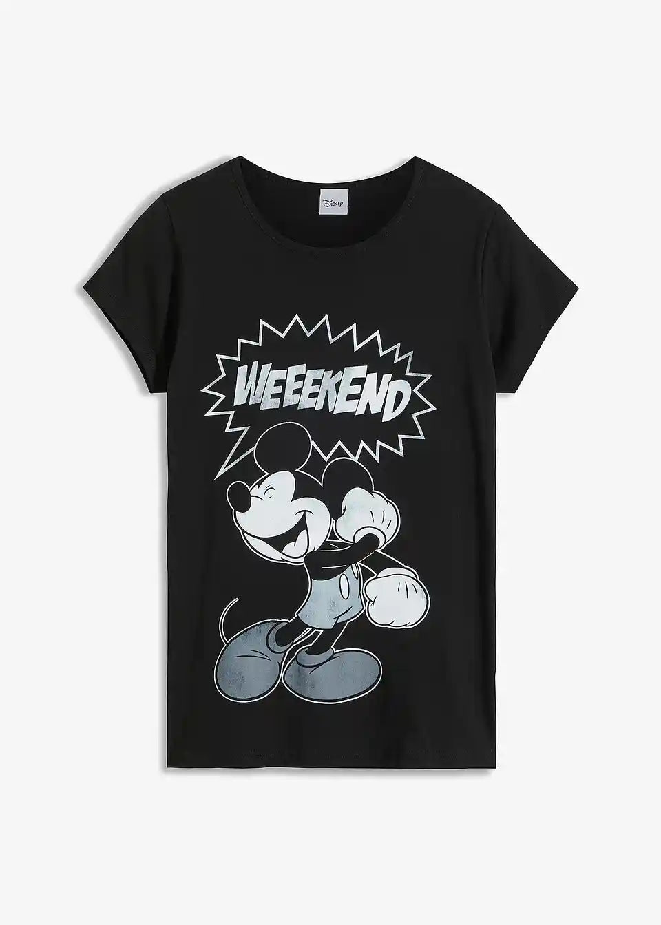 Slavna miška se na tej majici veseli vikenda. Rahlo zbledel motiv z vintage značajem daje modelu trendovski retro pridih. Majica z Mickey-Mouse potiskom in okroglim izrezom navdušuje v številnih kombinacijah. Raztrgane kavbojke, škornji in odprta karirasta srajca se k modelu odlično podajo, prav tako pa tudi kombinacija s skinny hlačami, supergami in blazerjem.