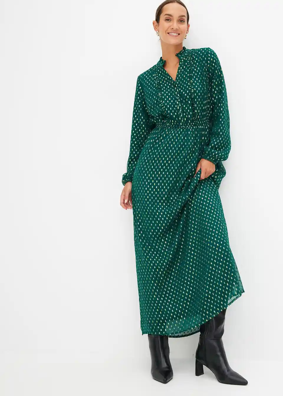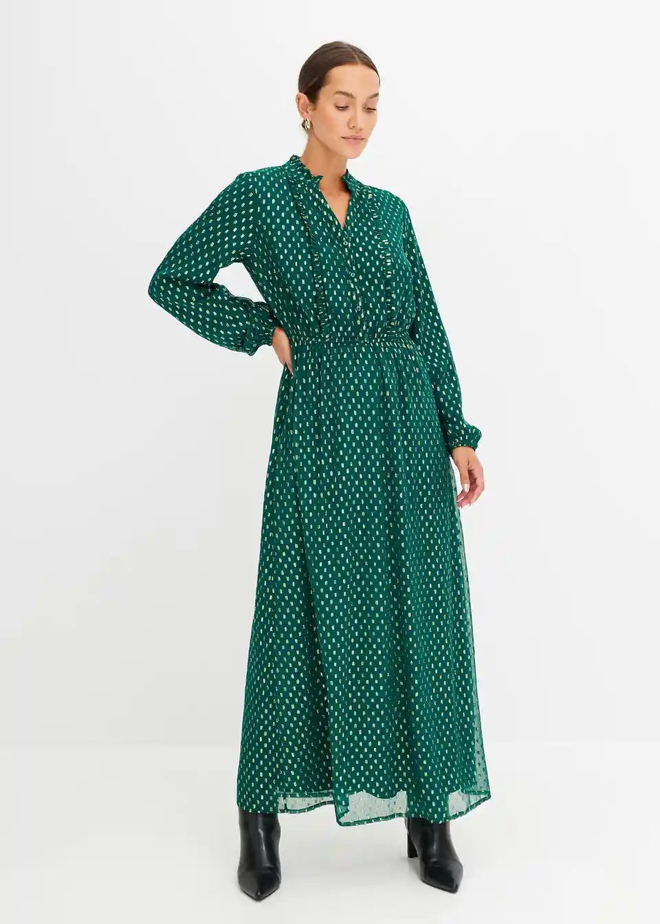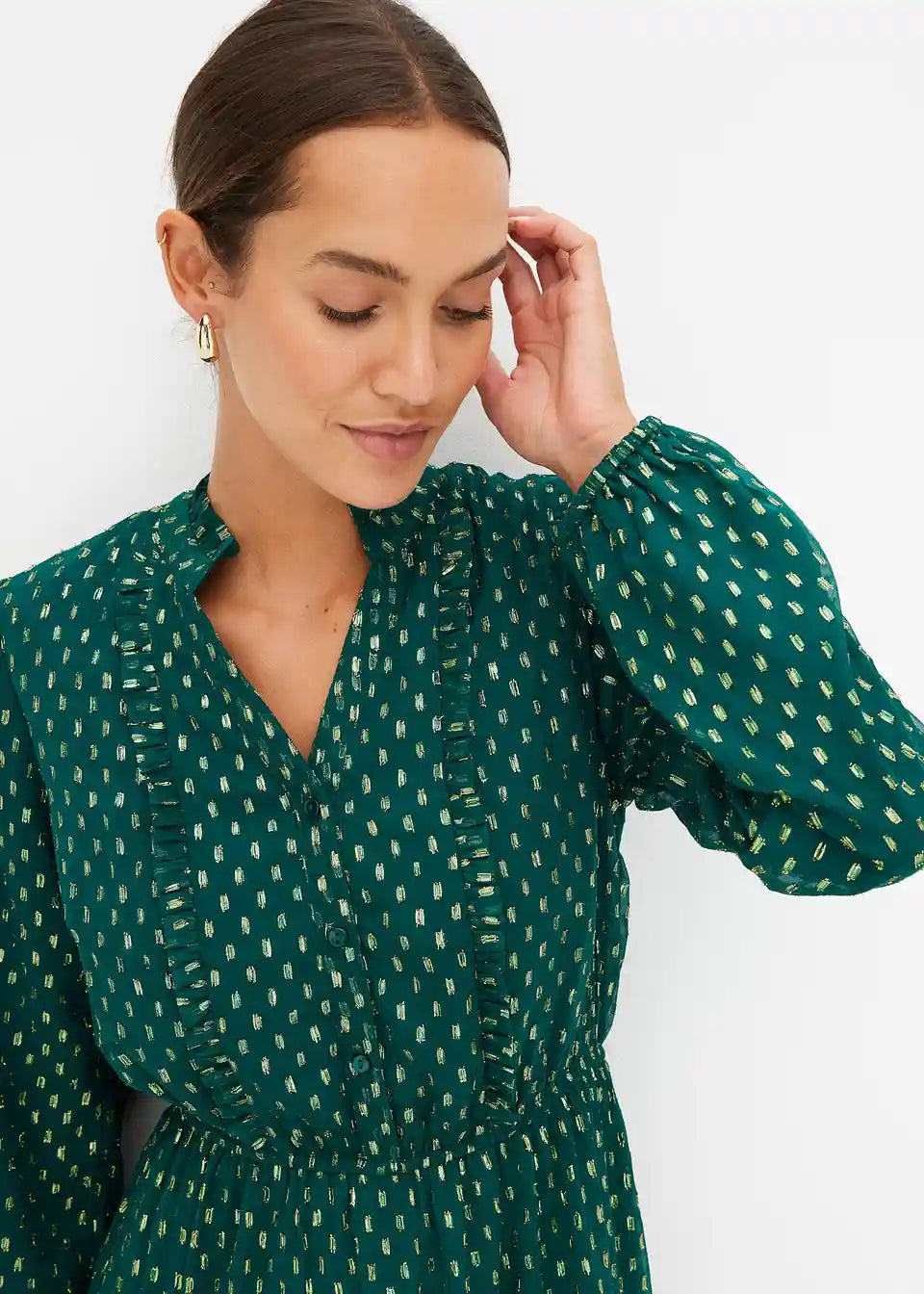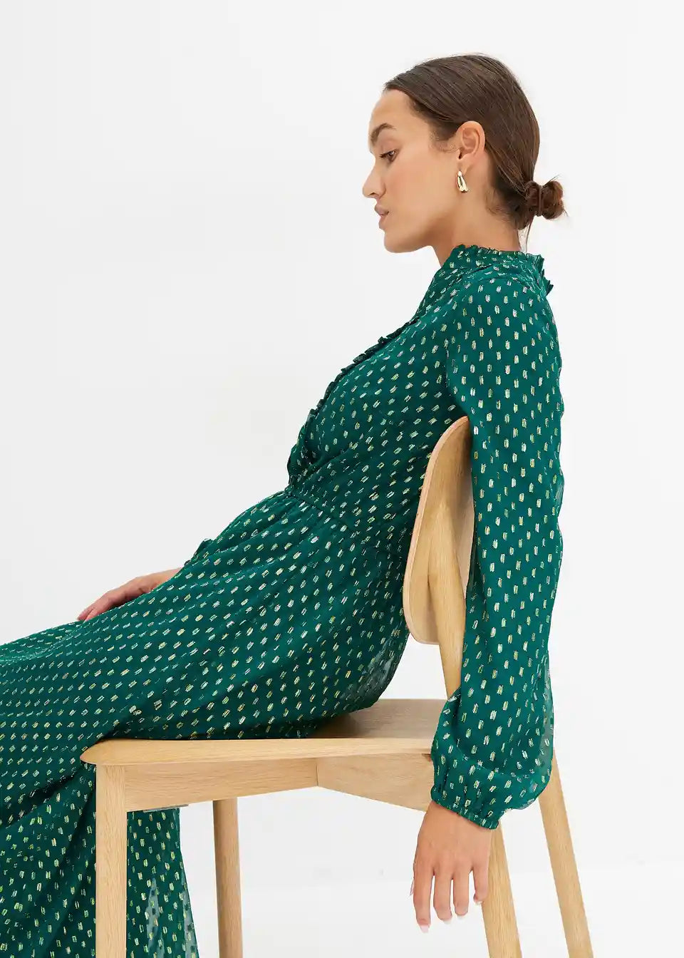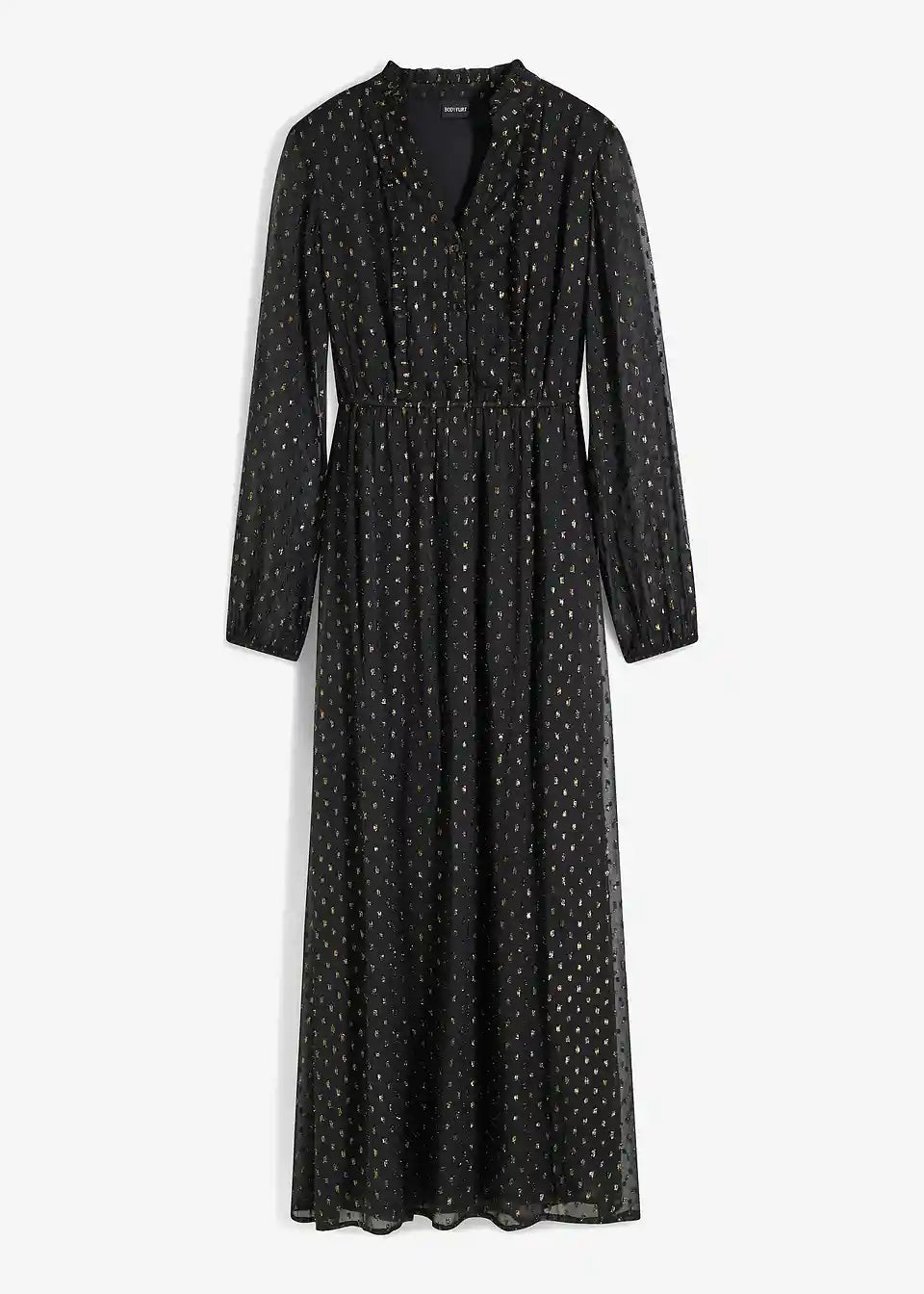 Eleganten Maksimalna obleka z bleščečim učinkom in z gumbi