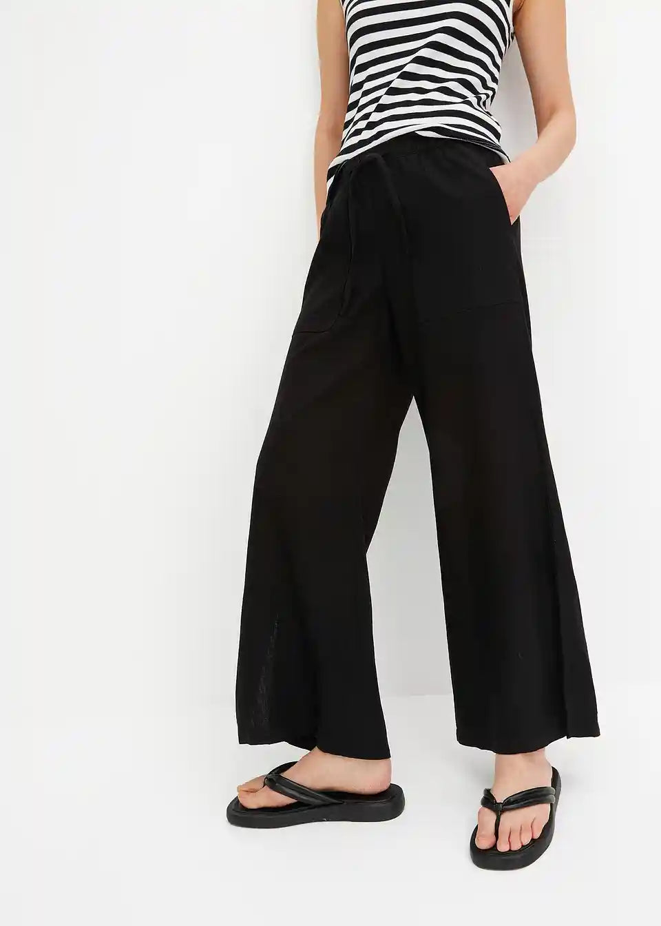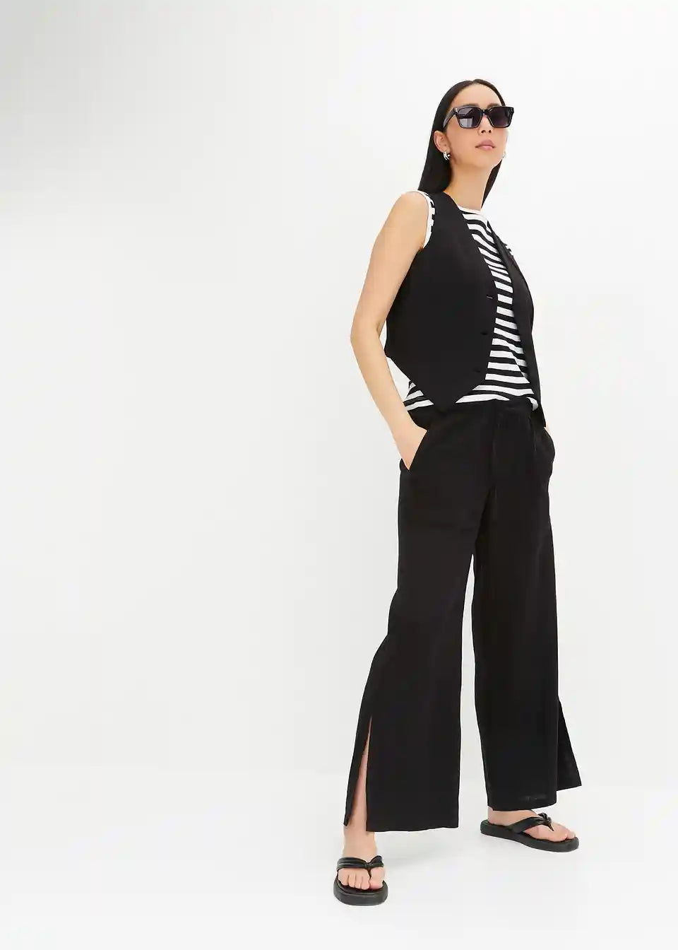 Siroko krojene hlače s podrobnostjo zavezovanja in razporkom