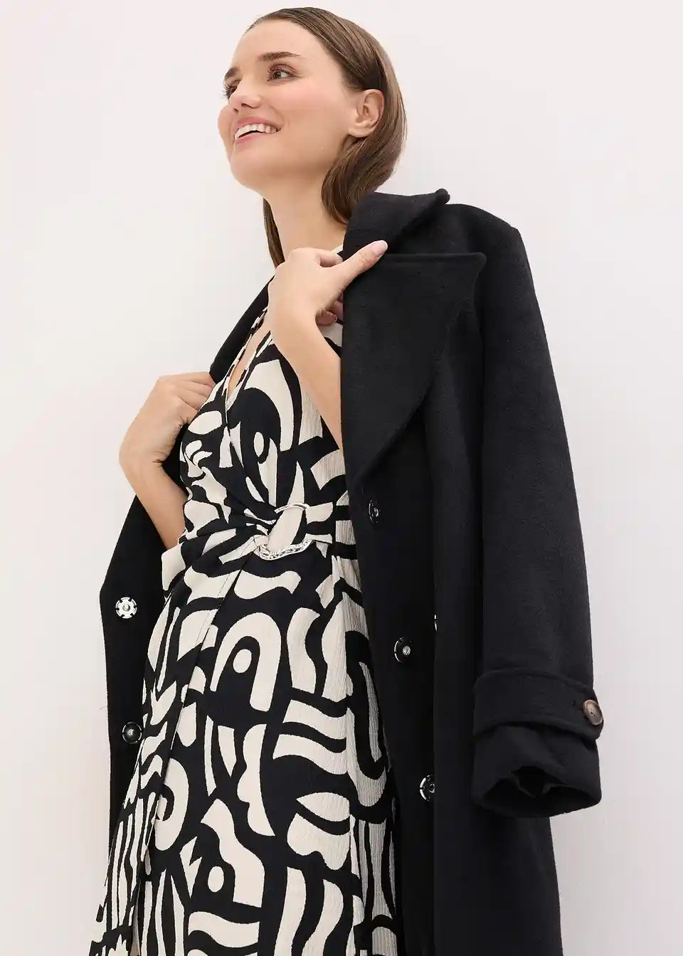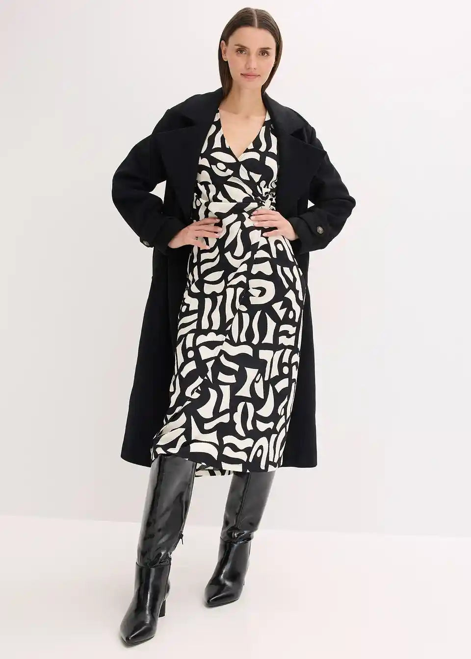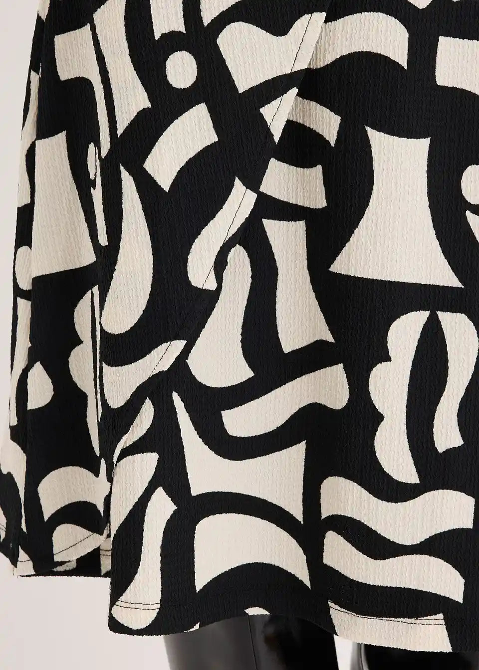 Grafično potiskana midi obleka z okrasnim detajlom obročka na strani v pasu