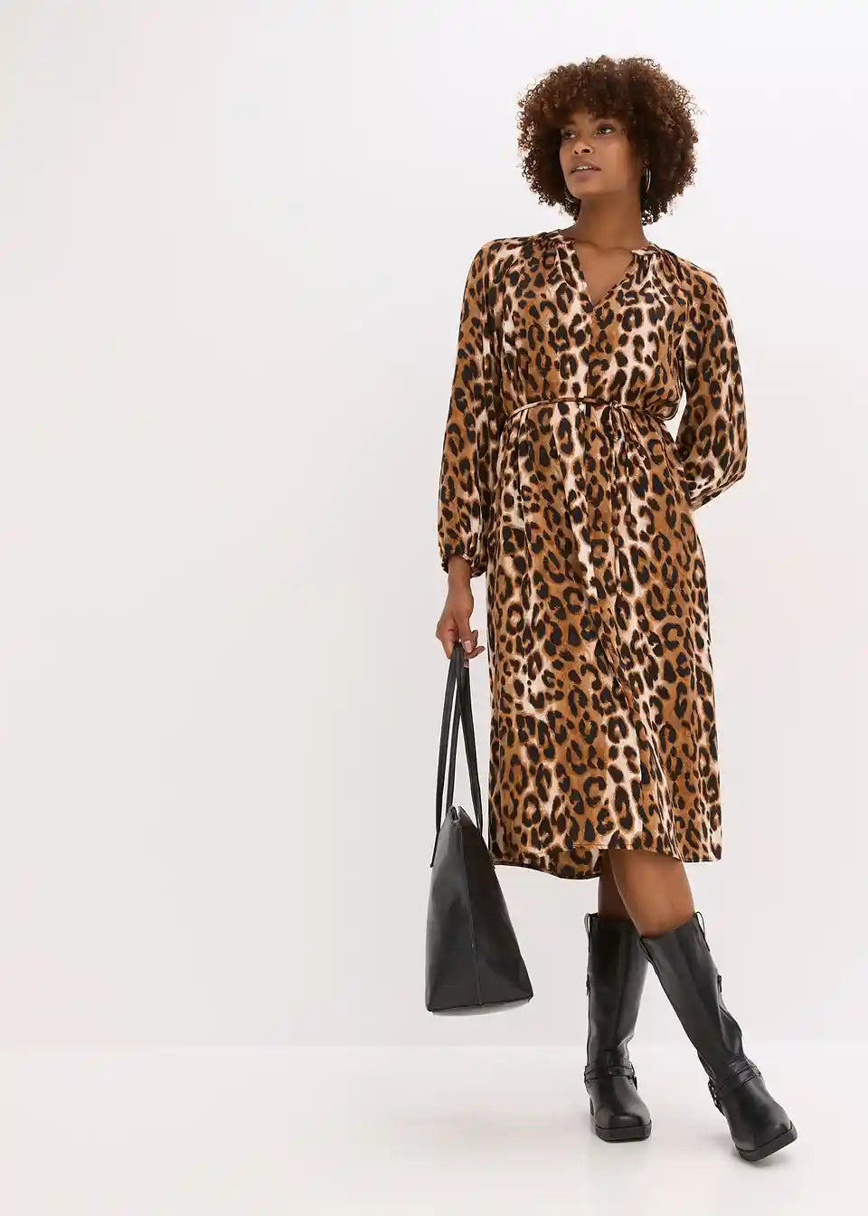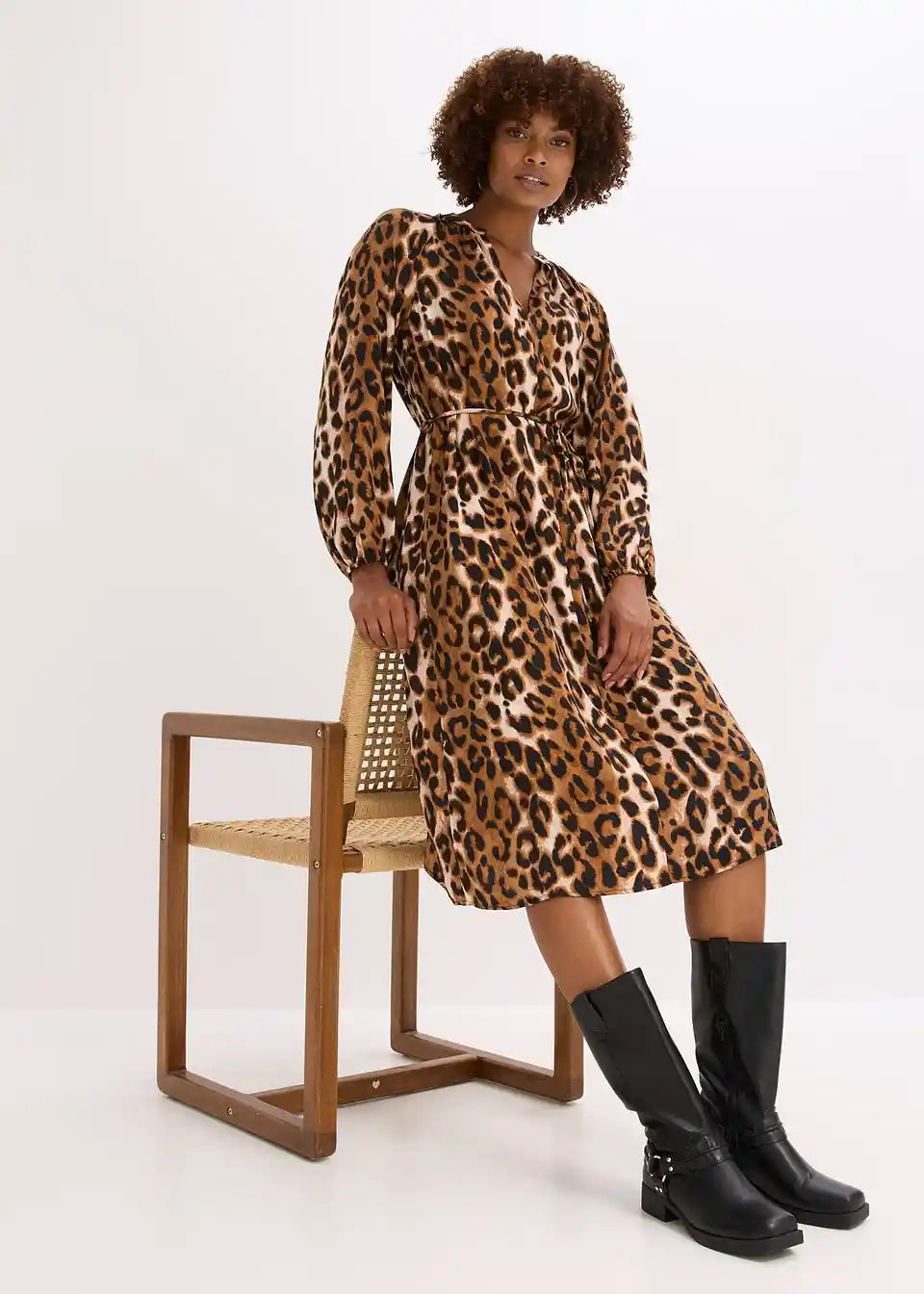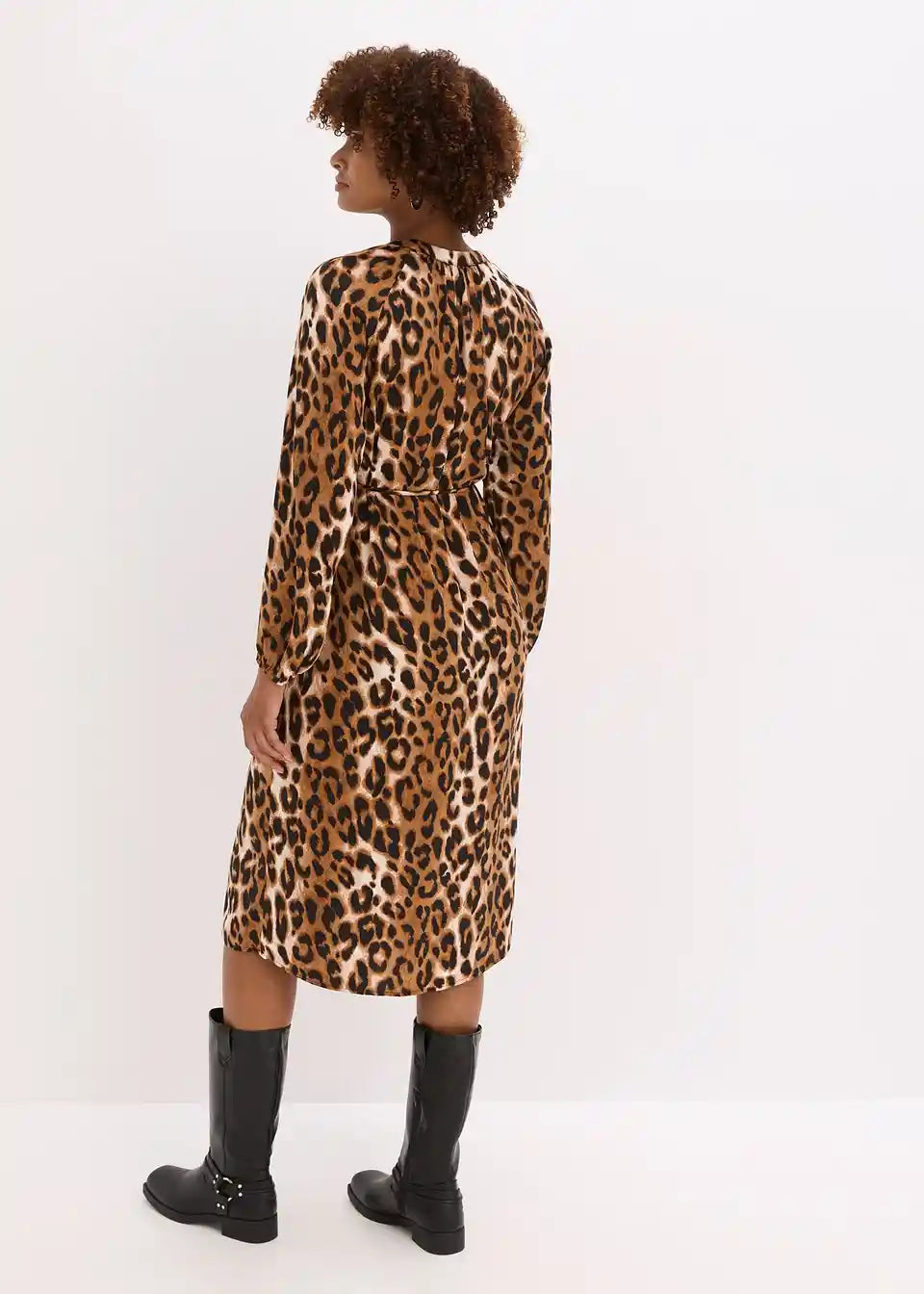 Modna midi obleka iz padajočega satena s trakom za zavezovanje v pasu