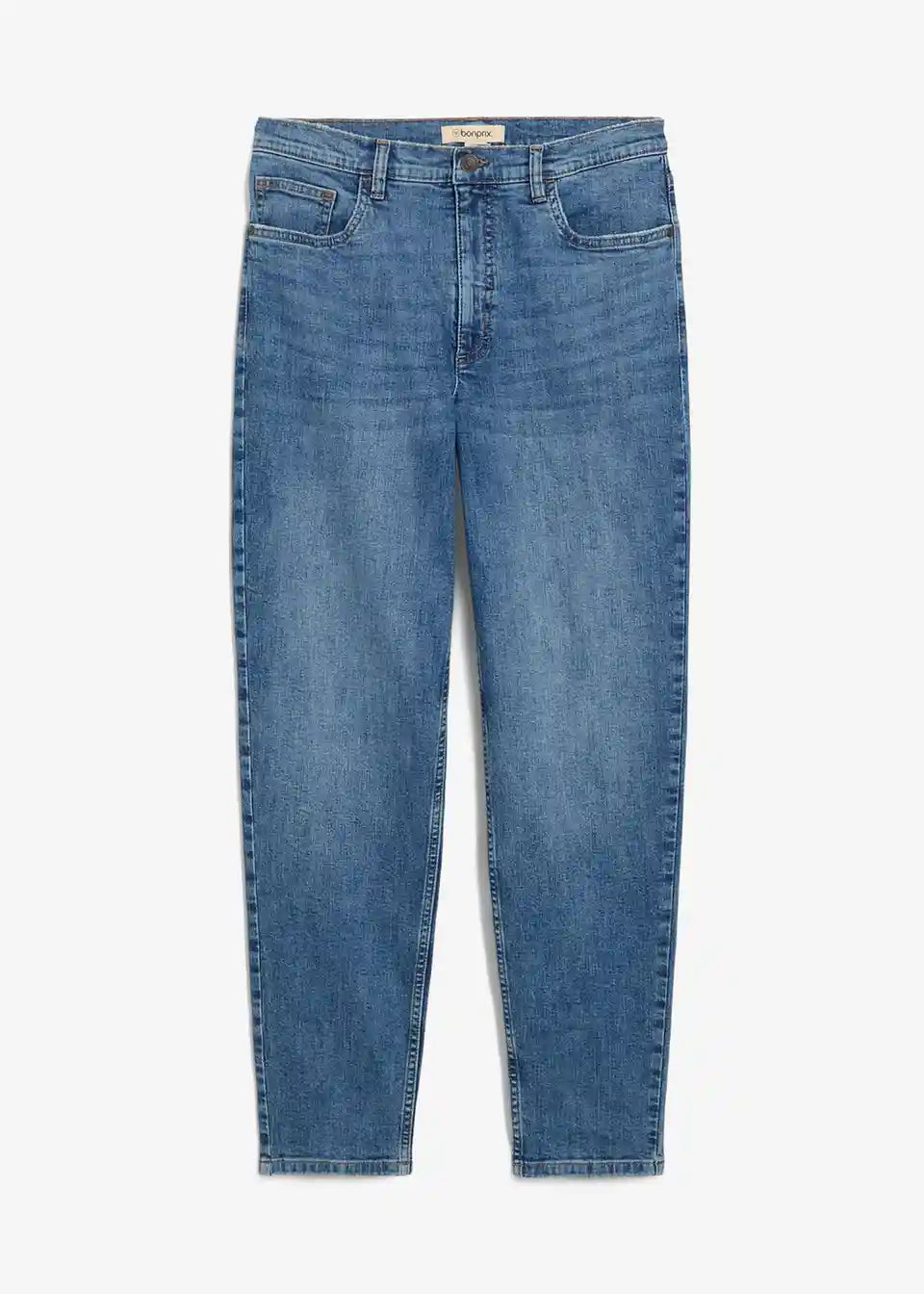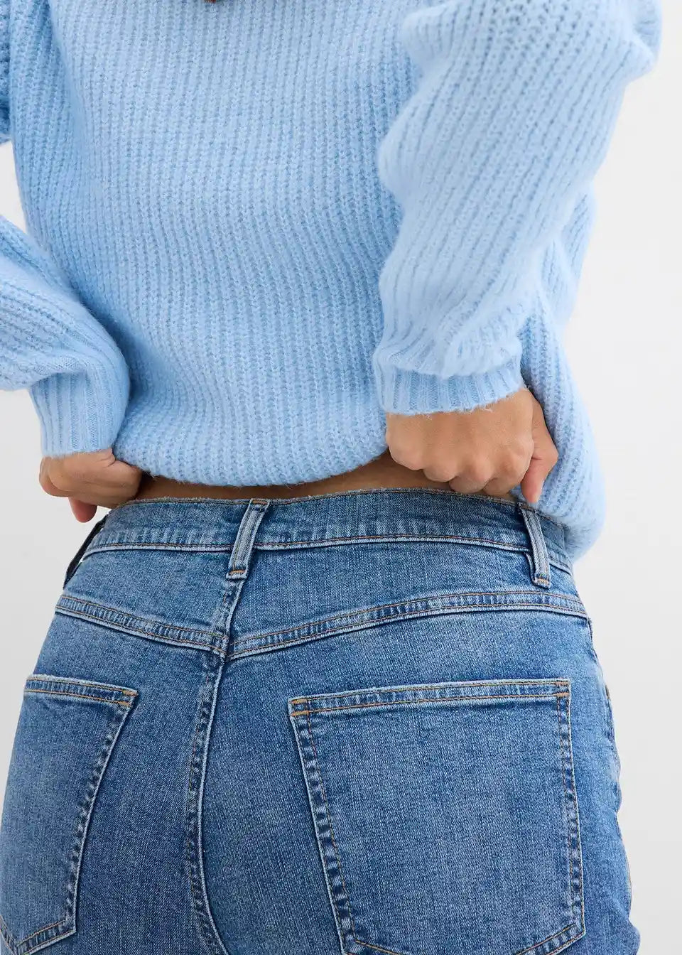 Mom kavbojke z zelo visokim udobnim pasom v krajšem kroju
