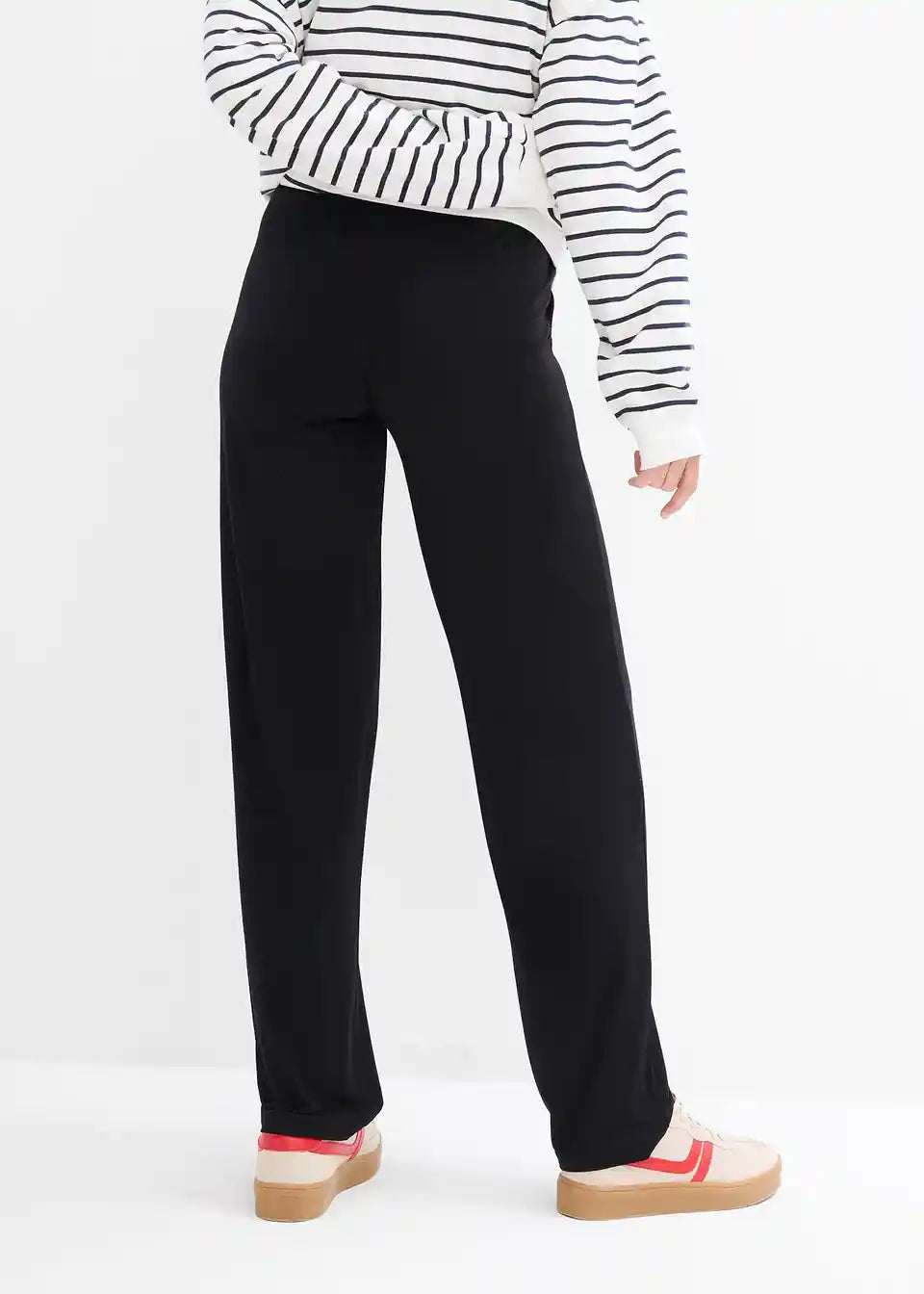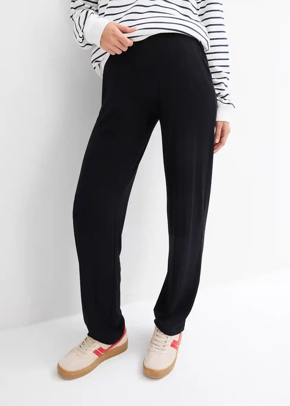Nosečniške hlače iz jerseyja z gosto nabranim pasom in ravnimi hlačnicami