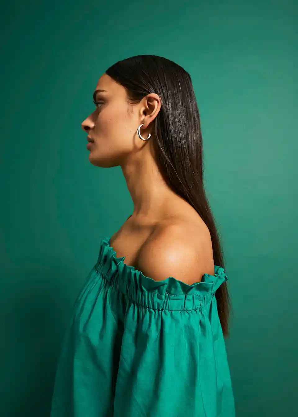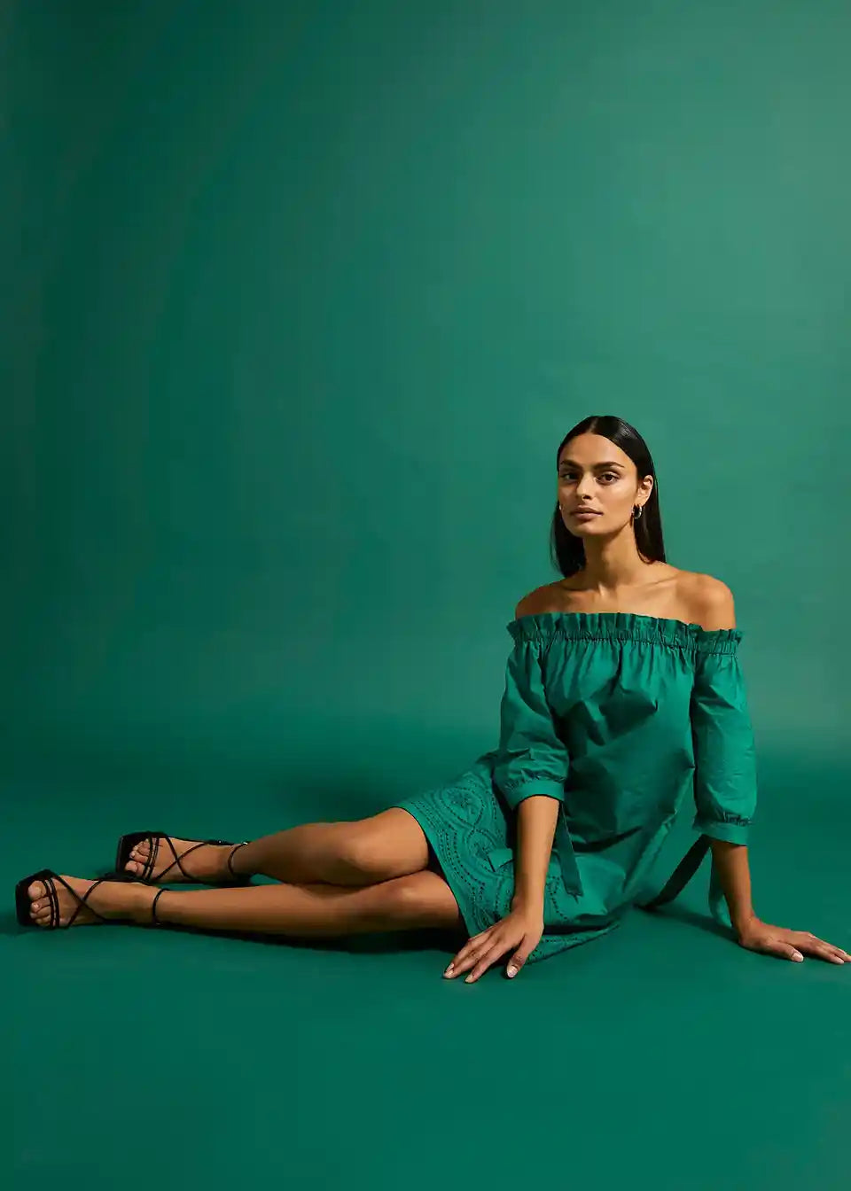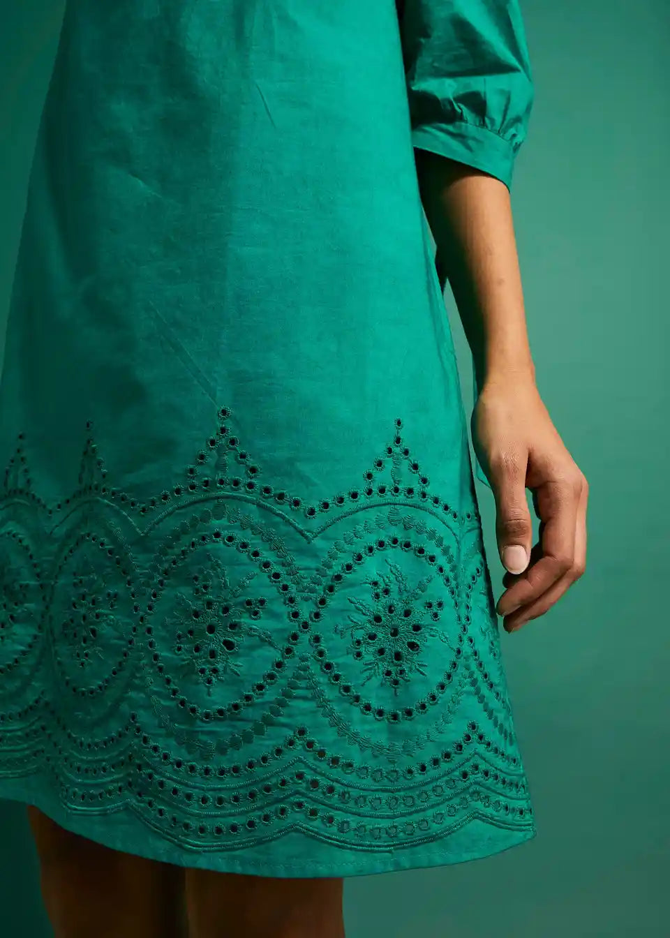 Obleka z odkritimi ramami in vezenino