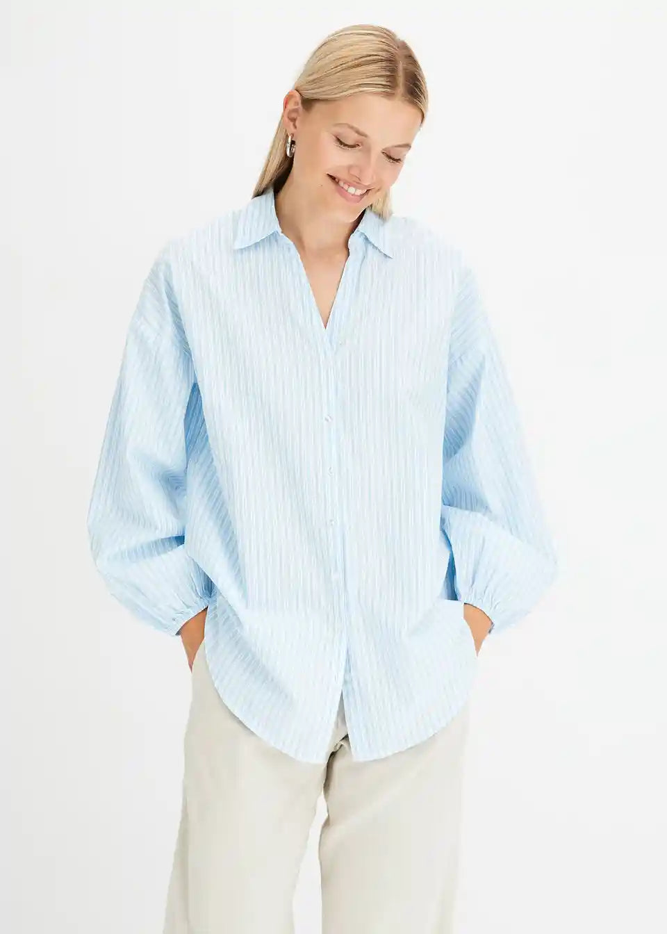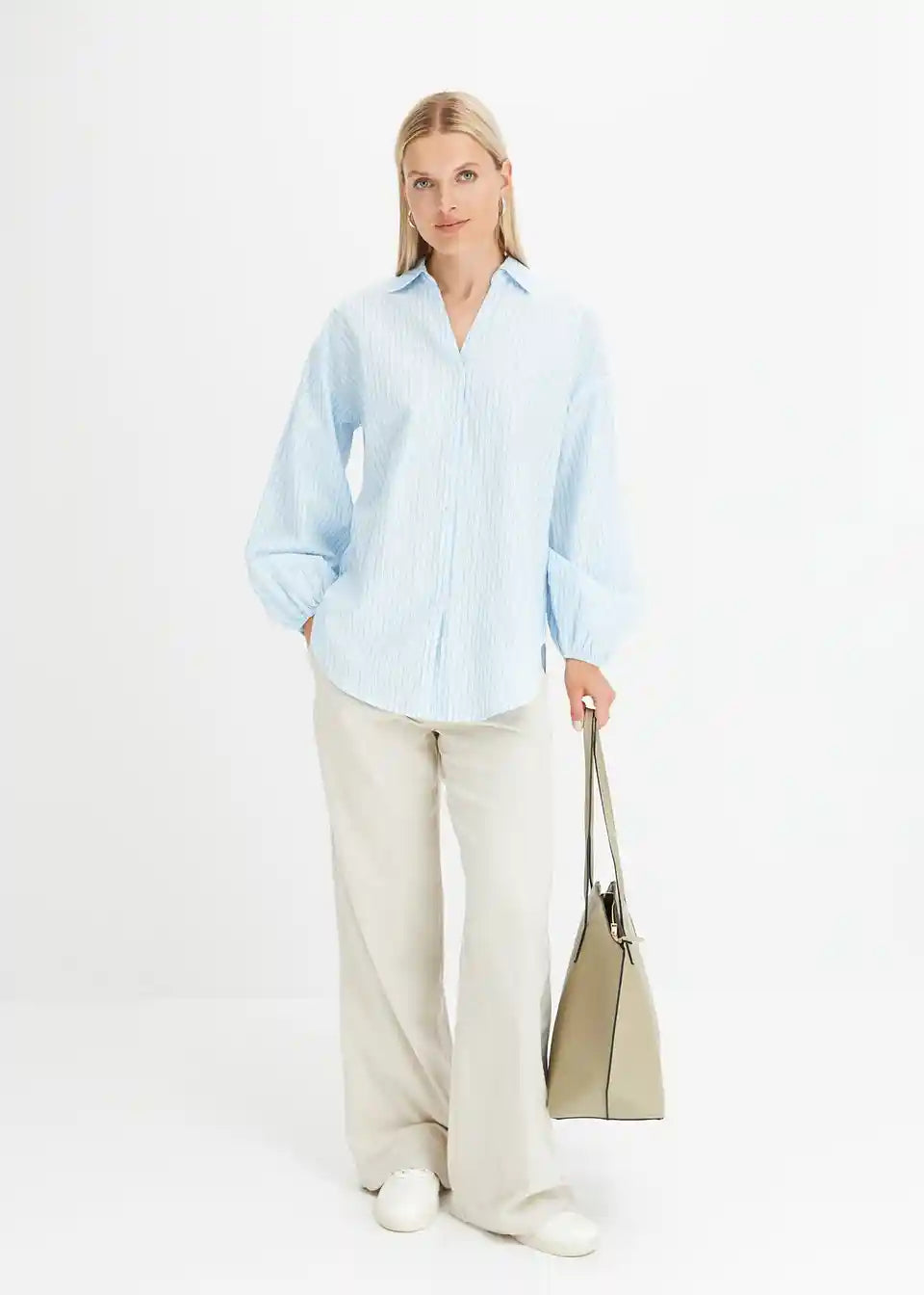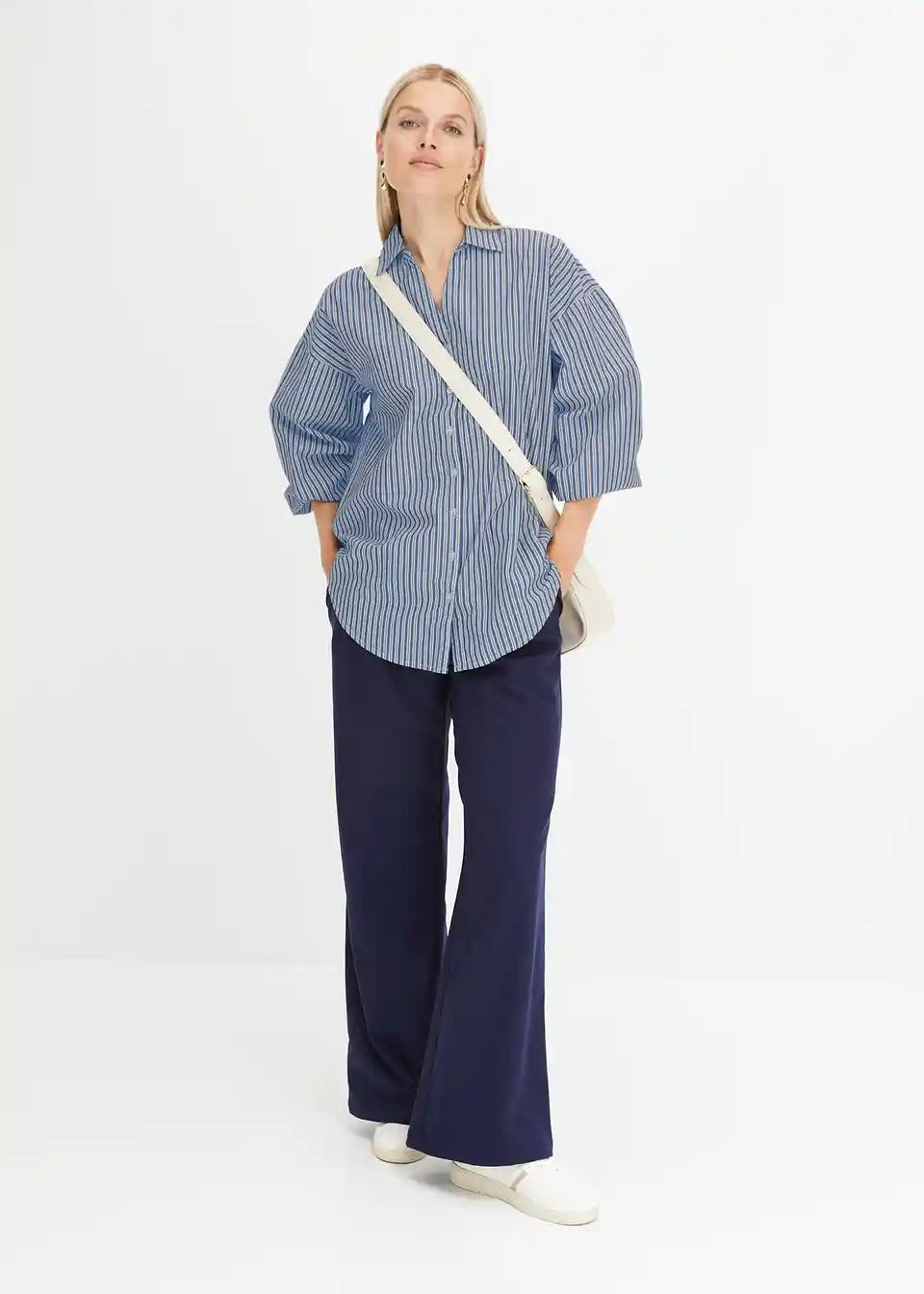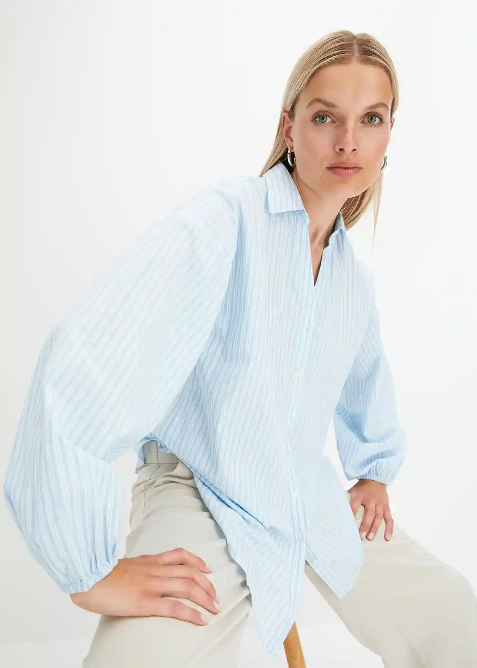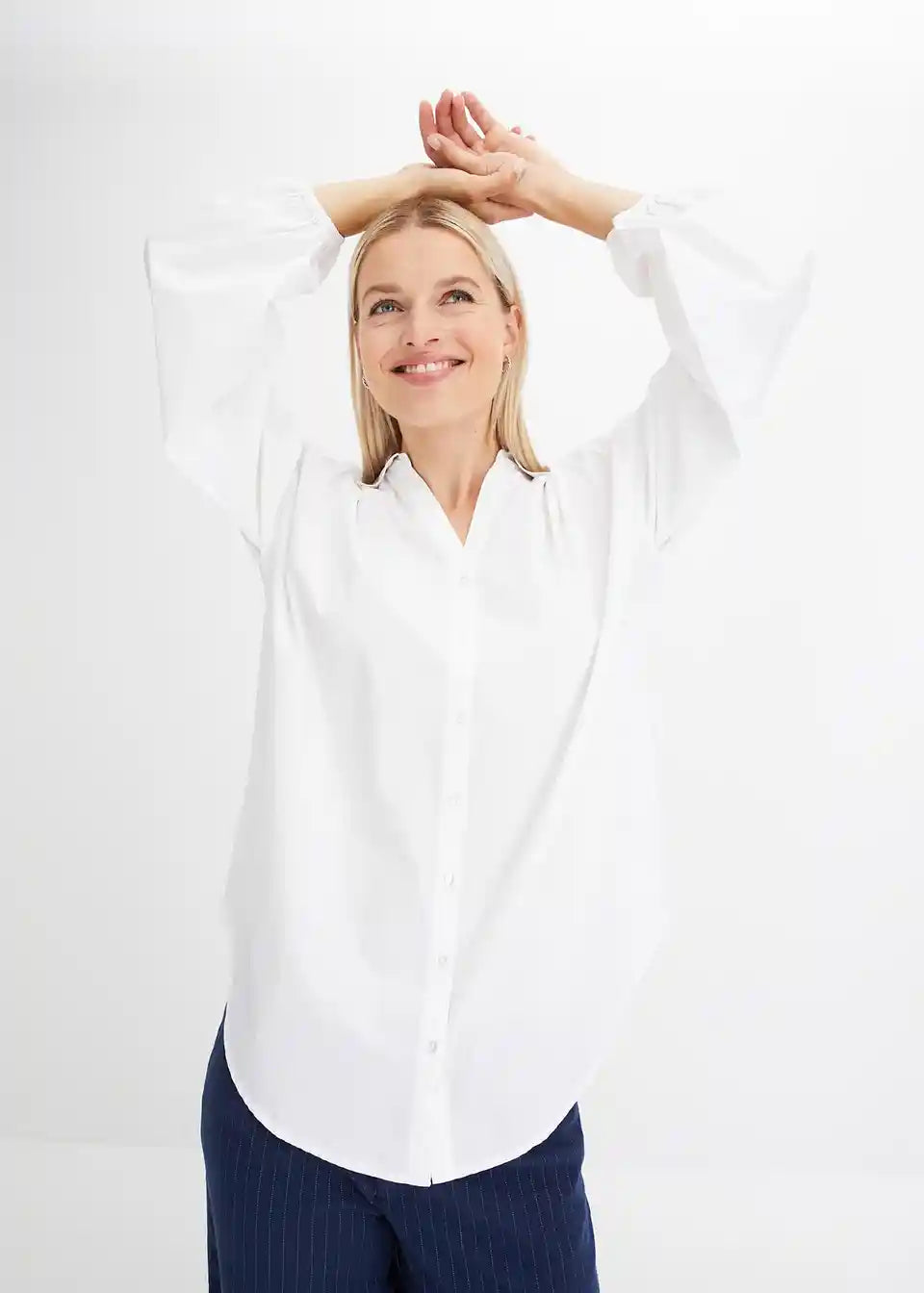 Široko krojena dolga bluza z podaljšanim V-izrezom