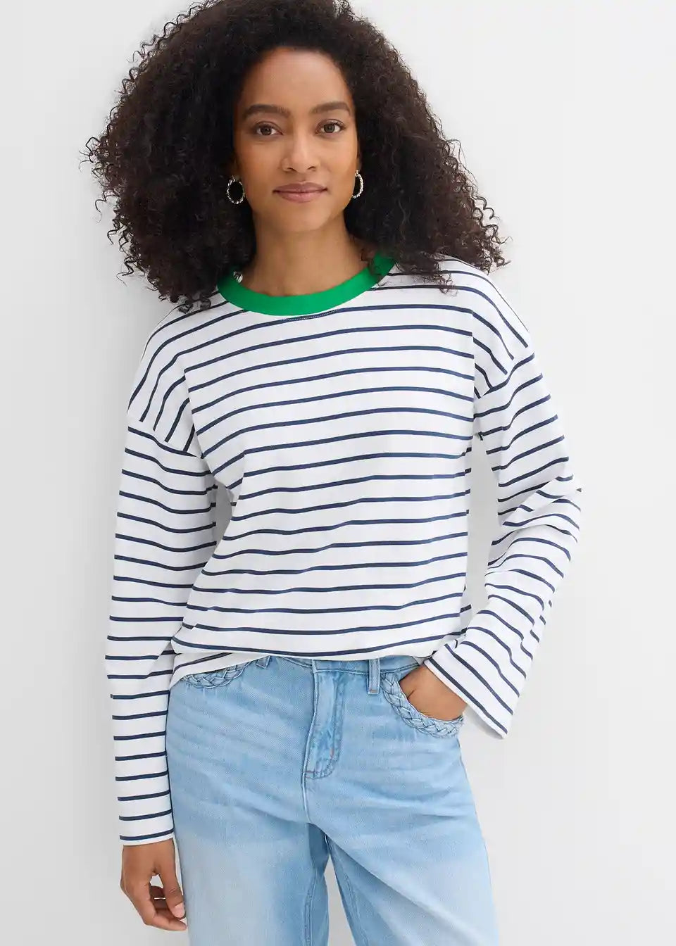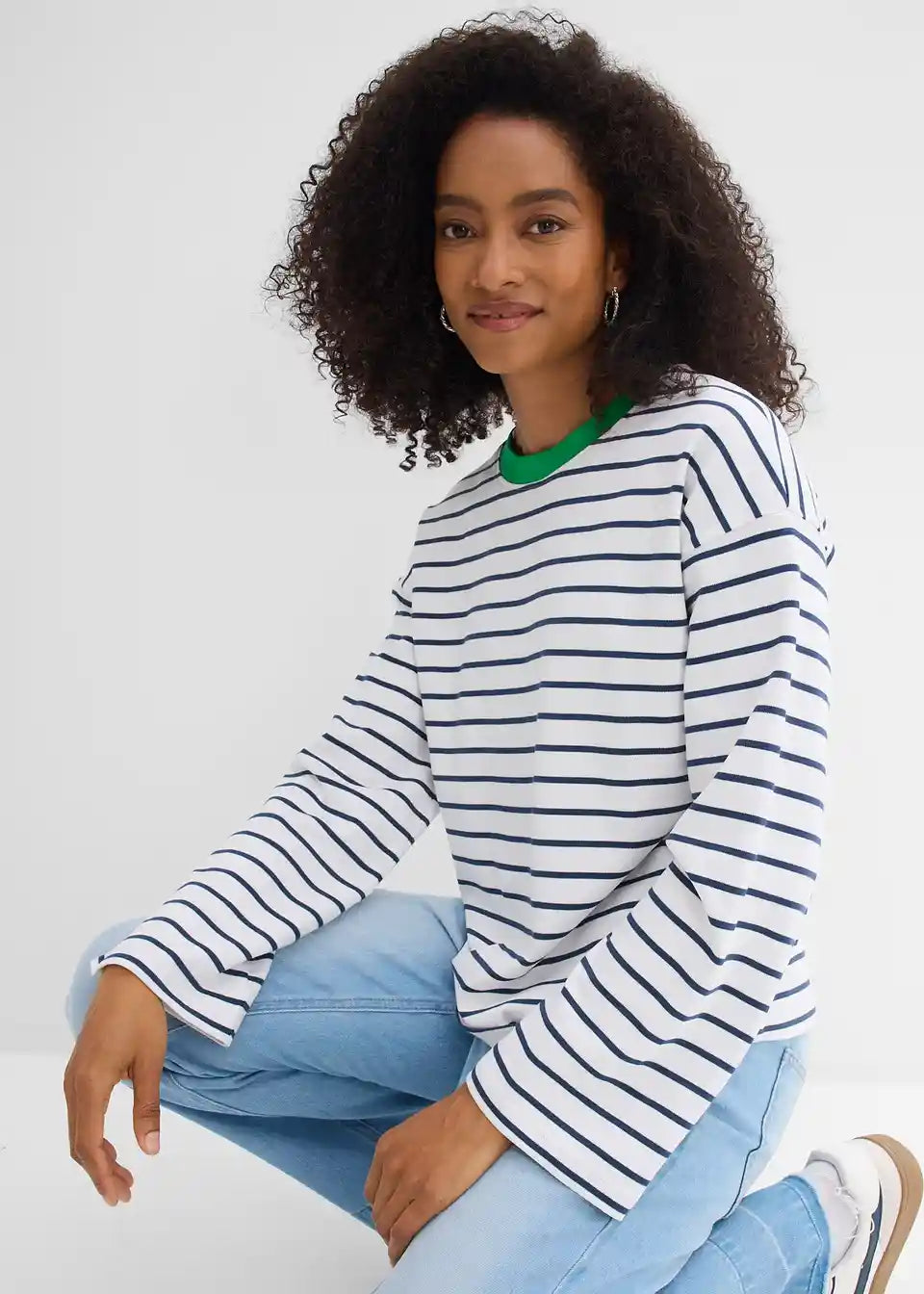 Ohlapna majica z dolgimi rokavi iz čistega ekološkega bombaža