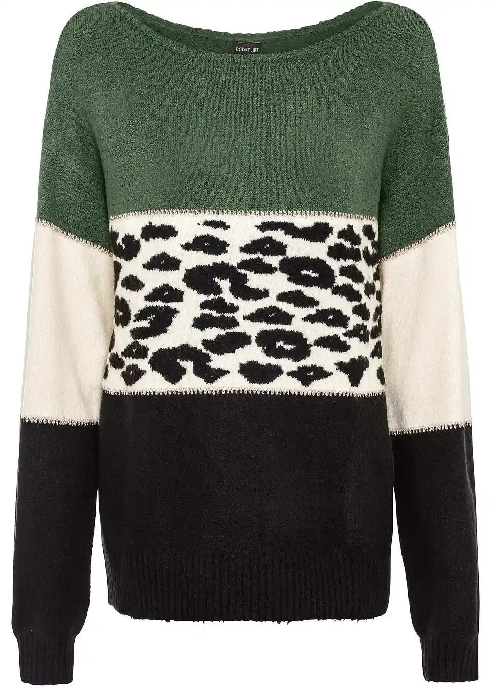 Moderen pulover znamke BODYFLIRT. Pulover v črtastem videzu z bleščicami je ohlapno krojen in ima širok izrez. Dolžina pri št. 36/38 pribl. 64 cm.
