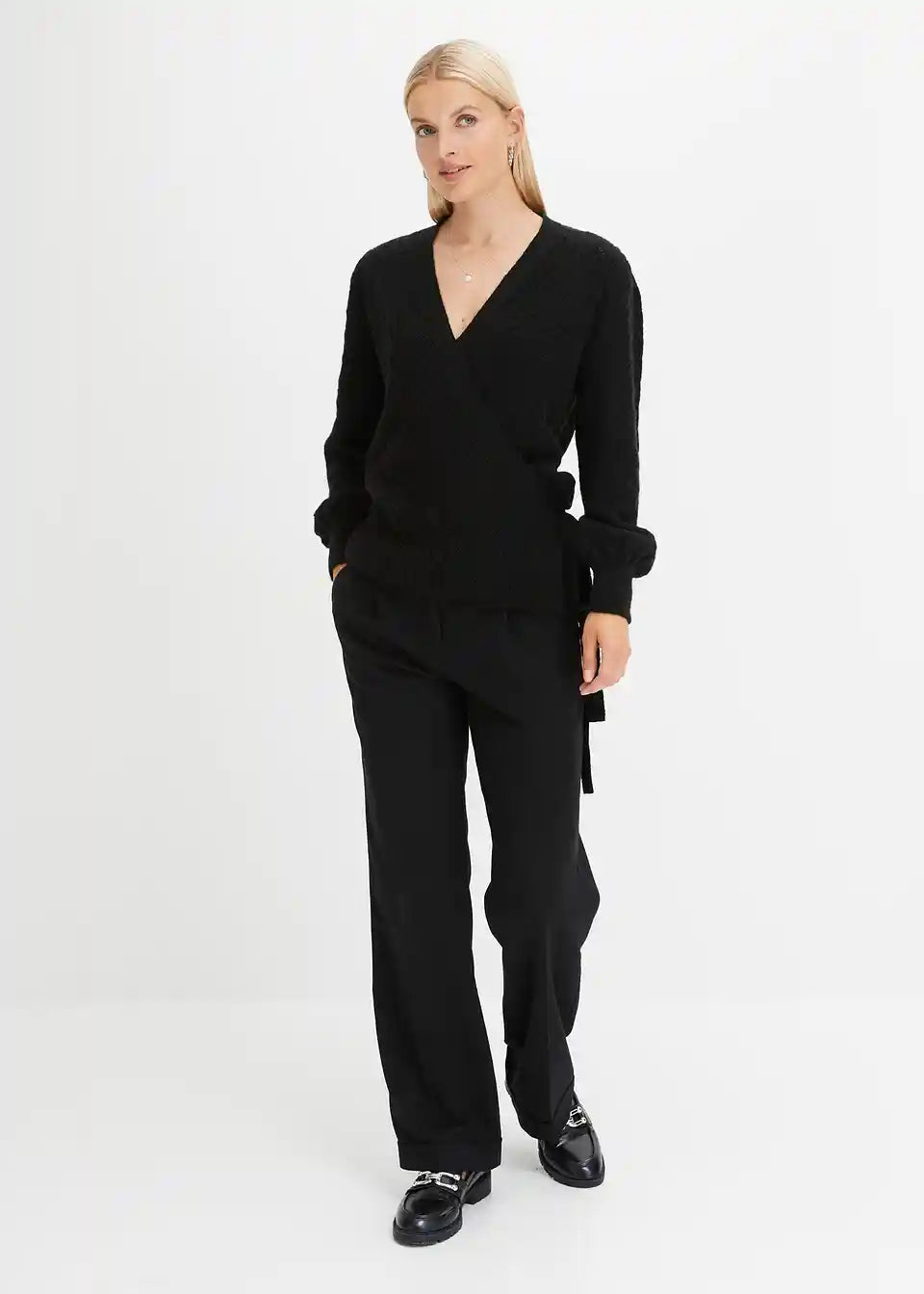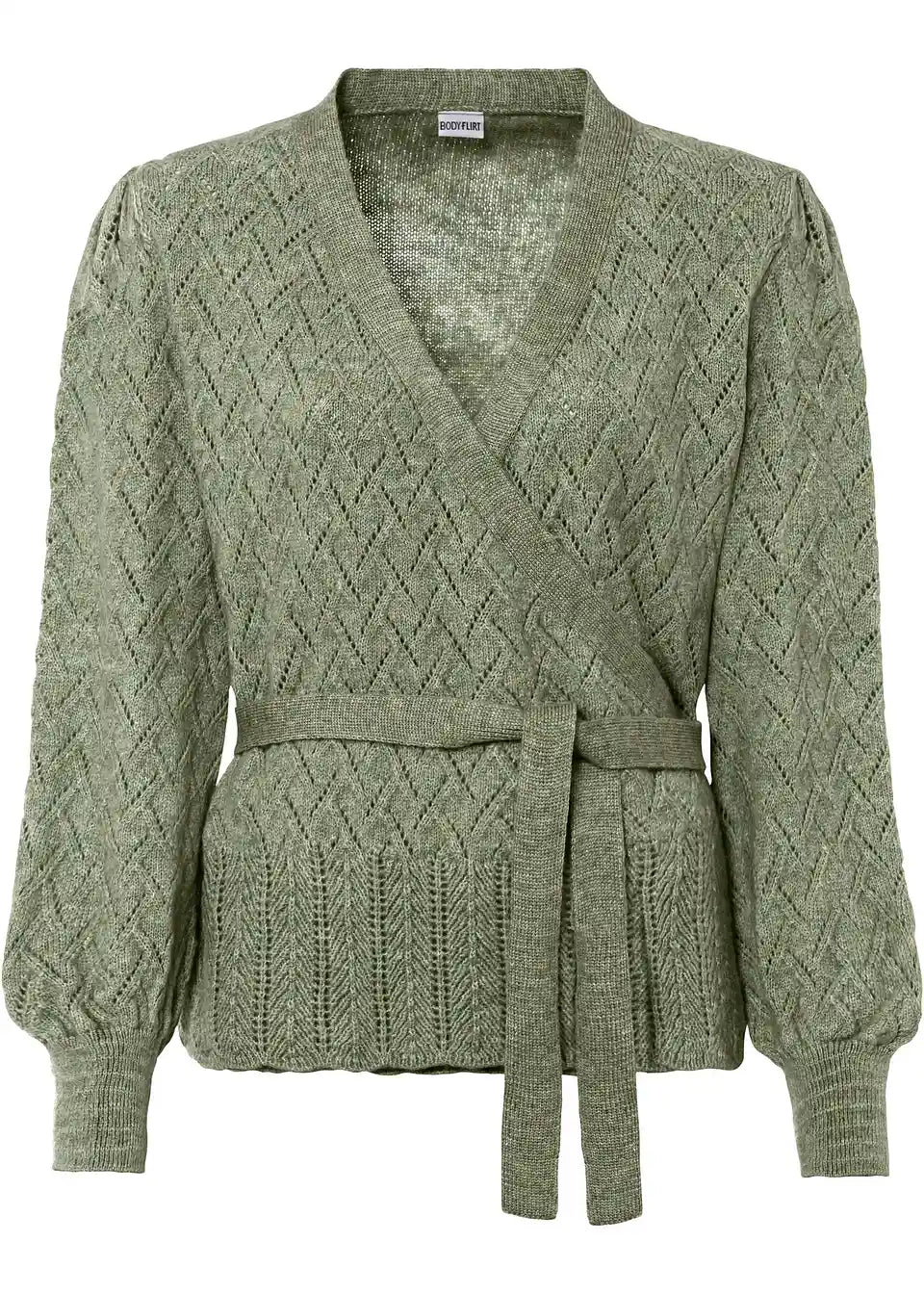 Čudovit ovitek pulover z vezalko in napihnjenimi rokavi.