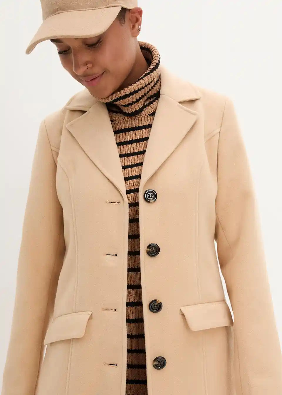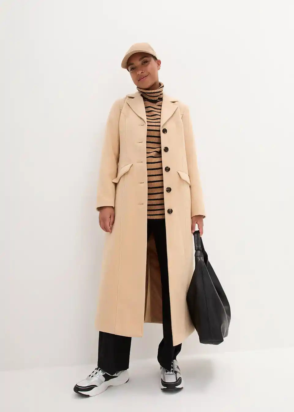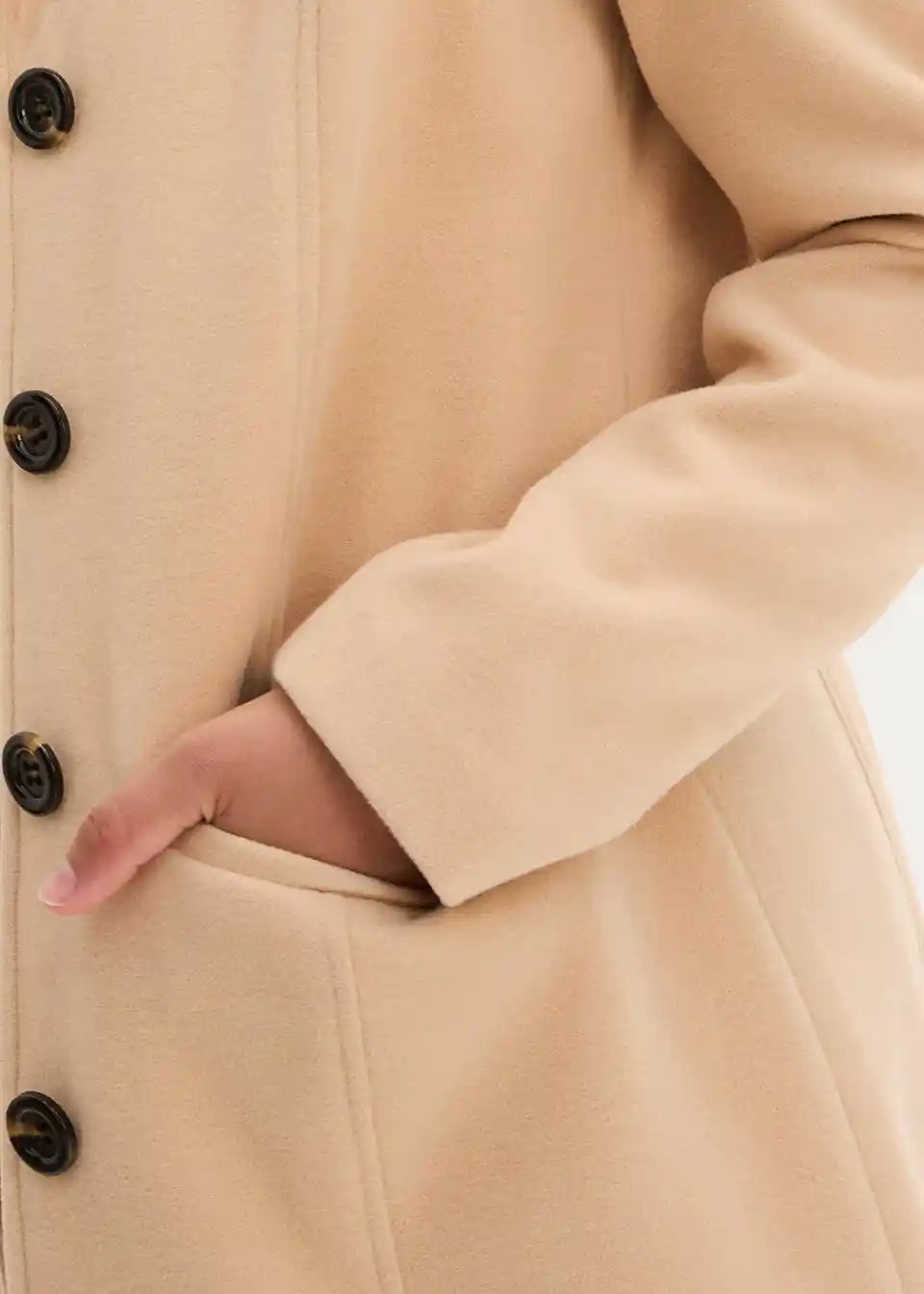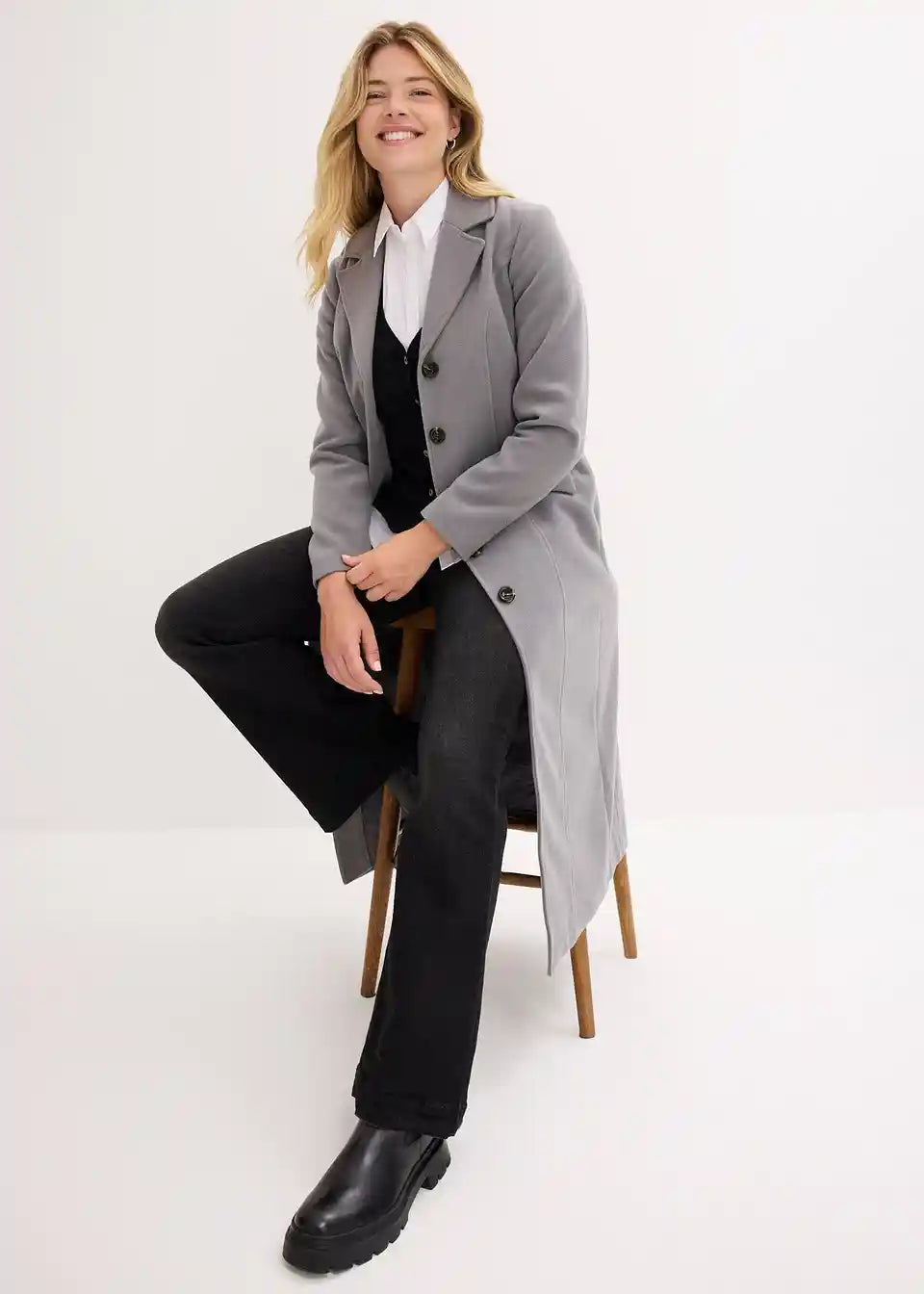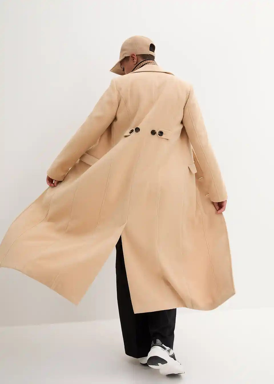 Sodoben plašč z reverji v videzu volne pristoji vsaki postavi