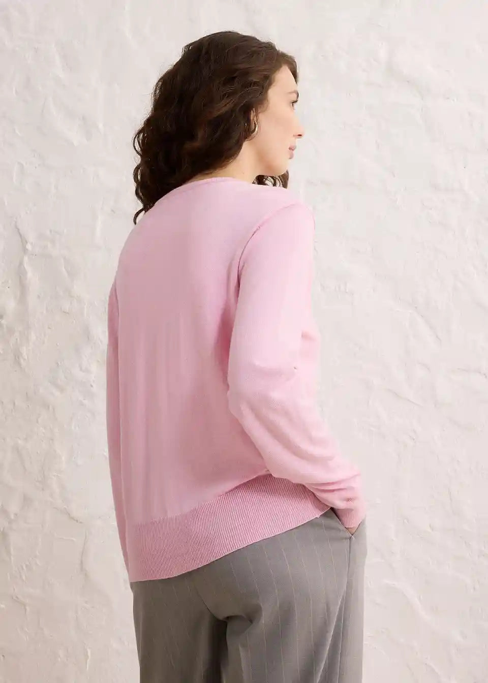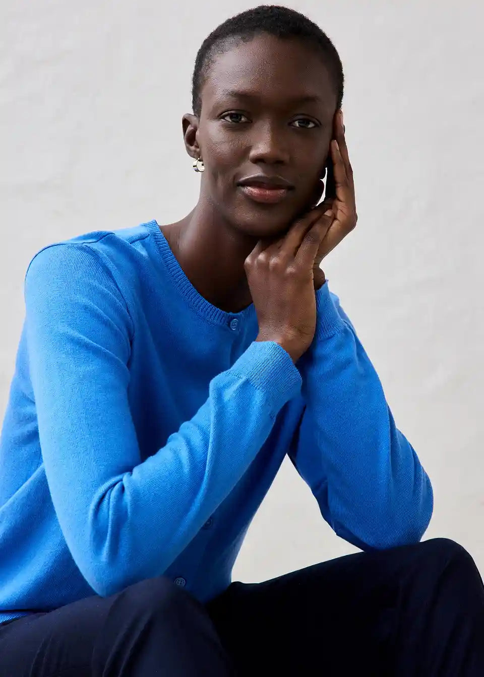Fino strukturirana kakovost tkanine je sestavljena iz gladke, razkošne svile in tople volne, da ti nudi izjemen občutek nošenja.